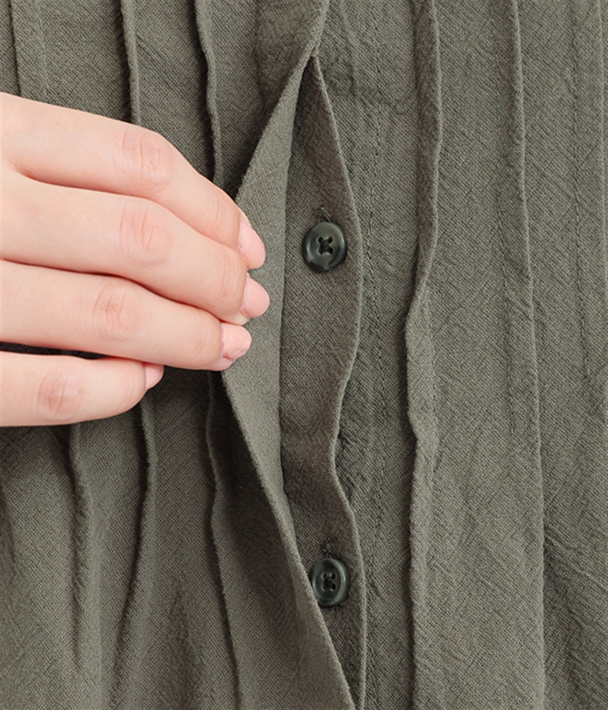 コーディネートに馴染みやすい比翼ボタン
