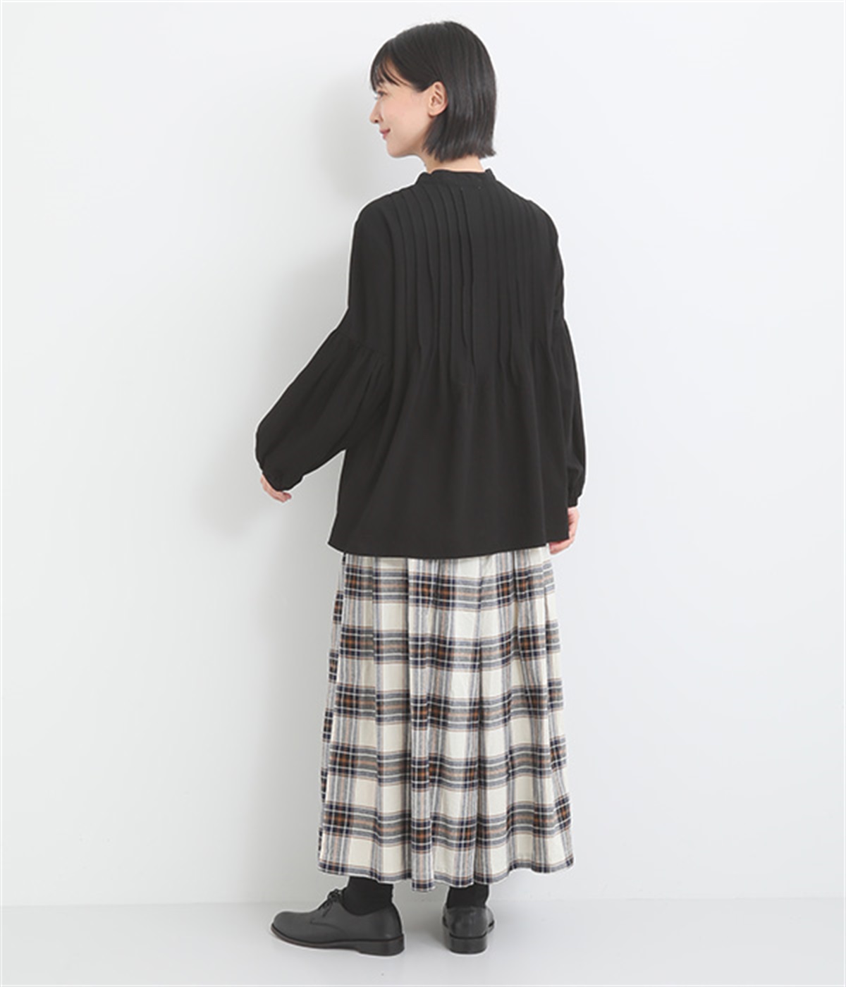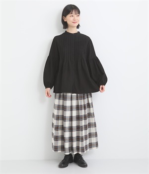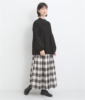 前後のタックは解放してフレアラインを作りつつ、裾はすっきり見せ