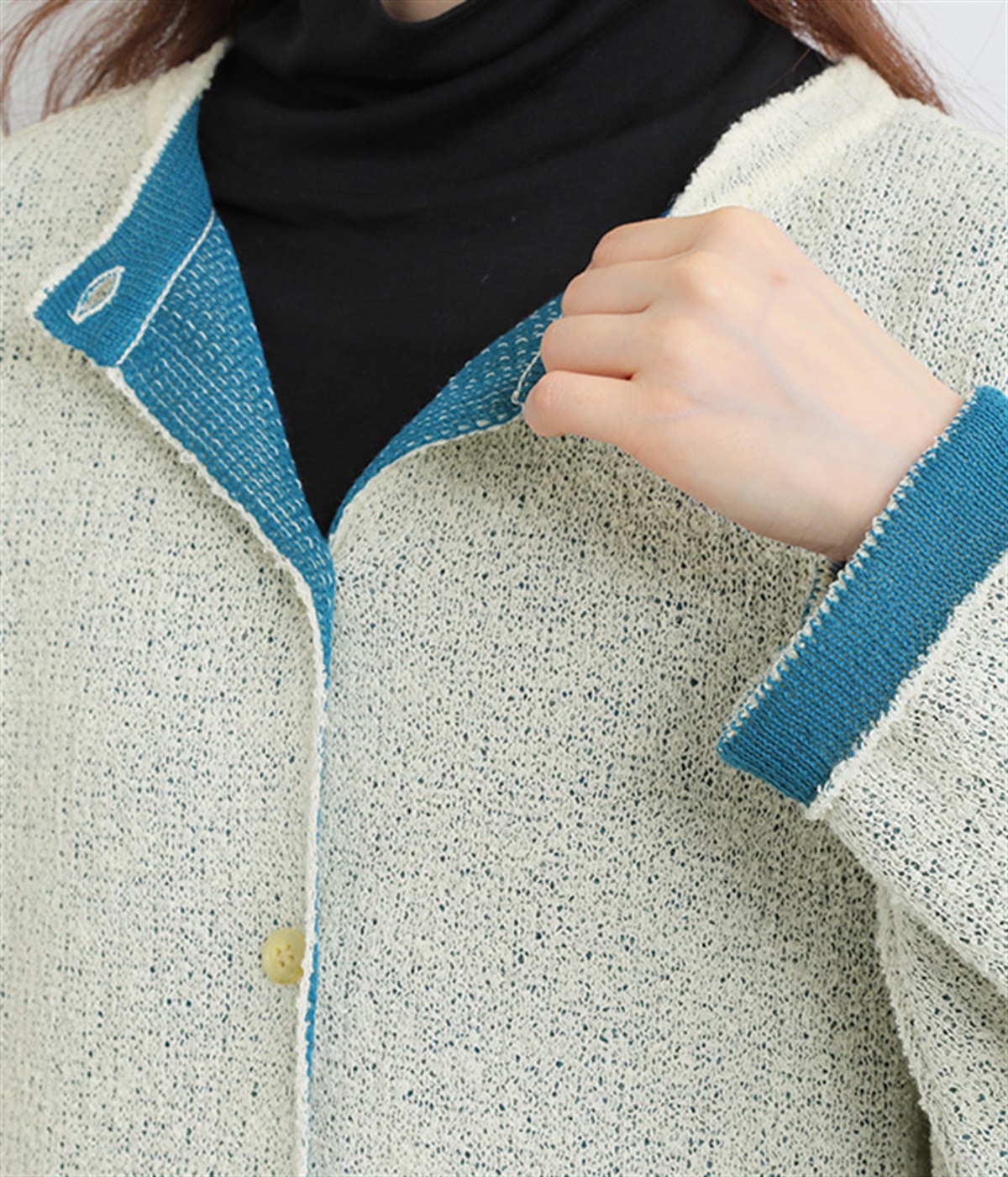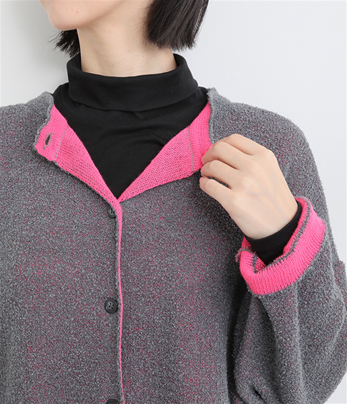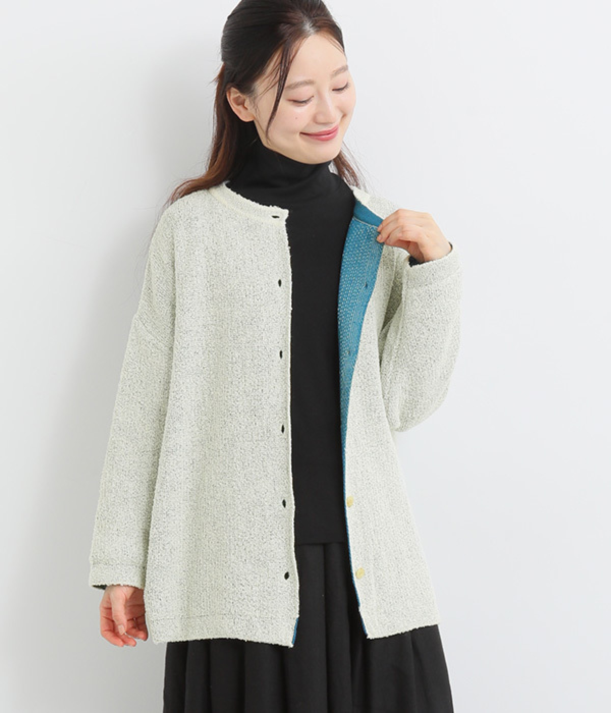 首元や手元の裏地を見せ、色のコントラストを楽しんでも