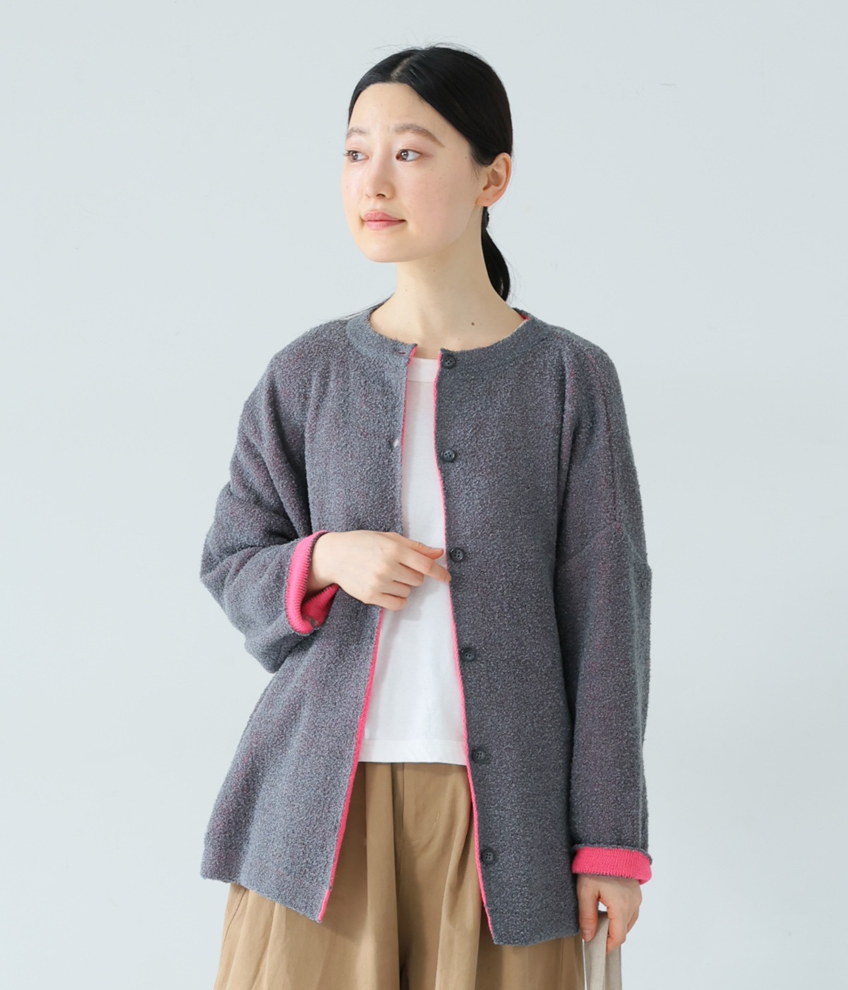 裏地の色とのミックス感が着こなしをニュアンスアップ