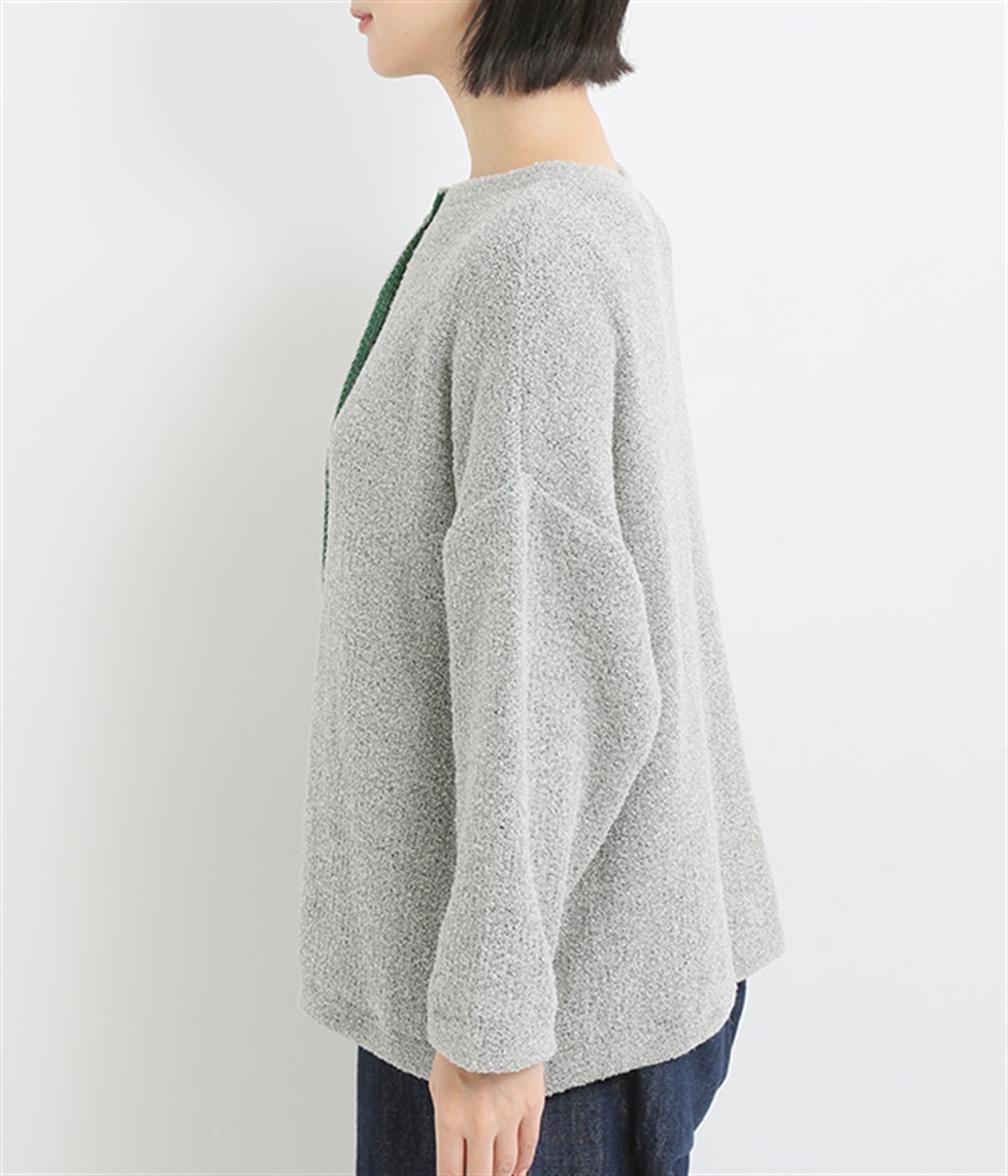 ストールなどと合わせやすいクルーネック