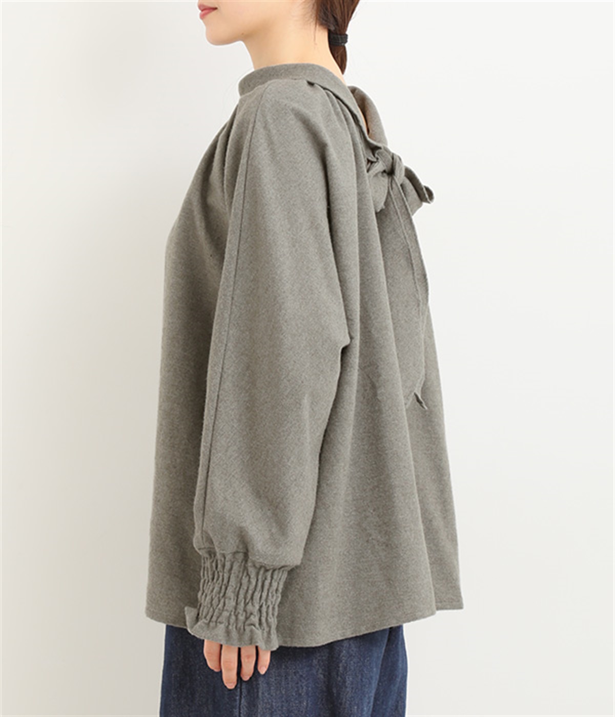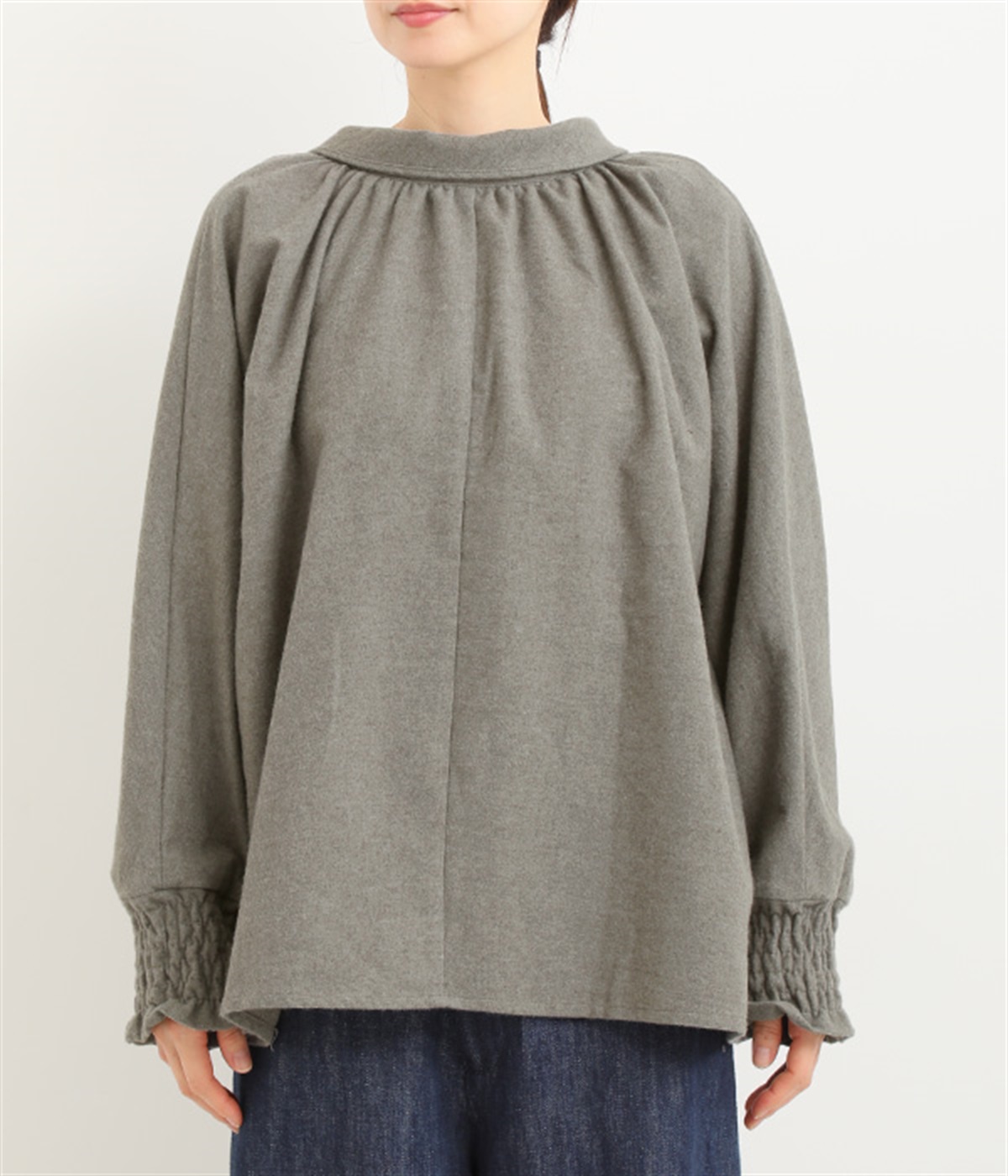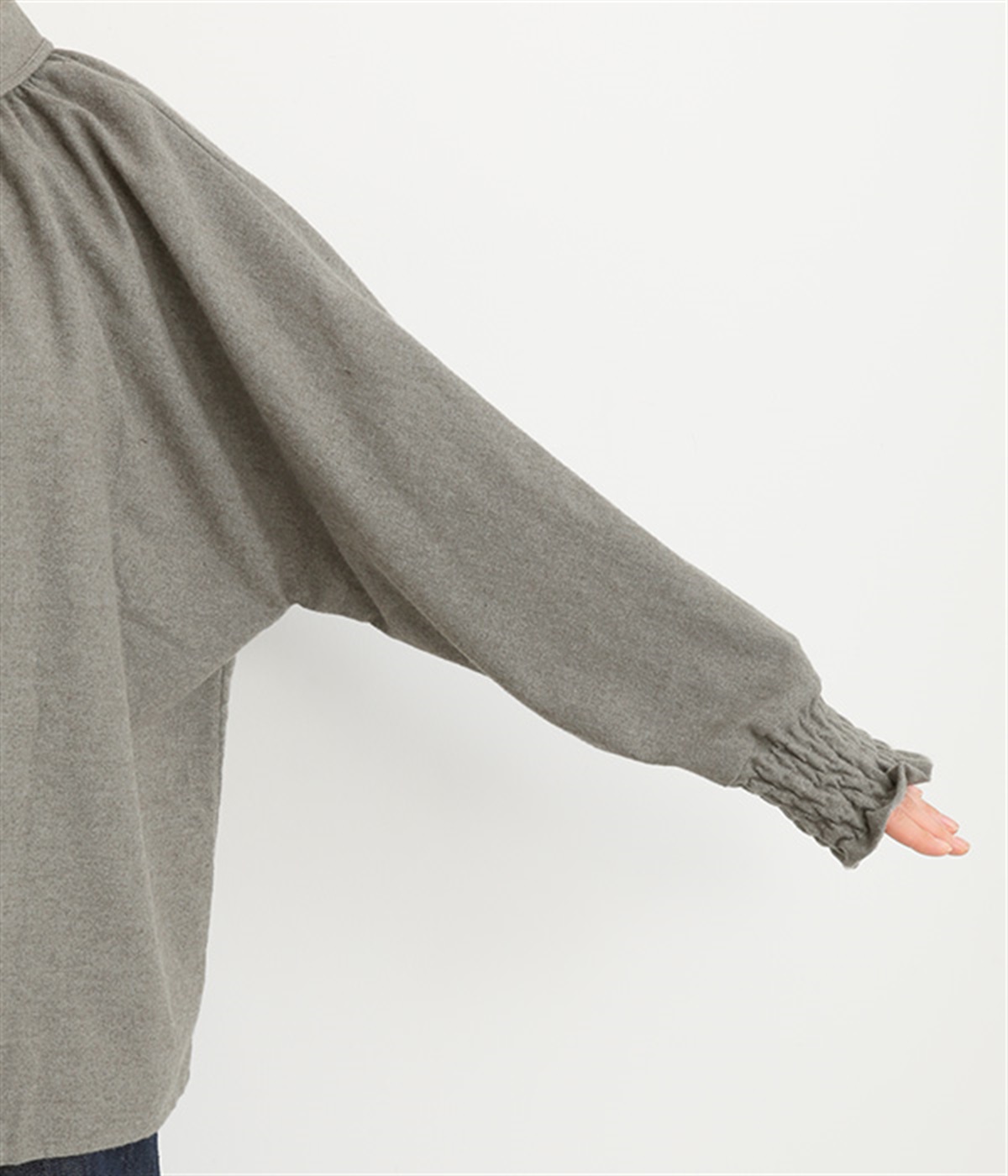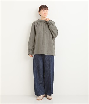 袖口は幅広のシャーリング加工でメリハリUP