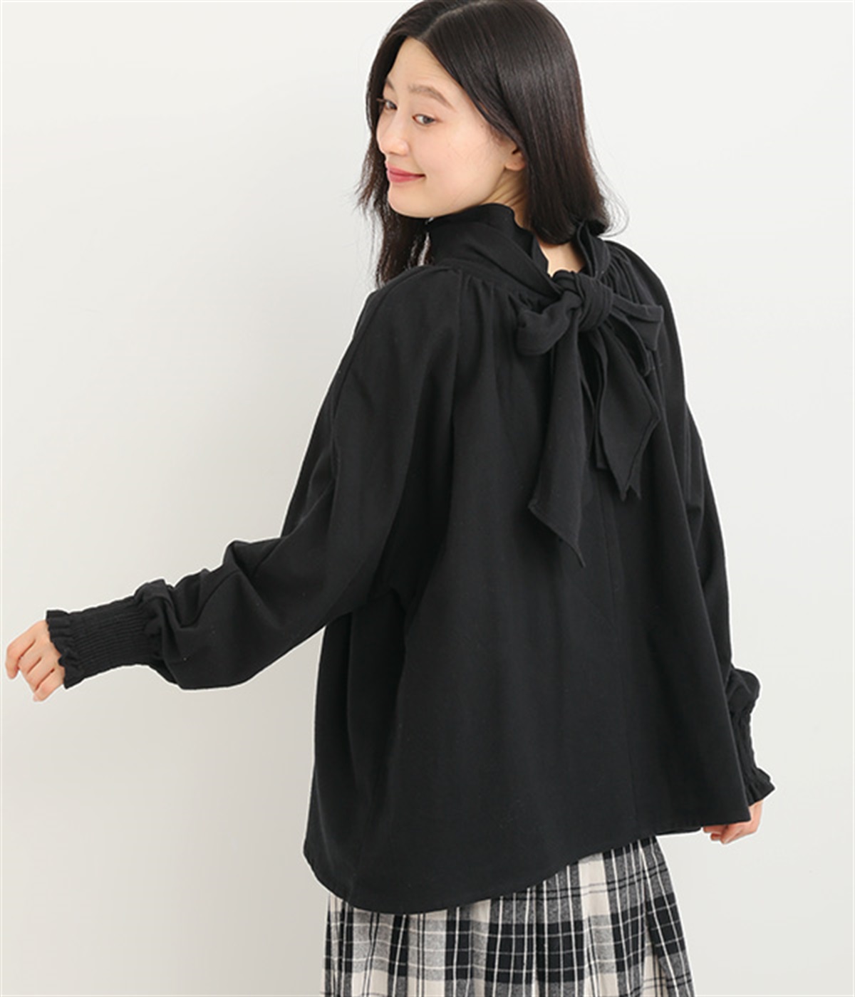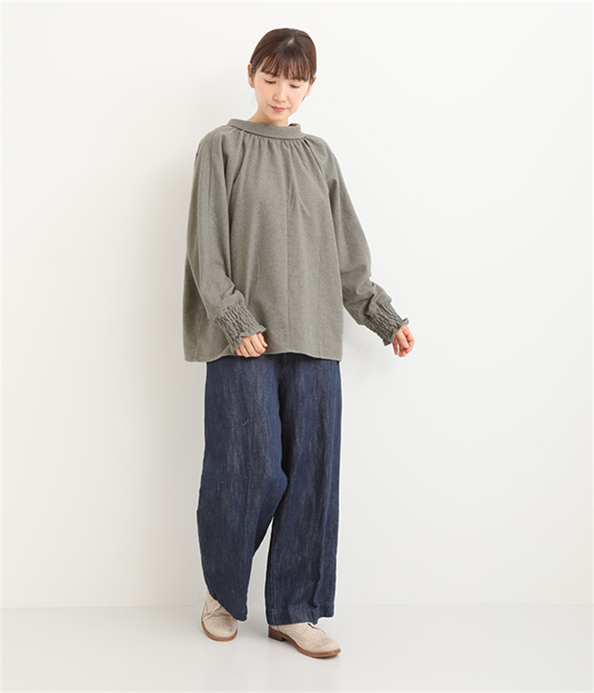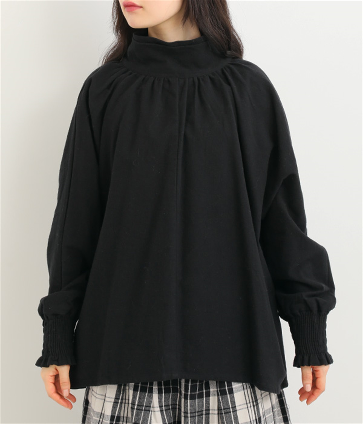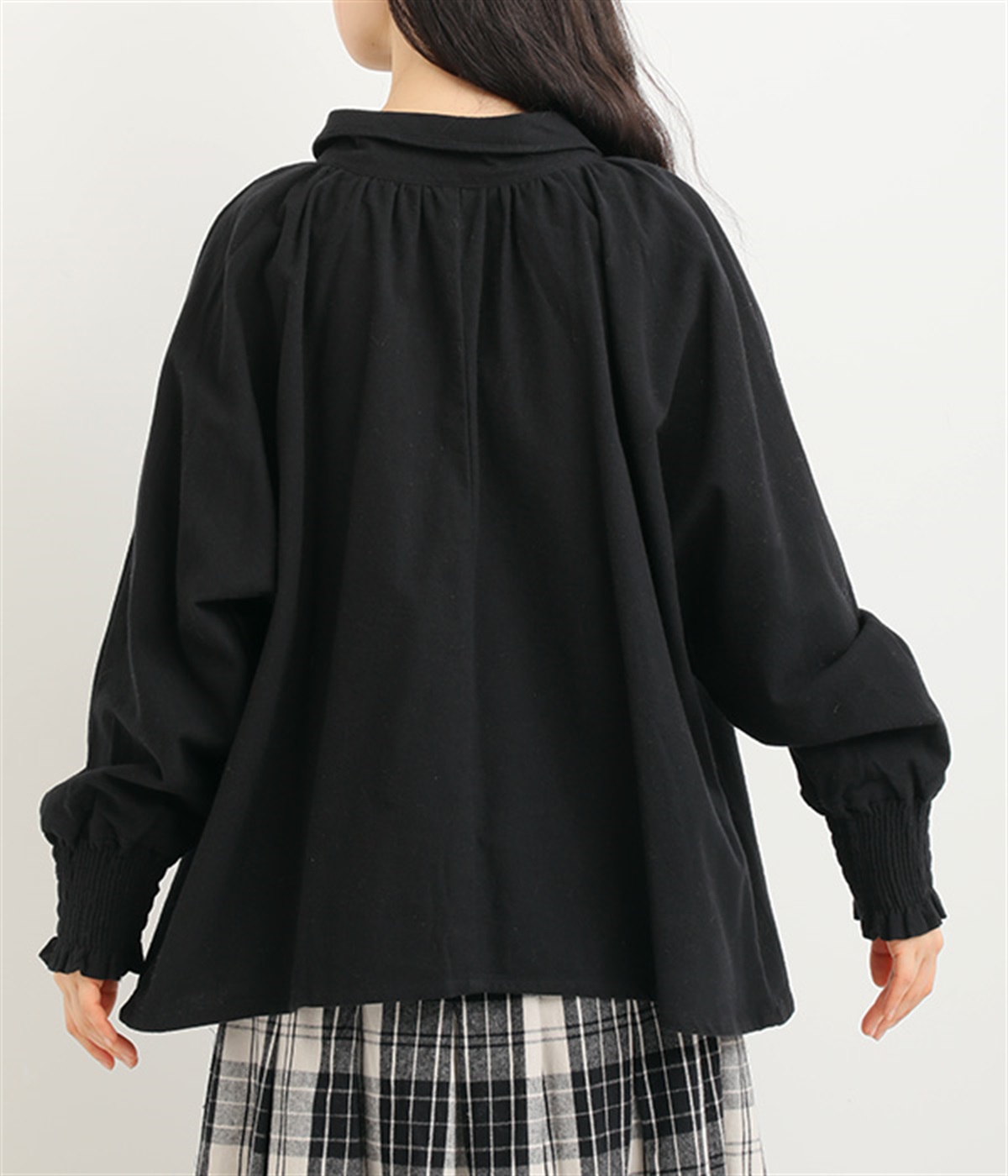袖口は幅広のシャーリング加工でメリハリUP