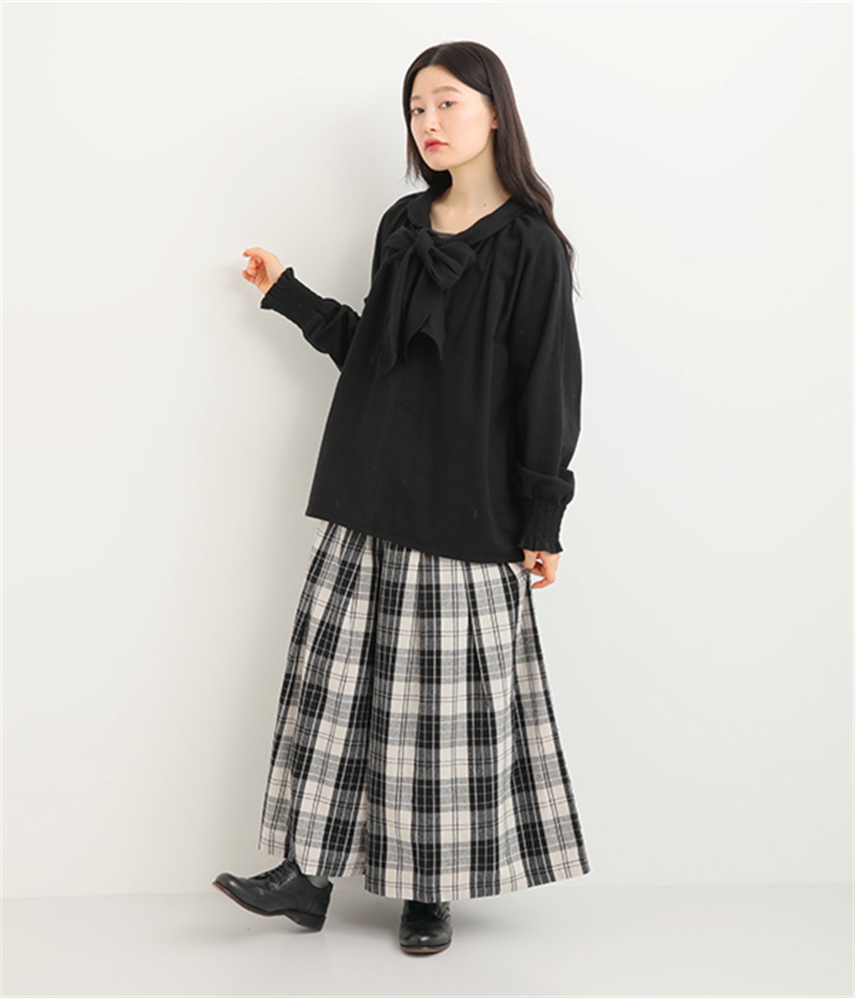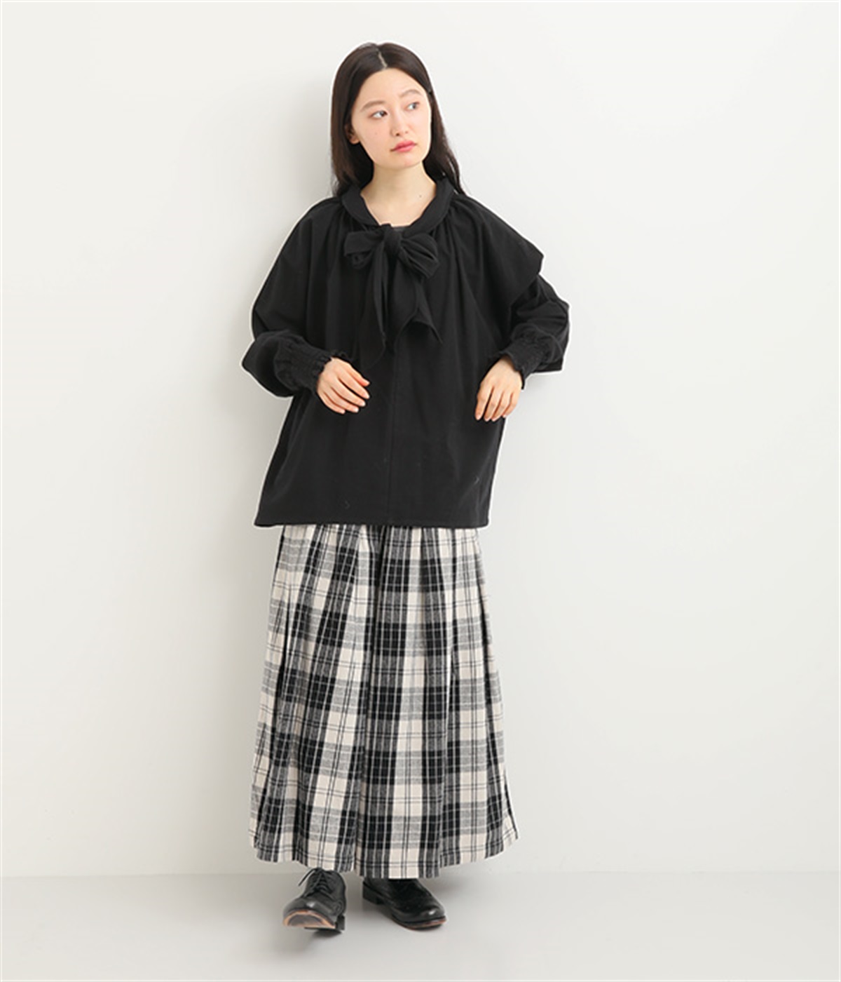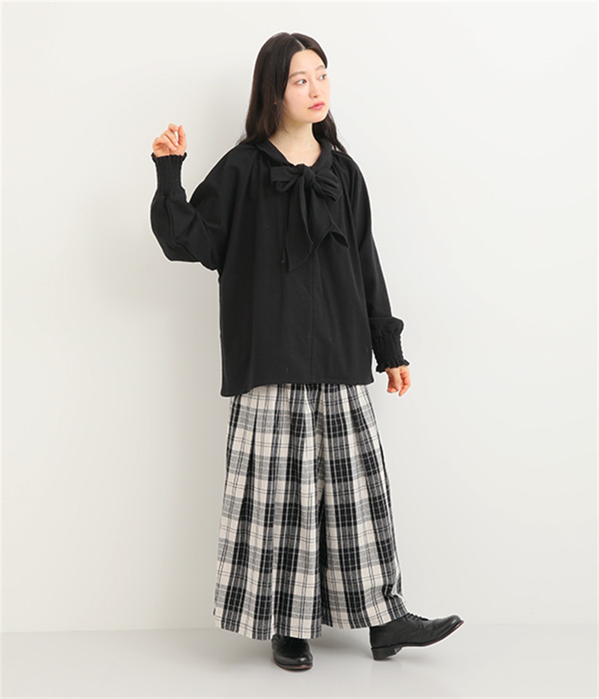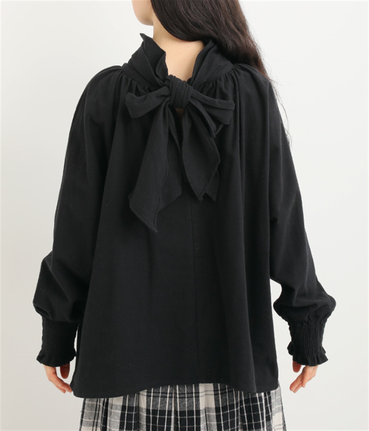 ボウタイの大きなリボンが大人の甘さをプラス