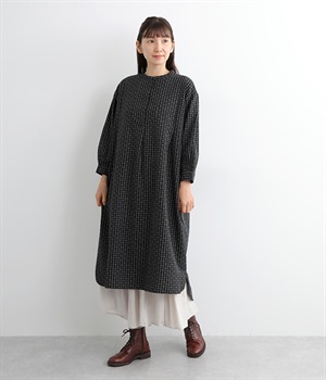 刺し子風の総柄刺しゅうが着こなしの主役に