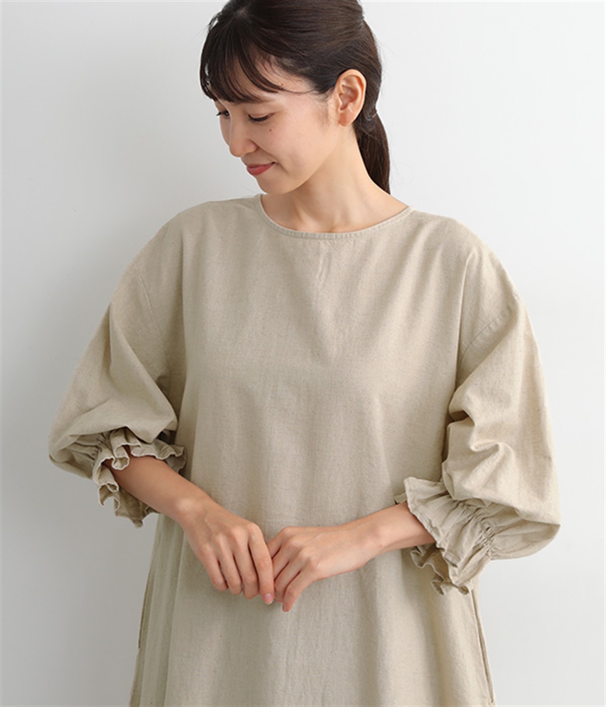 かわいさを引き立てる袖口ゴム入りのフリル袖