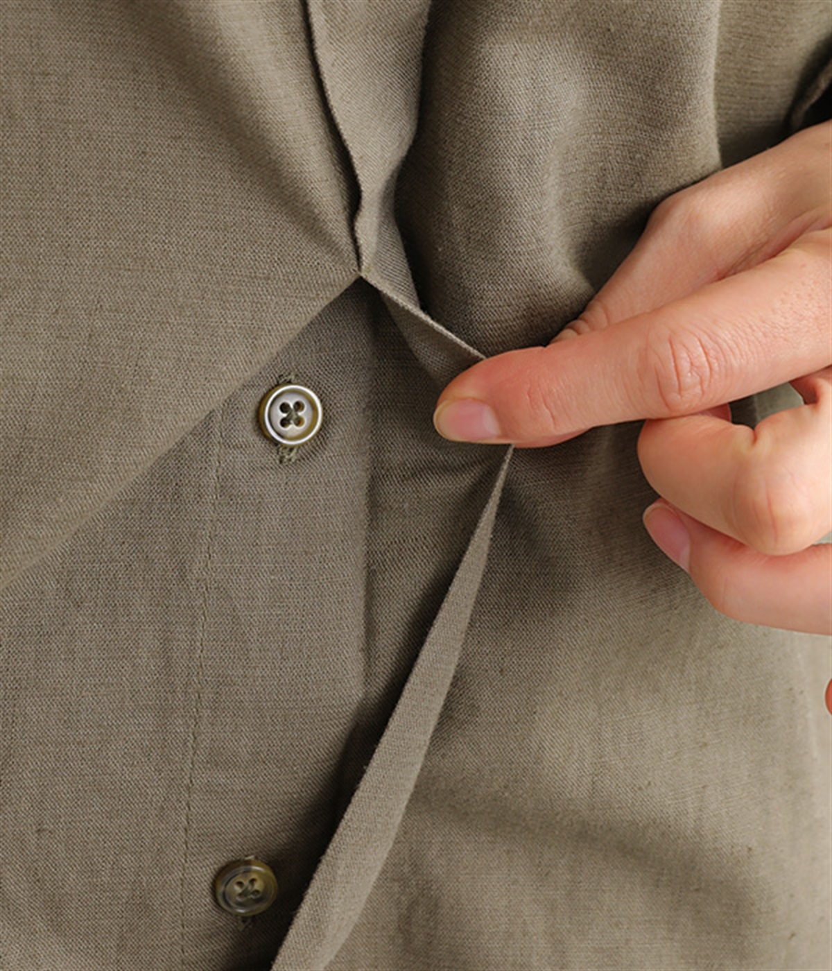 ボタン側はすっきりと上品に着こなせる比翼仕立て