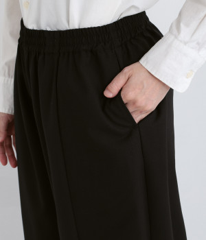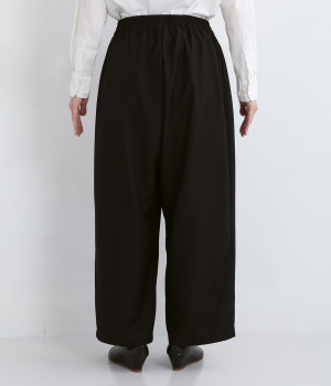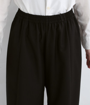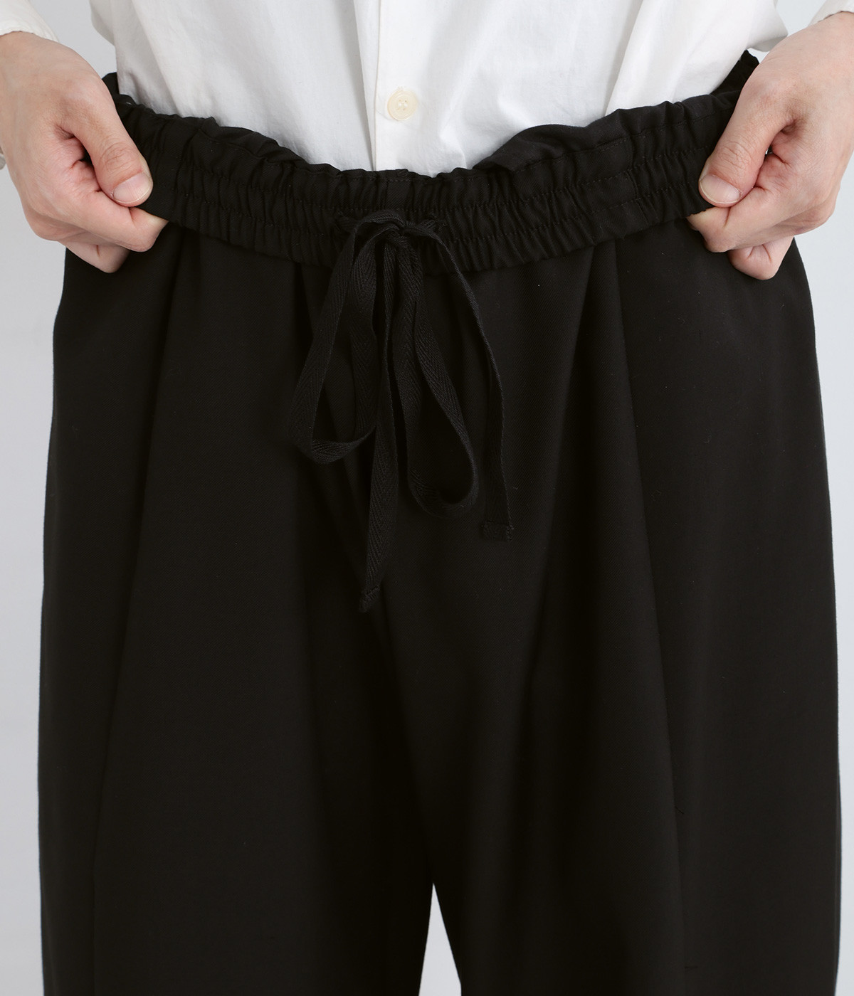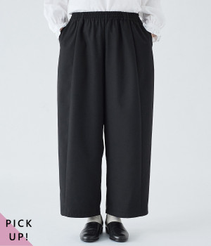 コードで調節できる伸びやかな総ゴムウエスト