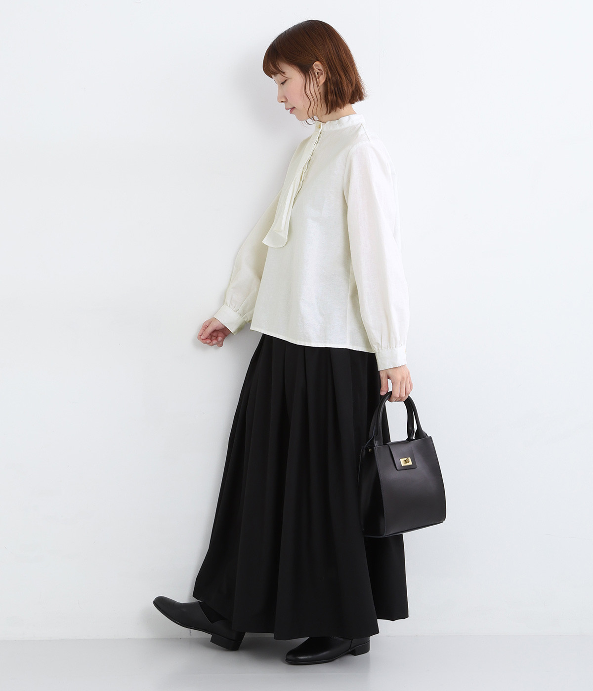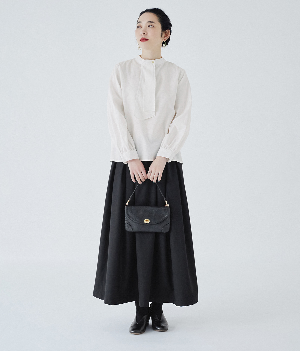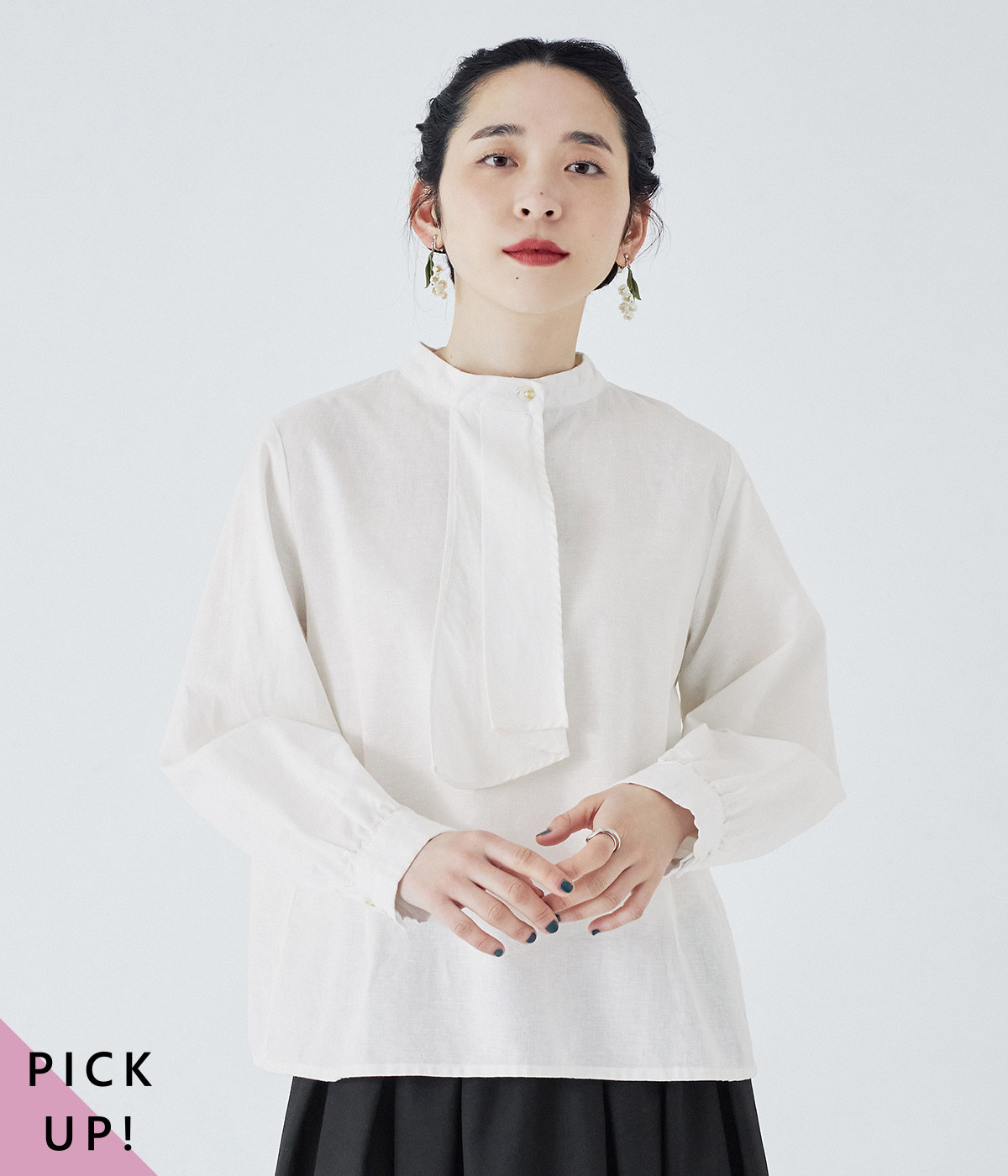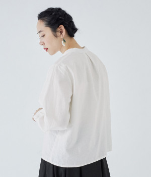 さり気なく胸元の印象を高めるヘンリーネック