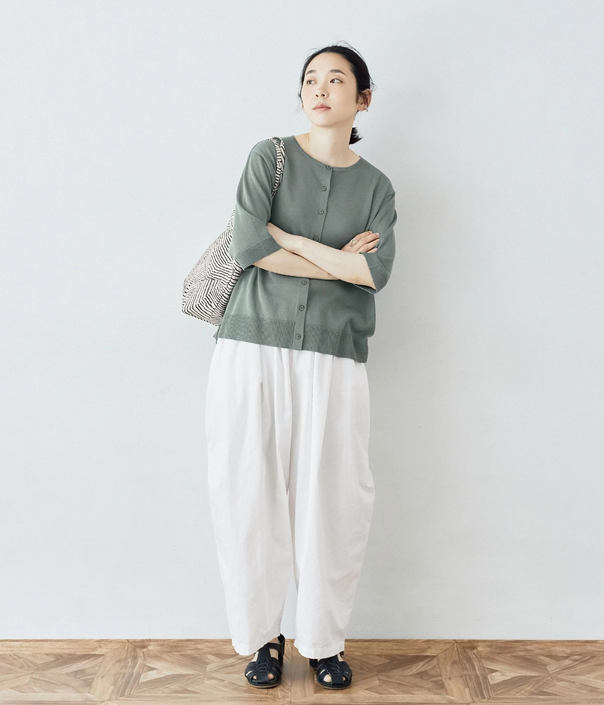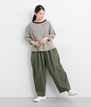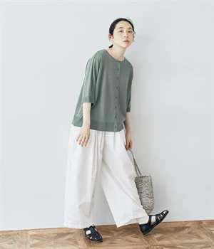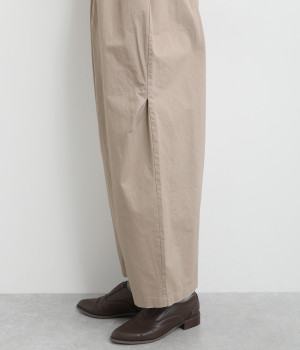薄手ながらもハリのあるコットンハイカウント生地を用いたパンツです。さらっとした心地よい肌触りに薄めの中厚地で使い勝手も抜群。落ち着いたカラー展開も魅力です。