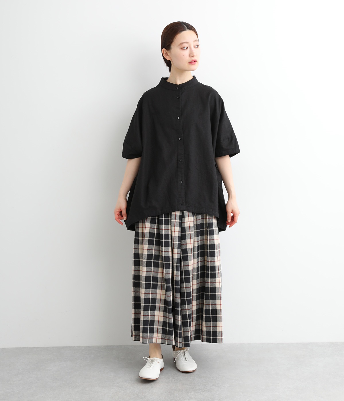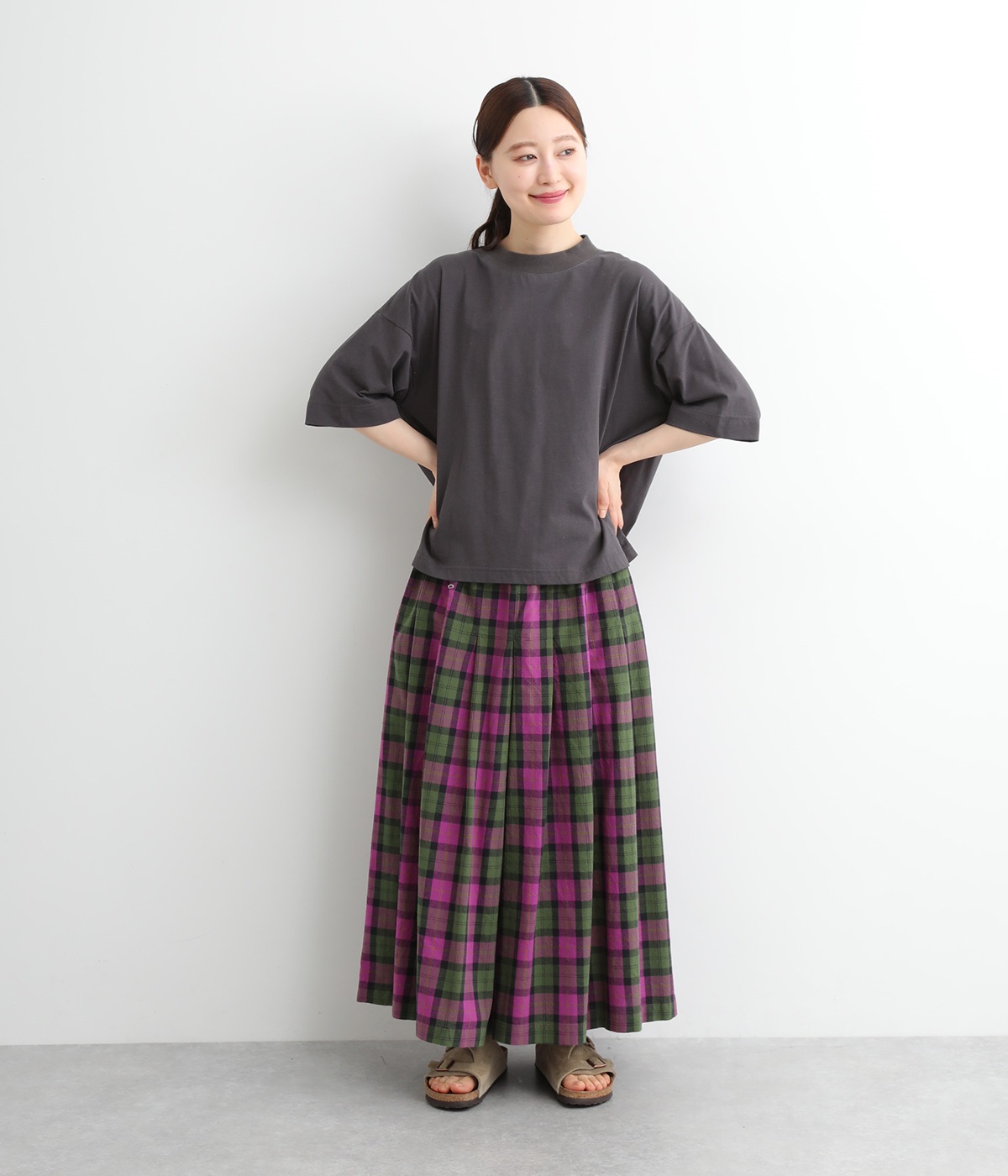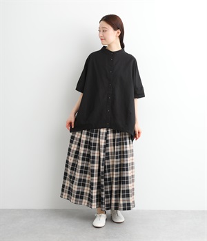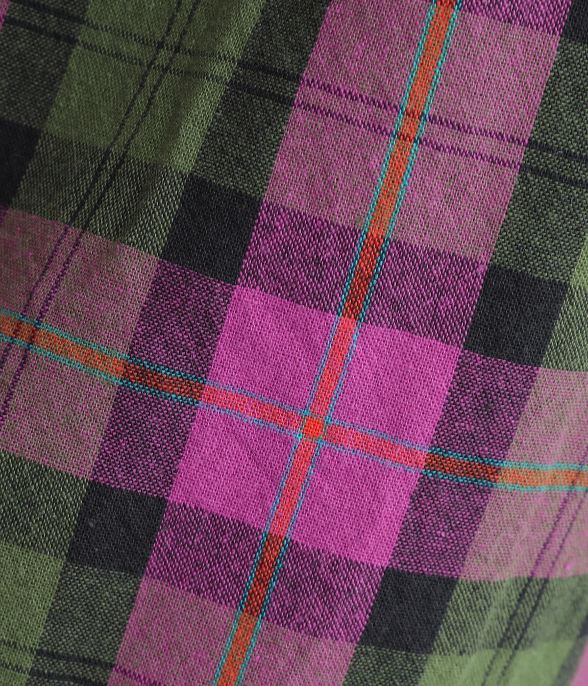 ややドライタッチではき心地のいい、ハリ感のあるコットンオックス生地で仕立てました。アイキャッチにもなる上品なチェック柄で、着こなしを華やかに魅せてくれます。