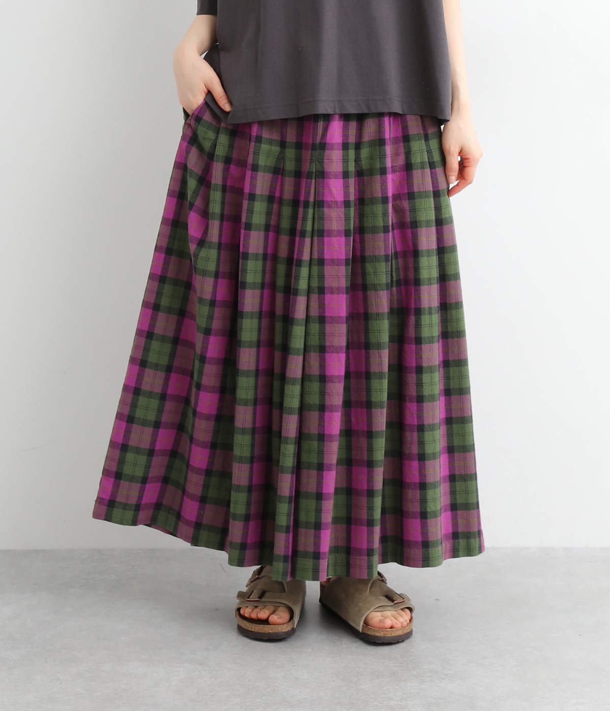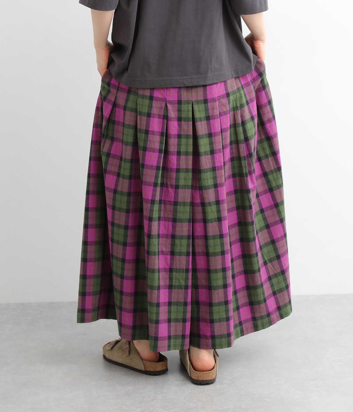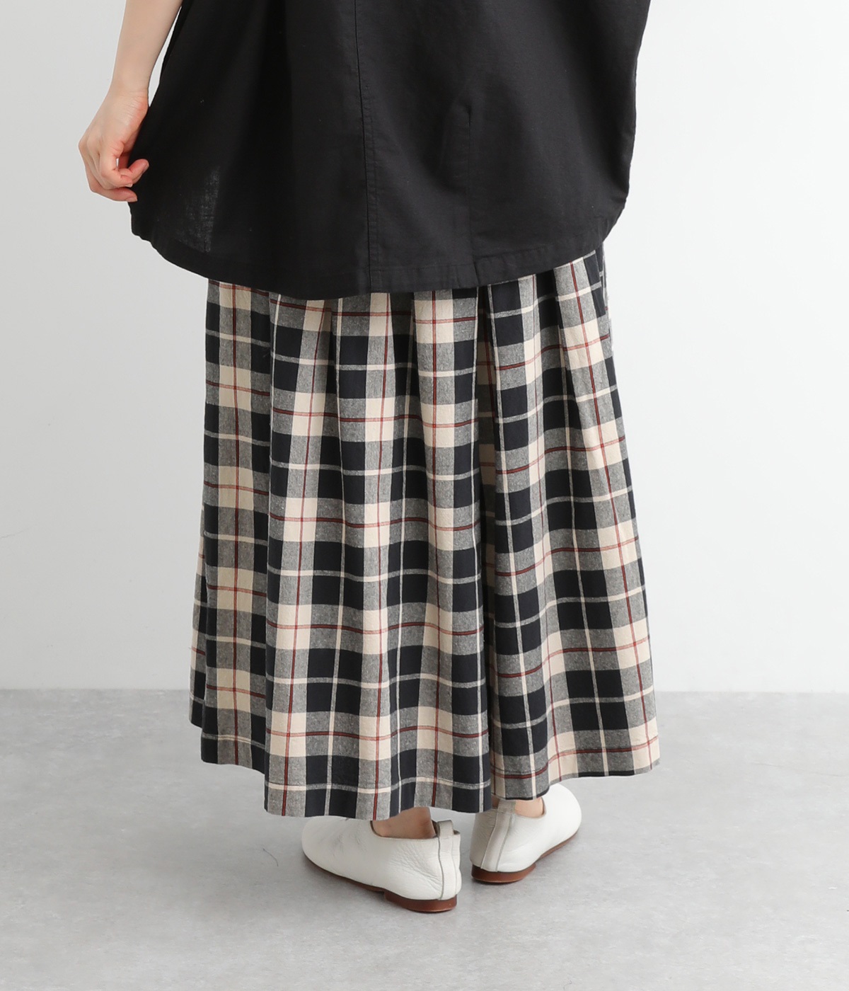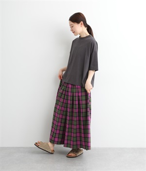 ややドライタッチではき心地のいい、ハリ感のあるコットンオックス生地で仕立てました。アイキャッチにもなる上品なチェック柄で、着こなしを華やかに魅せてくれます。