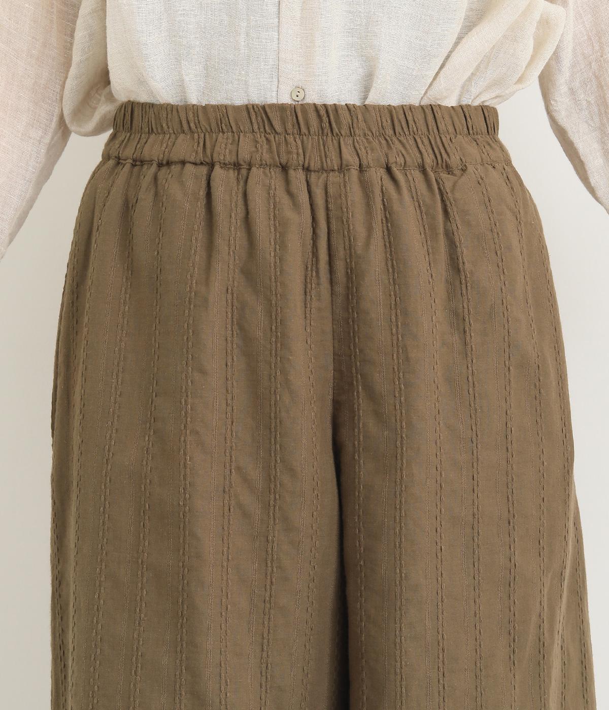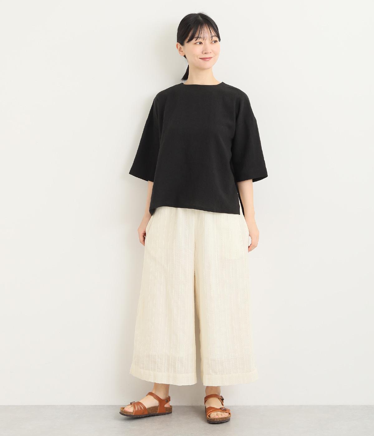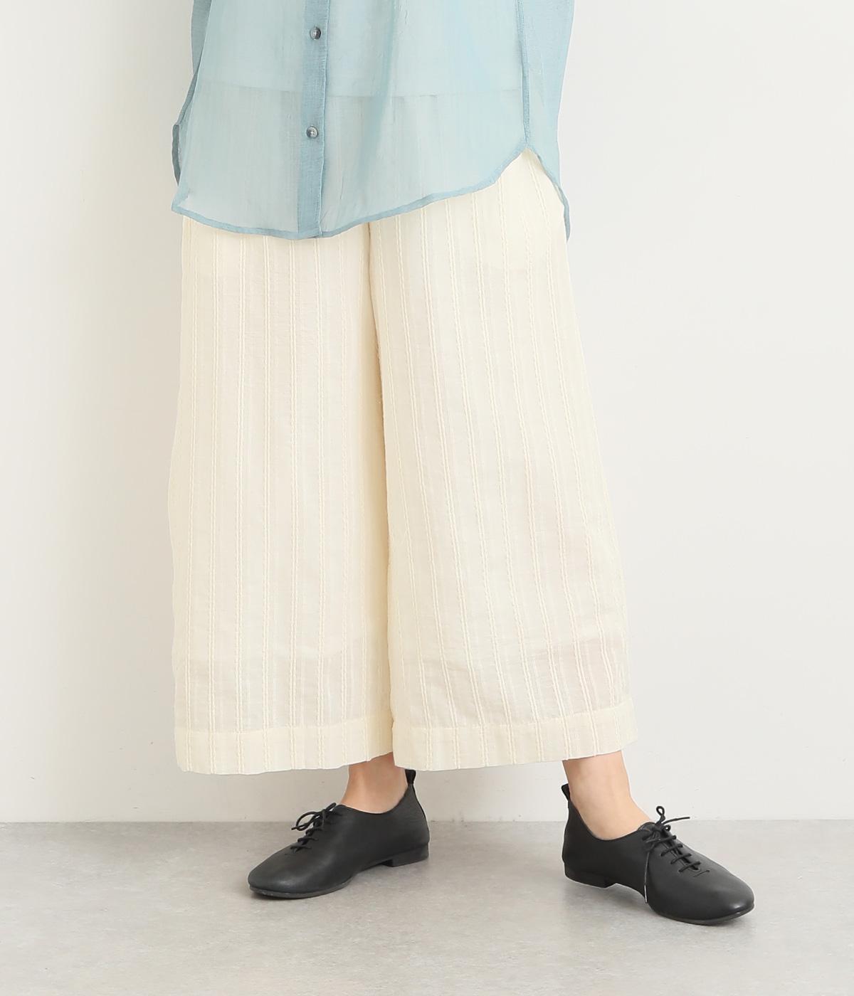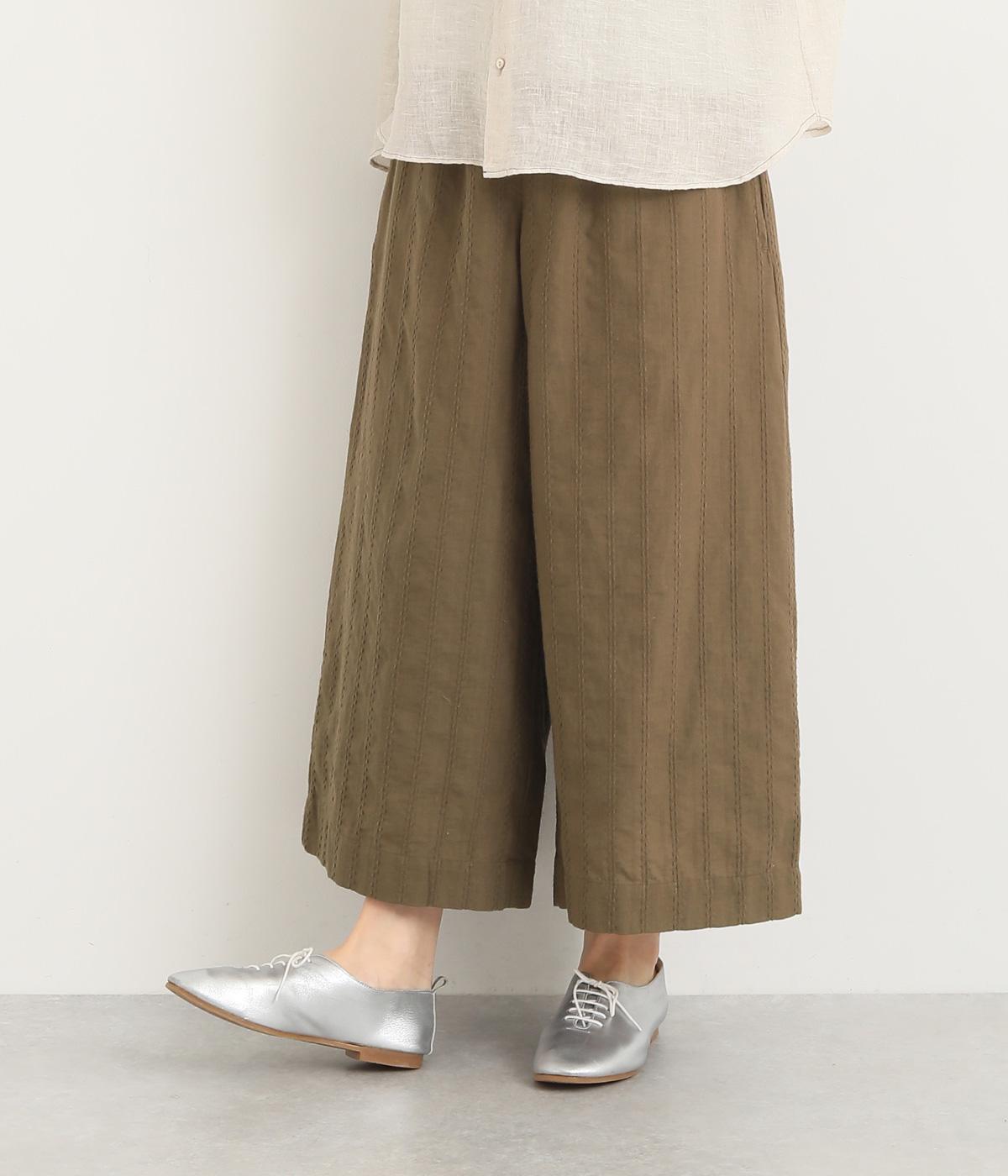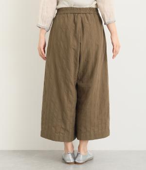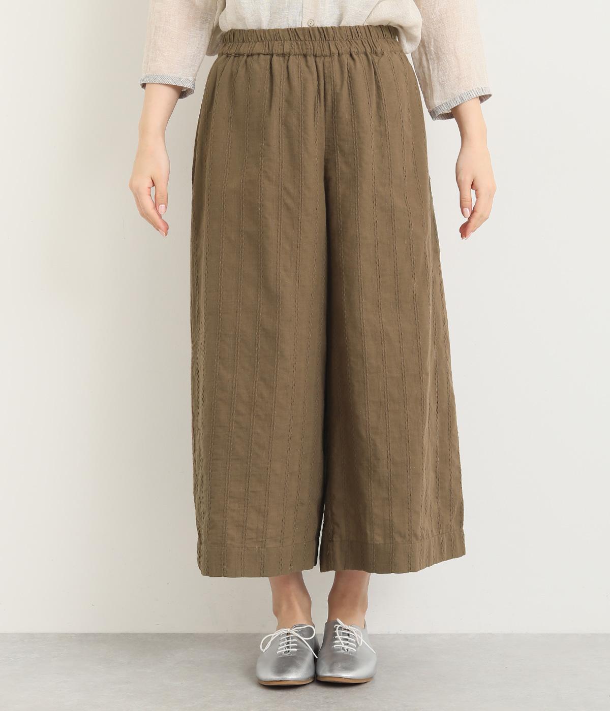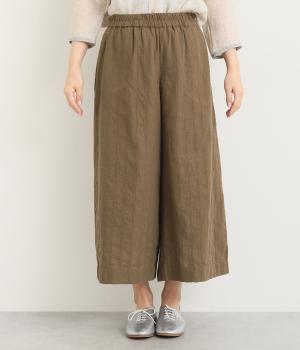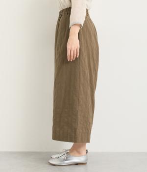 軽やかなロングスカートのように見える、ワイドシルエットが特徴的なパンツです。分量を取りつつも足首がすっきり見えるクロップド丈でバランスを取りました。ウエストは安定感のある総ゴム&内紐でイージーにはけます。