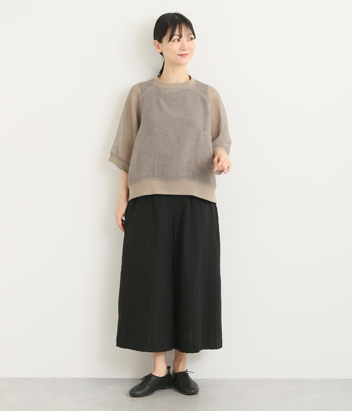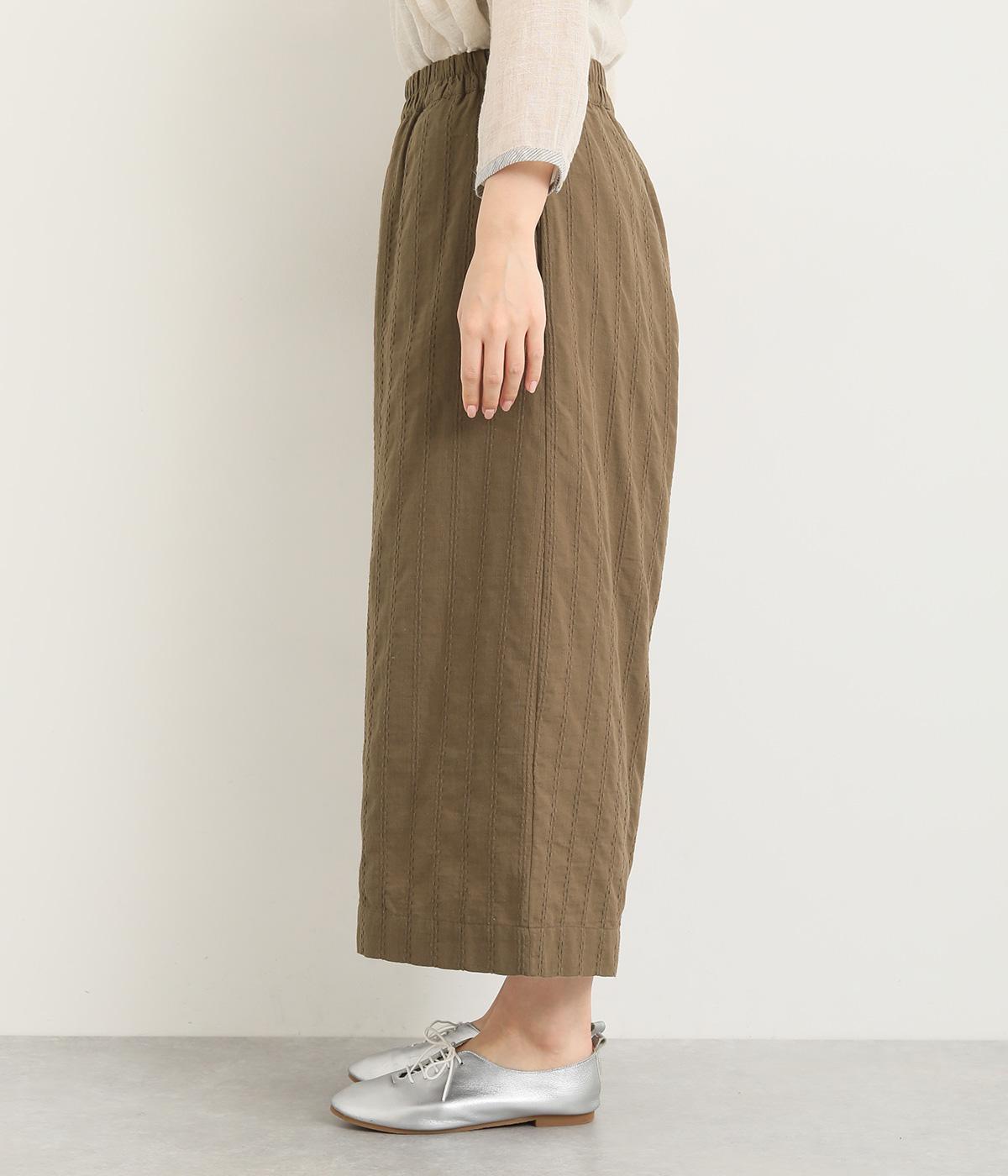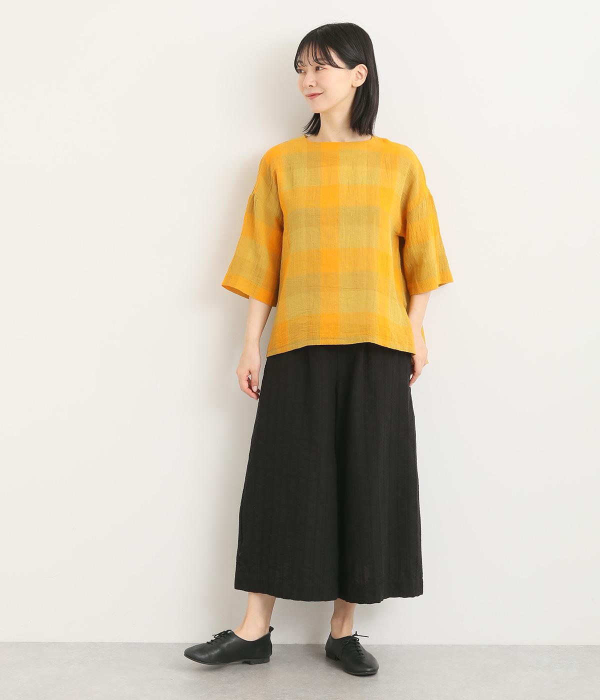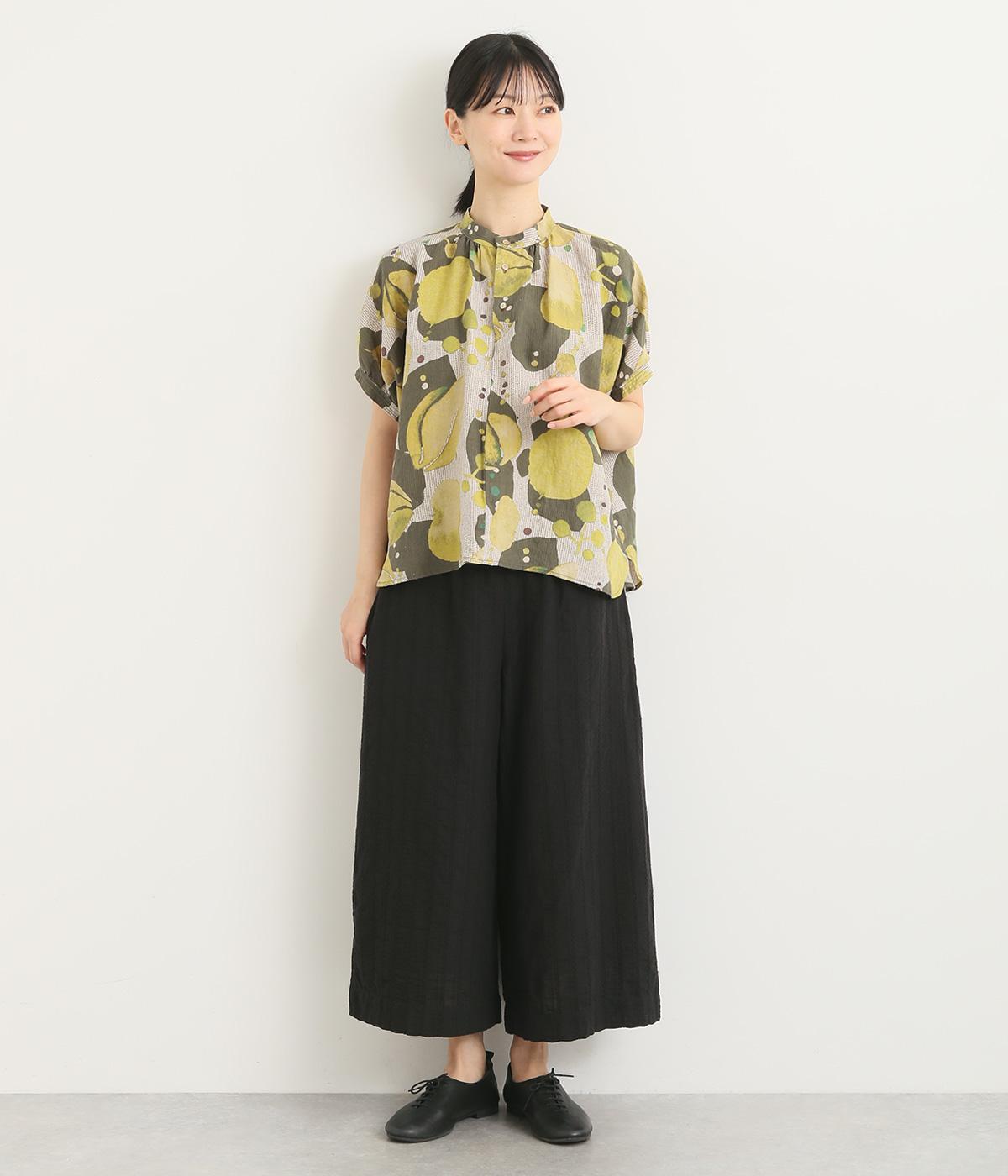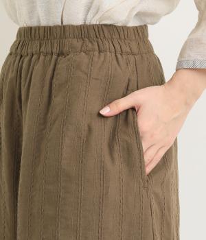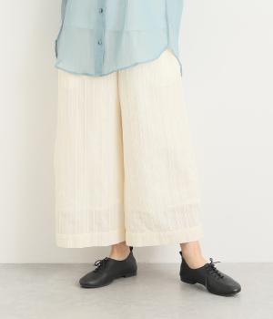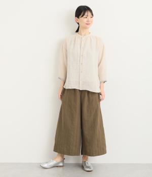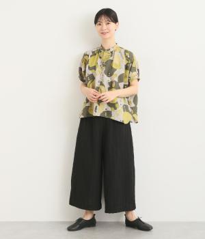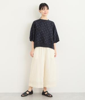 軽やかなロングスカートのように見える、ワイドシルエットが特徴的なパンツです。分量を取りつつも足首がすっきり見えるクロップド丈でバランスを取りました。ウエストは安定感のある総ゴム&内紐でイージーにはけます。