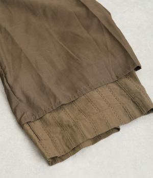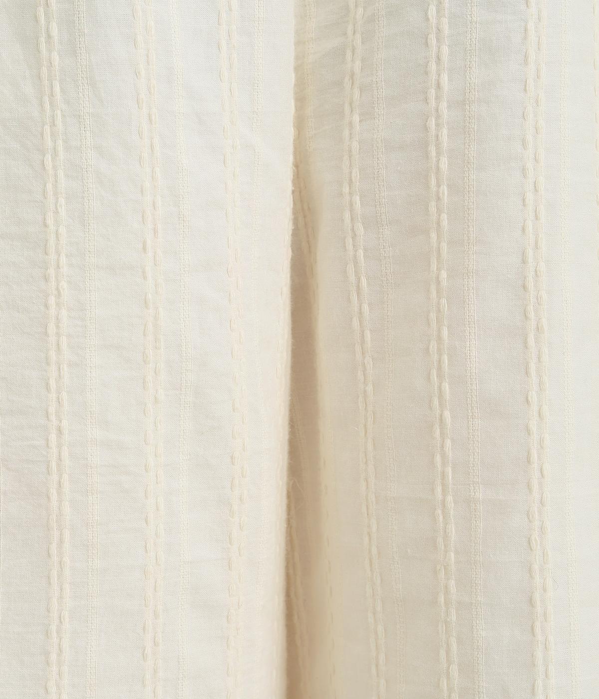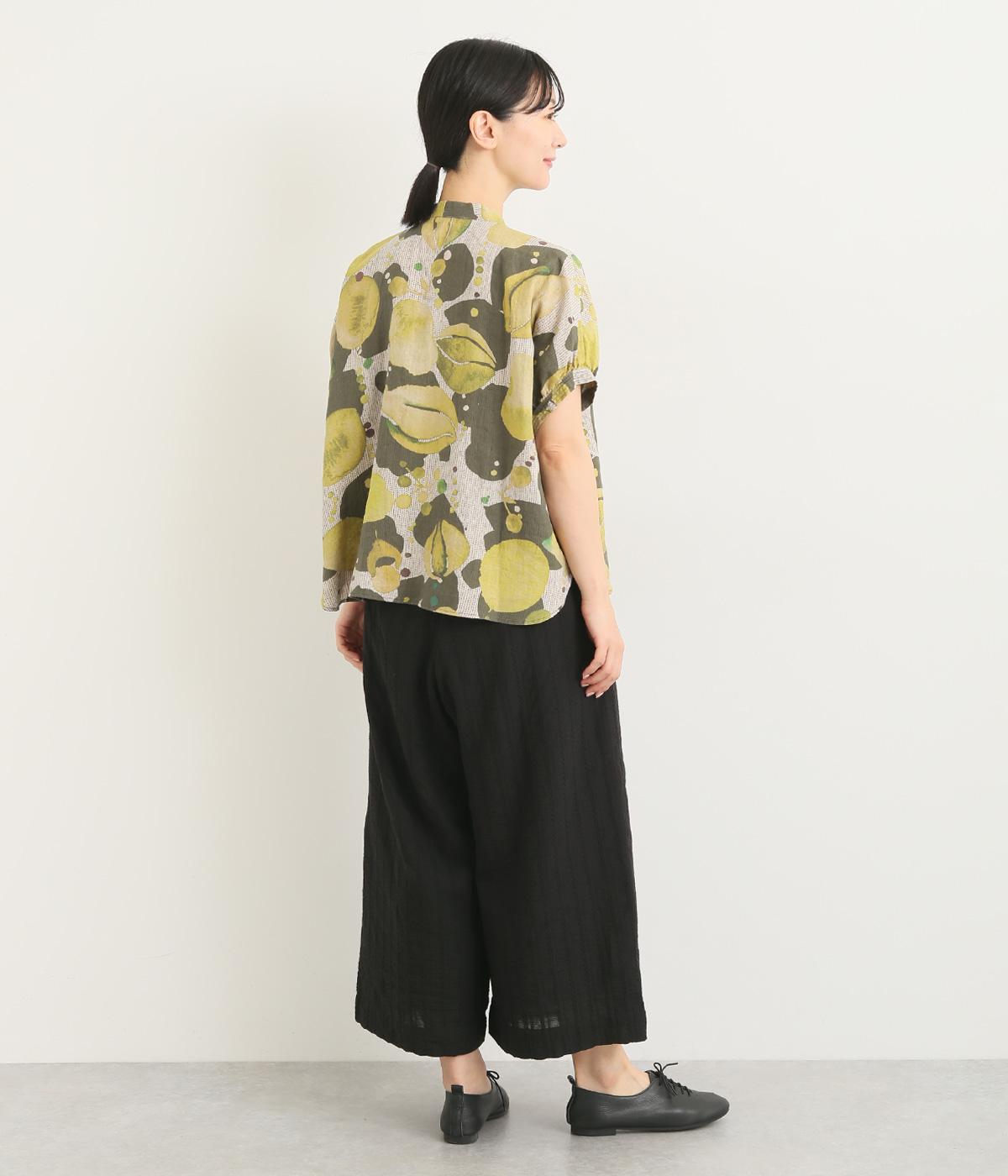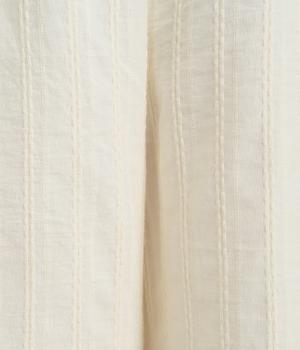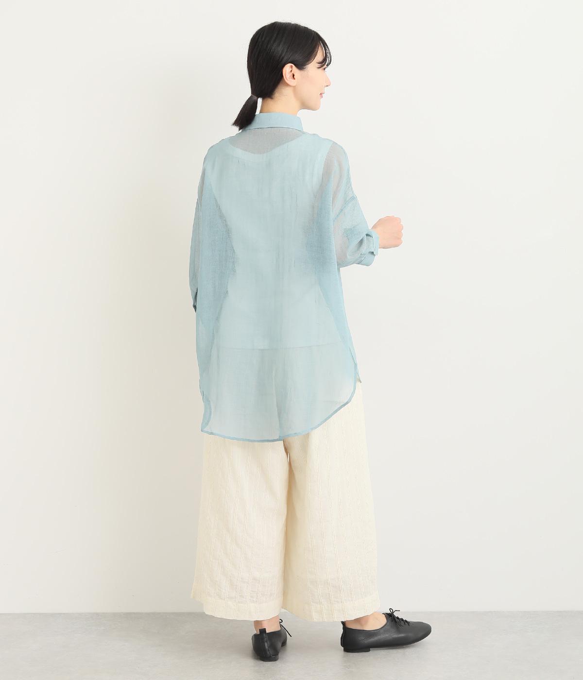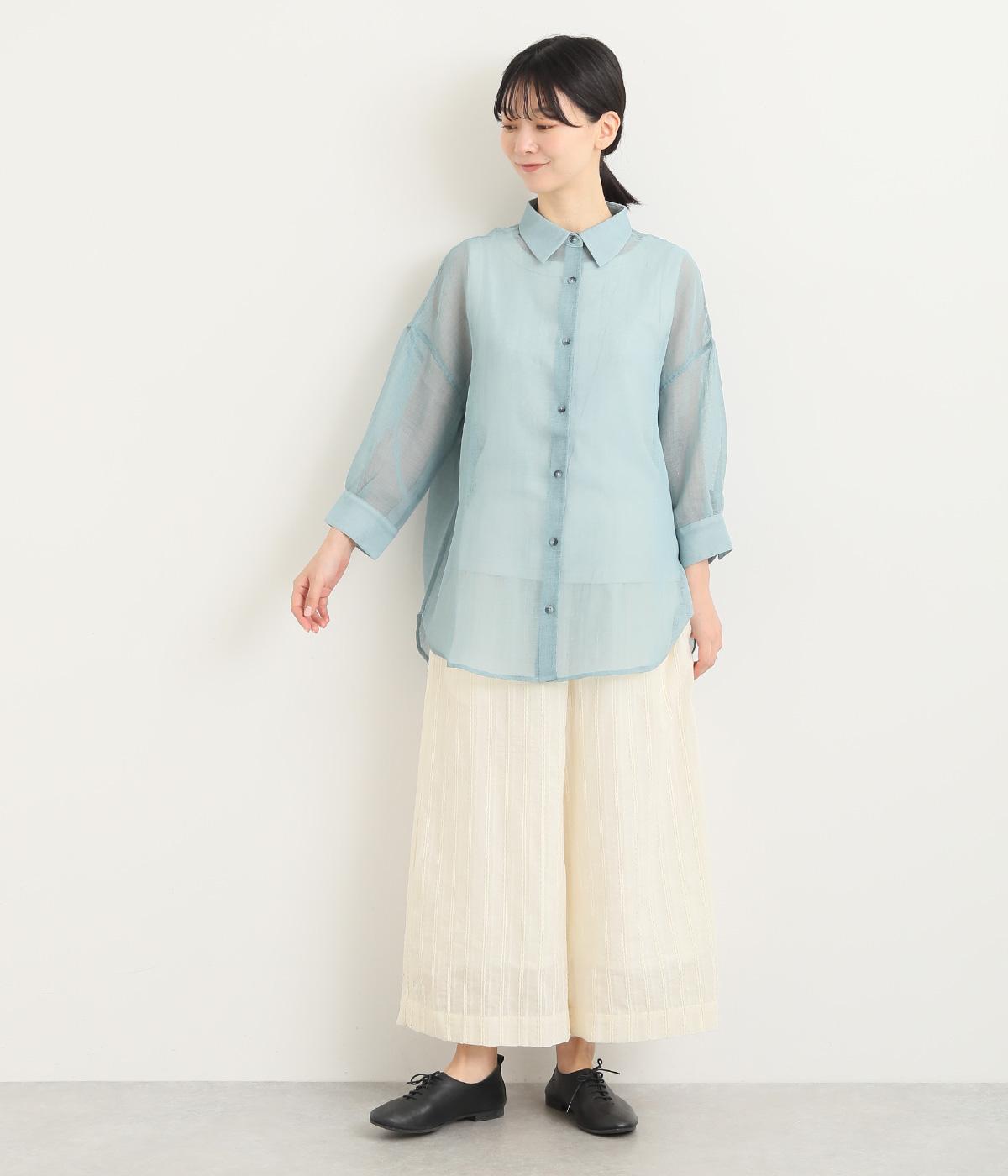 軽くやわらかなコットンガーゼ素材を用いた、ストライプステッチが特徴的なドビー生地を使用しています。薄手で通気性も良く、綿混の裏地で透け感をおさえました。