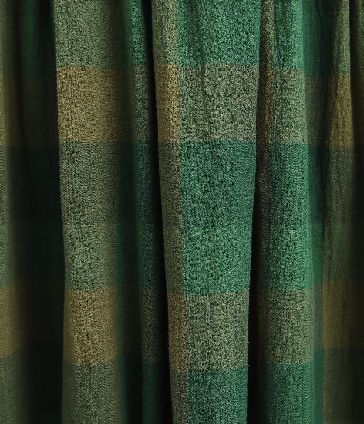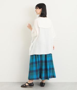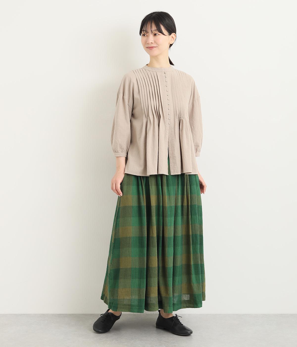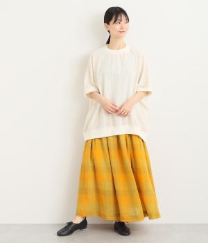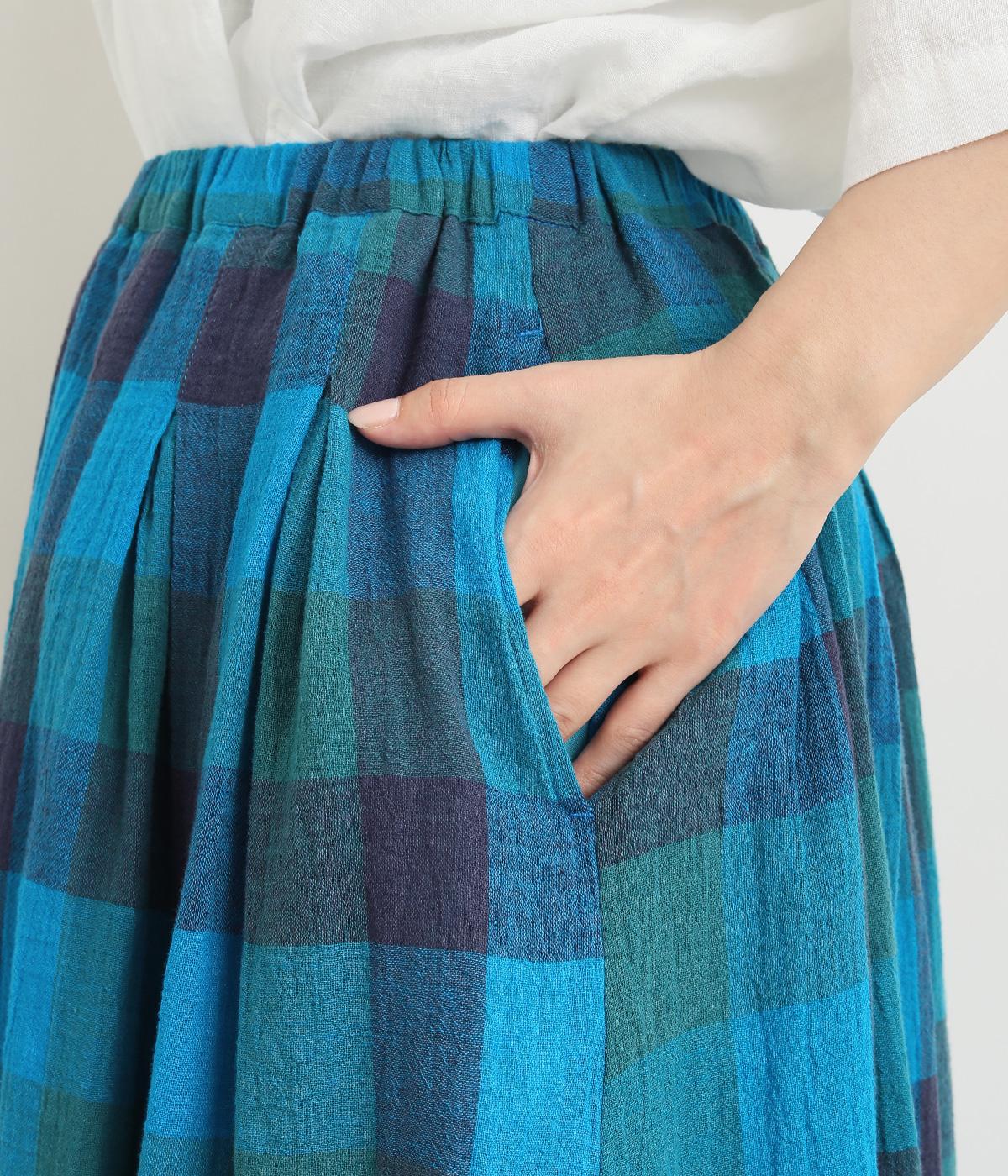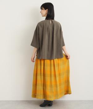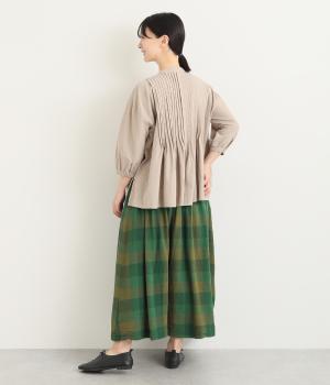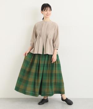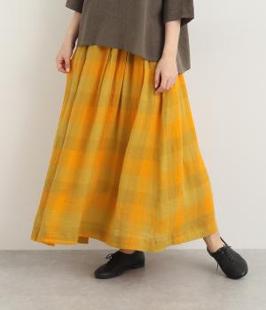 スタイリングを華やかに魅せてくれるチェック柄を活かした、ベーシックなフレアスカートです。タックを入れて腰まわりは広がりをおさえつつ、自然なドレープの出る分量感が目を惹きます。ウエストは総ゴム+内紐でイージーに仕上げました。