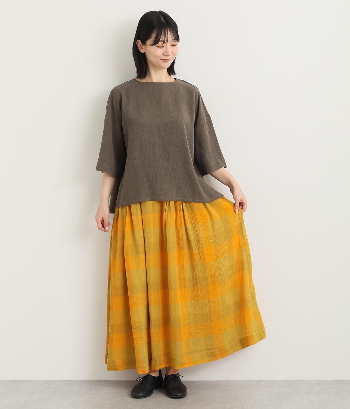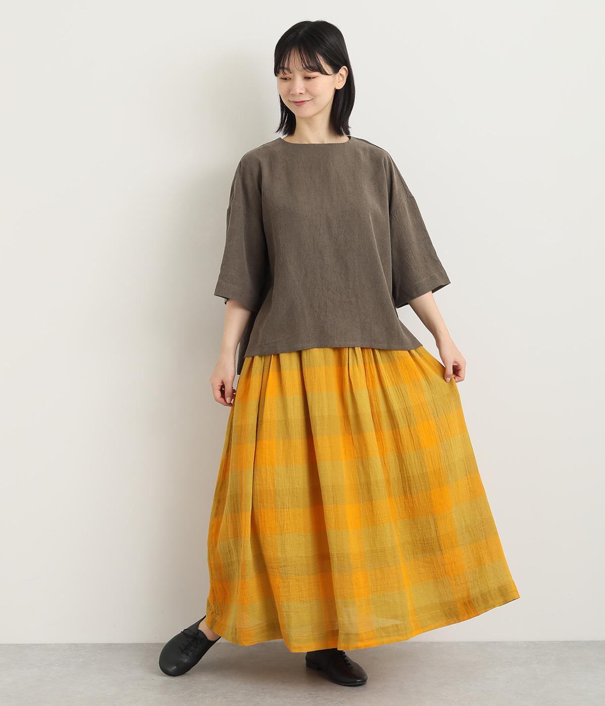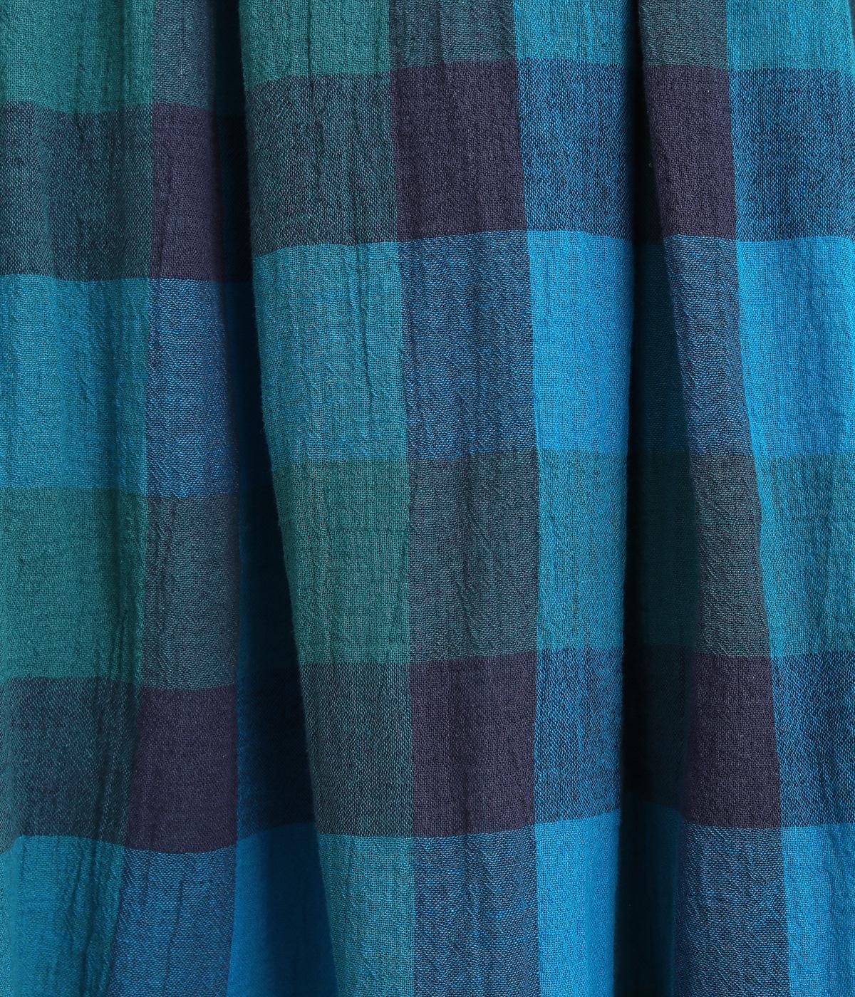 自然なシボ感やドライタッチが心地よいリネンコットンを使用しています。鮮やかなブロックチェック柄が印象的ながら、ナチュラル素材で取り入れやすい仕上がりです。綿混の裏地で透け感をおさえました。