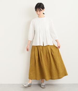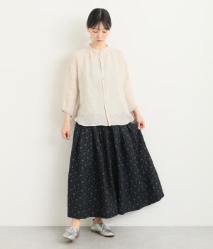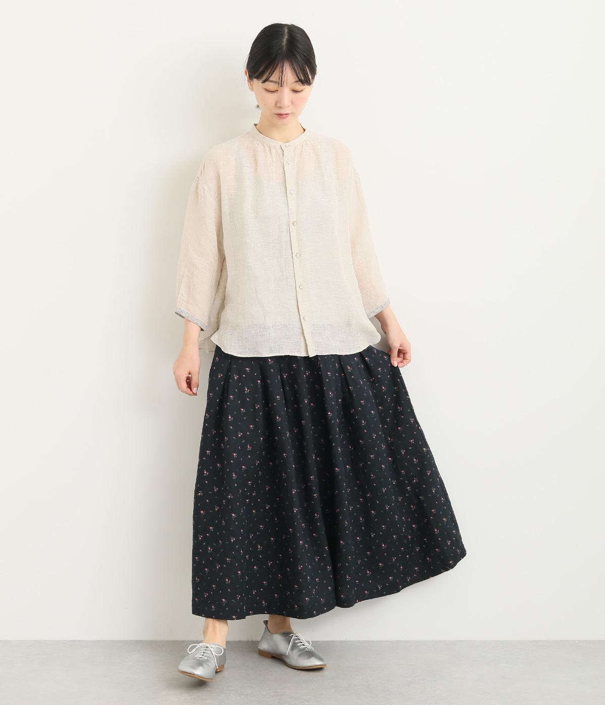 くったりとした風合いに小花柄がノスタルジックなリネン生地をセレクト。リネン特有の心地よいハリ感を残しながらも、やわらかで着心地のいい仕上がりです。