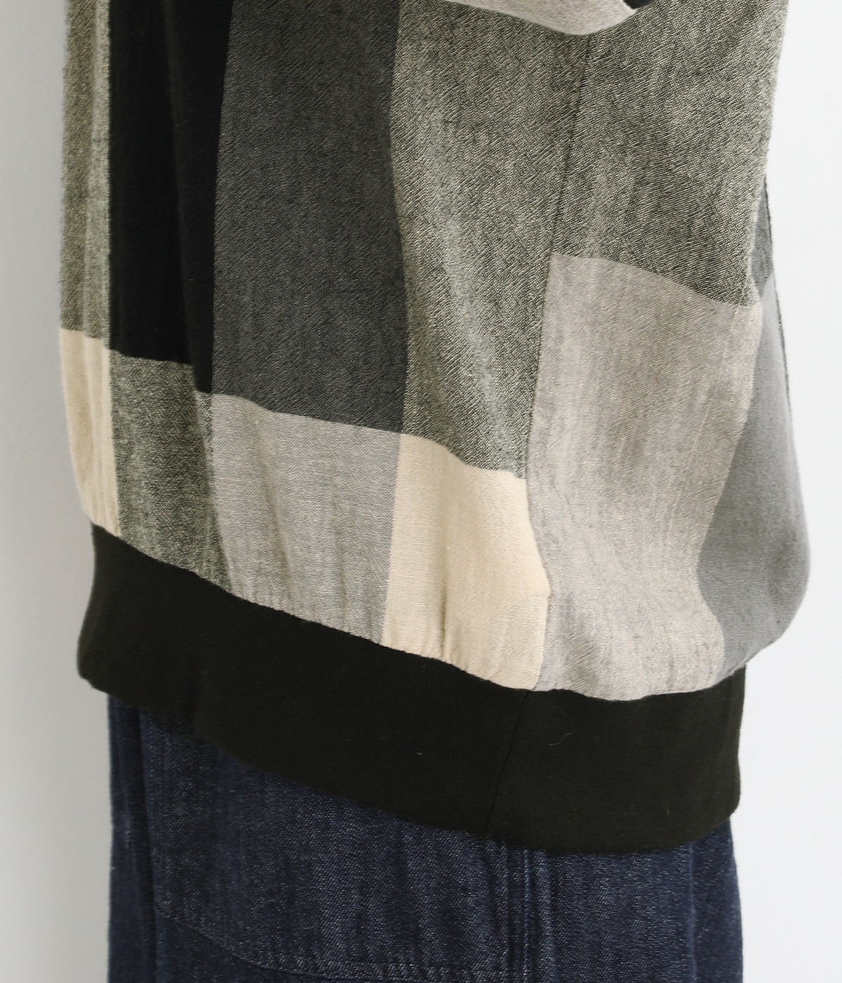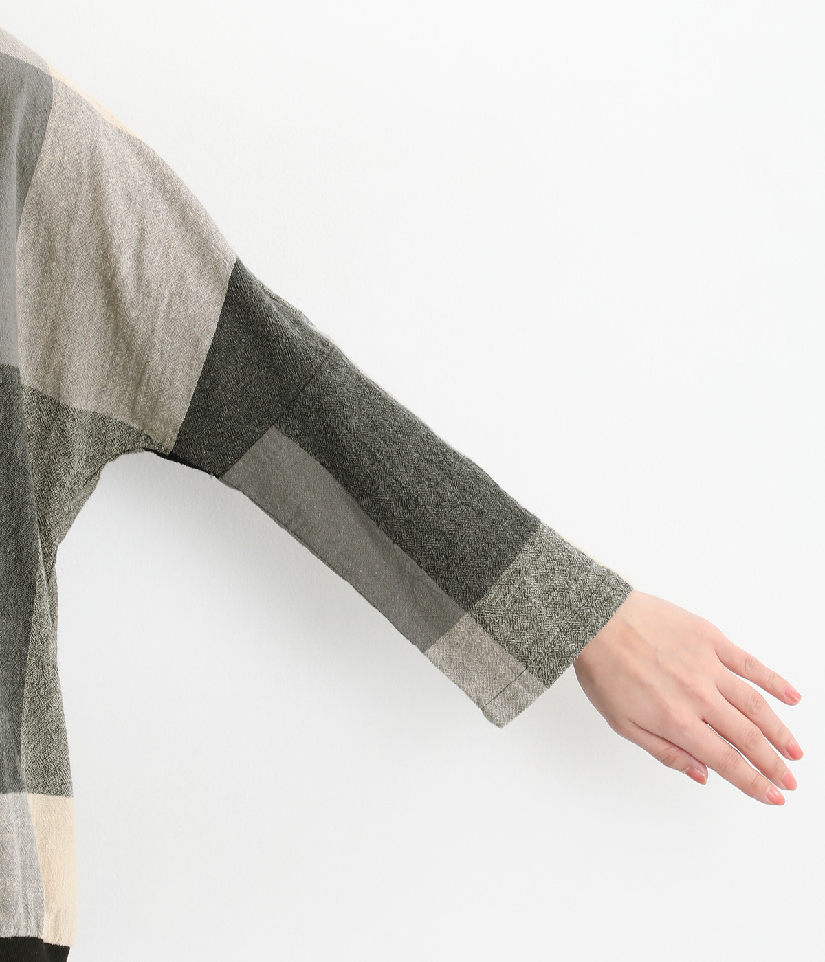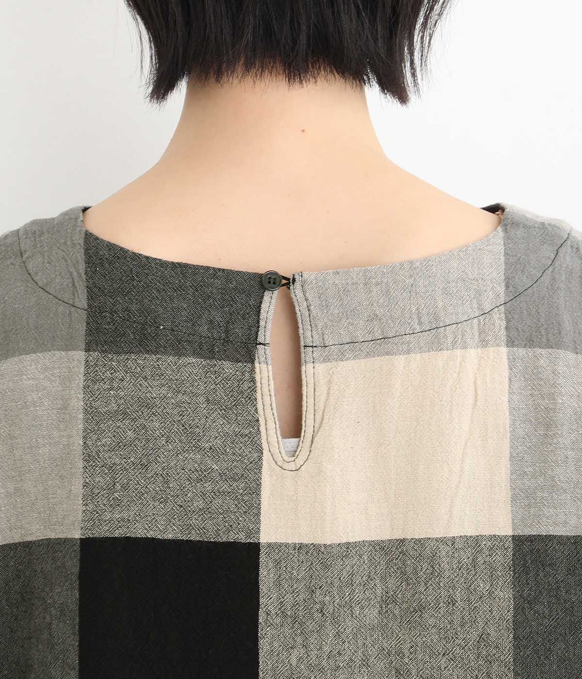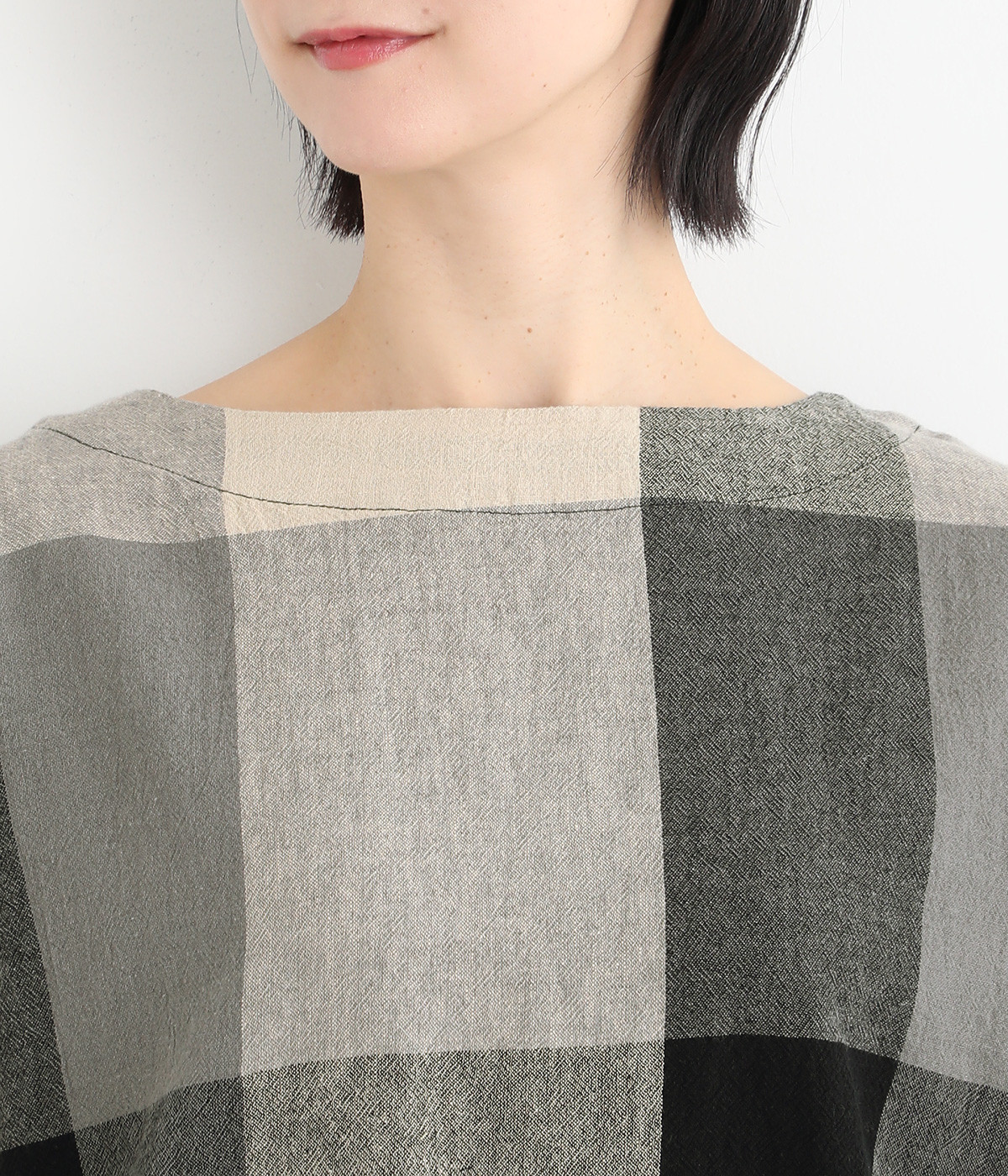 大胆なチェック柄をあしらった、コーディネートの主役を飾る一枚。ドルマン風のゆったりとしたシルエットで見た目も着心地もリラクシーなデザインです。裾がリブになっている分、軽くブラウジングしてこなれ感を出すのも◎。後ろネックはやや広めのティアドロップあきになっています。