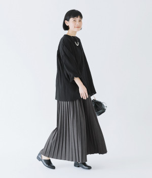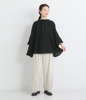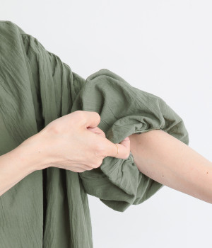やわらかく、ふわっと肌に触れる薄手のコットン素材。少しくしゅっとしたシボのある風合いで、着こなしにニュアンスをプラスします。風をはらんで揺らめく軽やかさが◎。