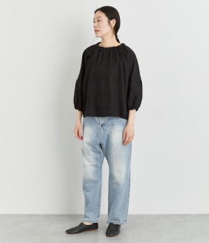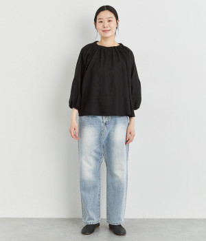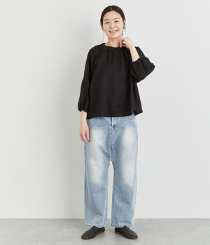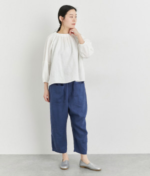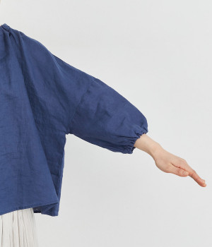 やわらかくも心地よいハリと落ち感のあるリネンオックス生地を使ったブラウスです。自然体な佇まいが魅力的で、着るほどに肌になじむリネンのエイジングもたのしみ。