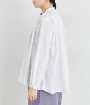 さらりとした薄手のコットンローン生地を使ったブラウスです。ほんのりシアーで軽やかな生地感が特徴的で、ほどよくふくらみもありストレスなく着用できます。