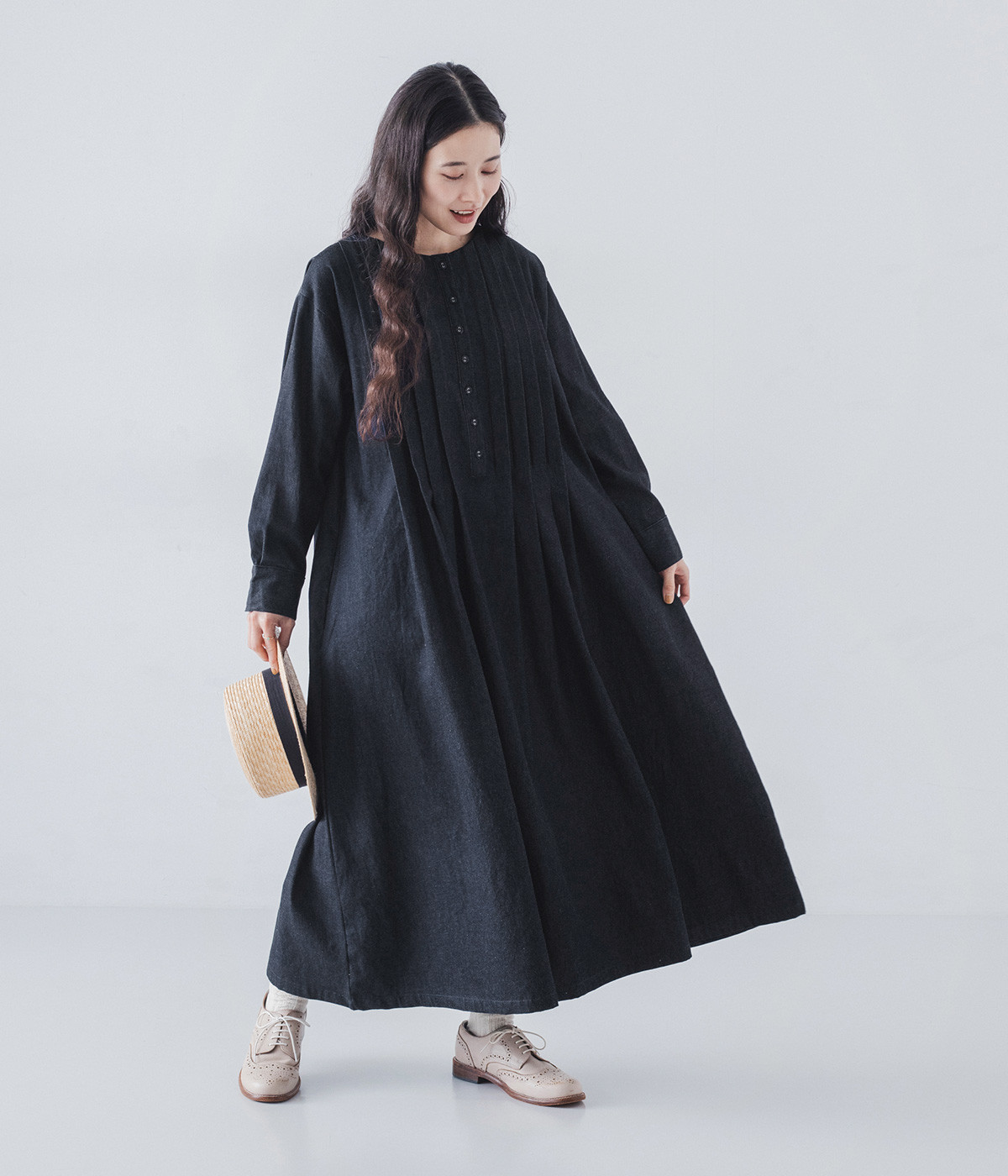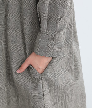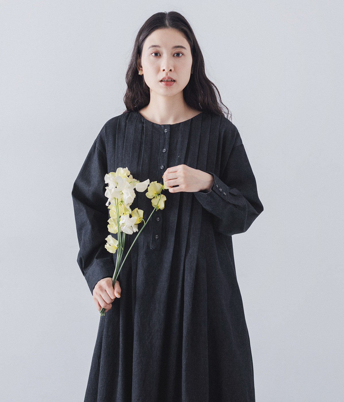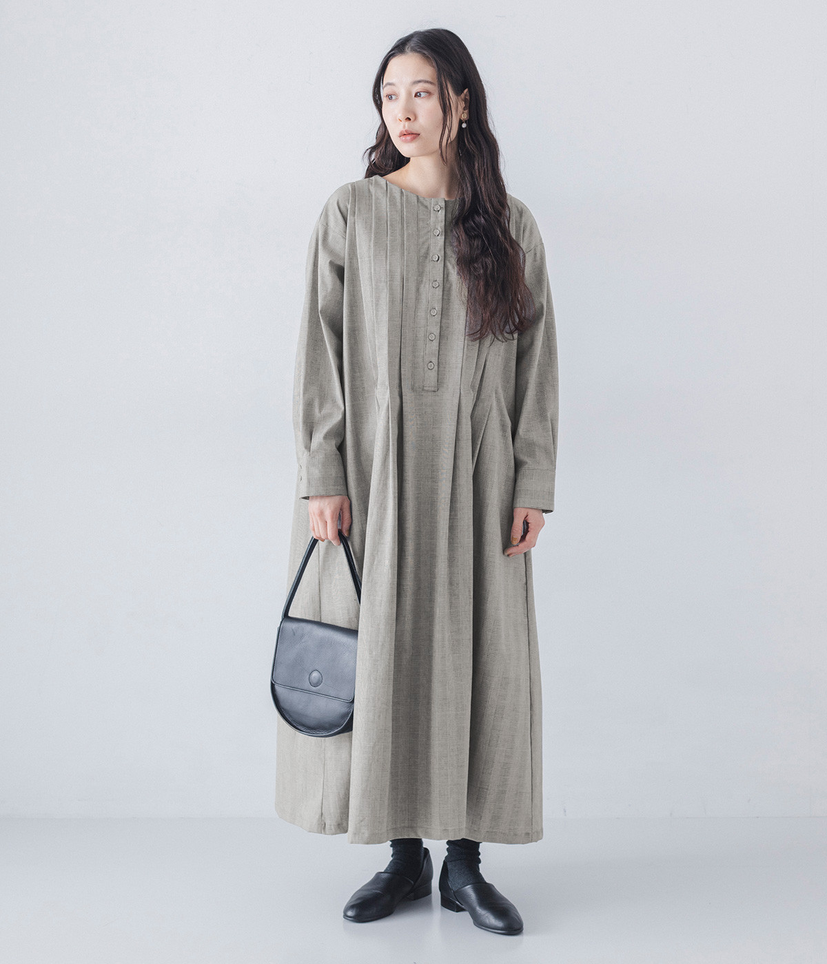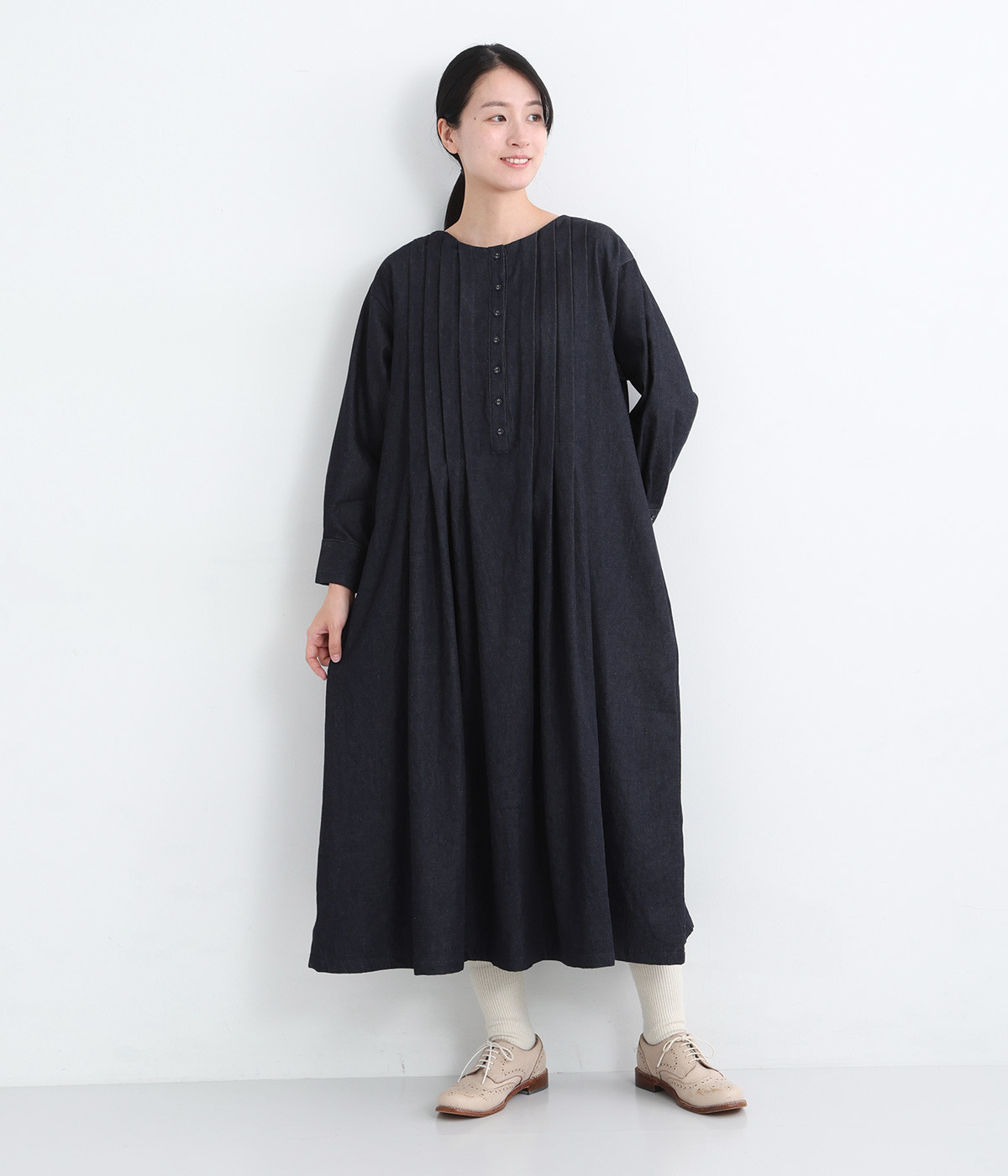 胸元をキャッチーに印象づけるヘンリーネック