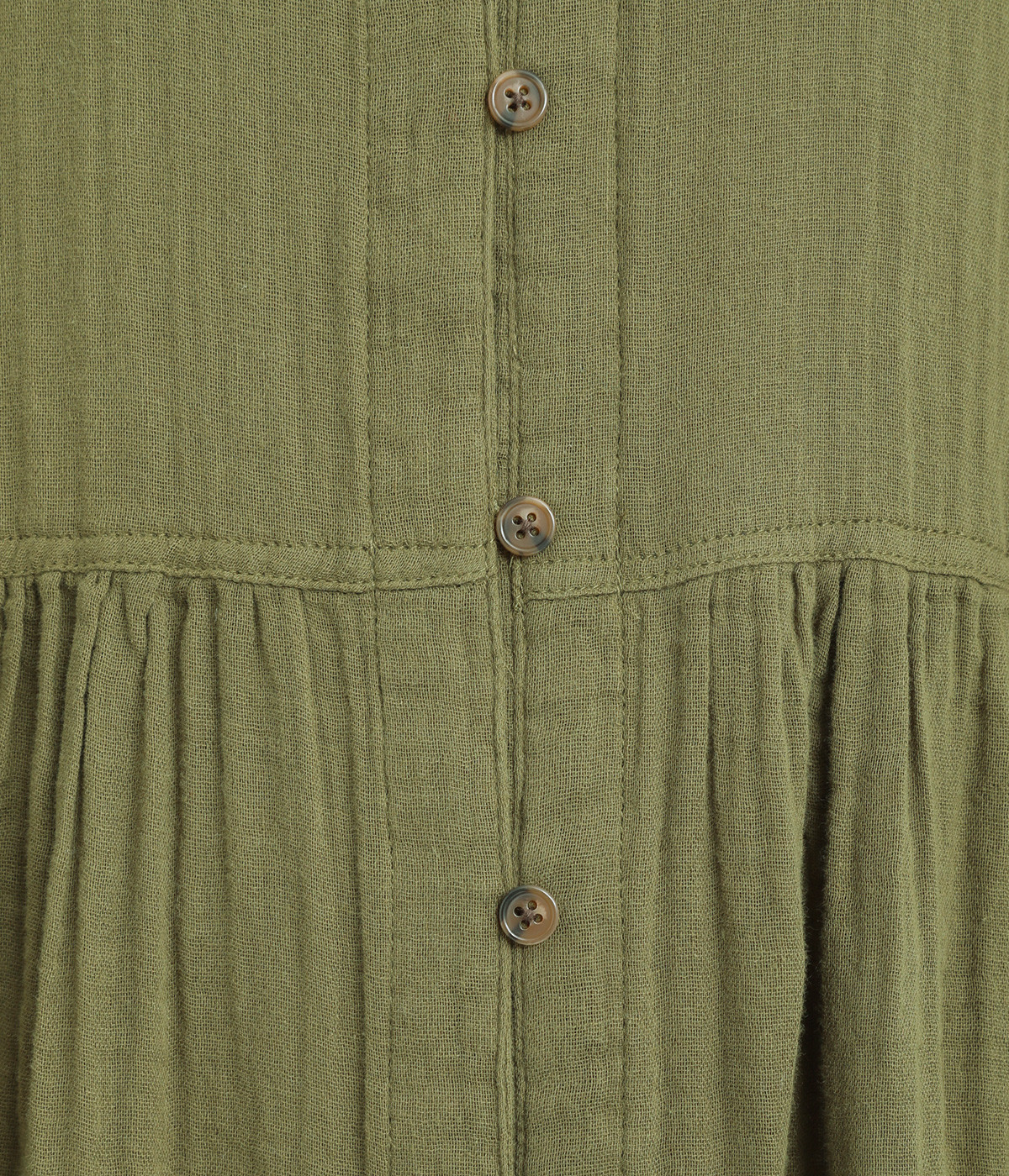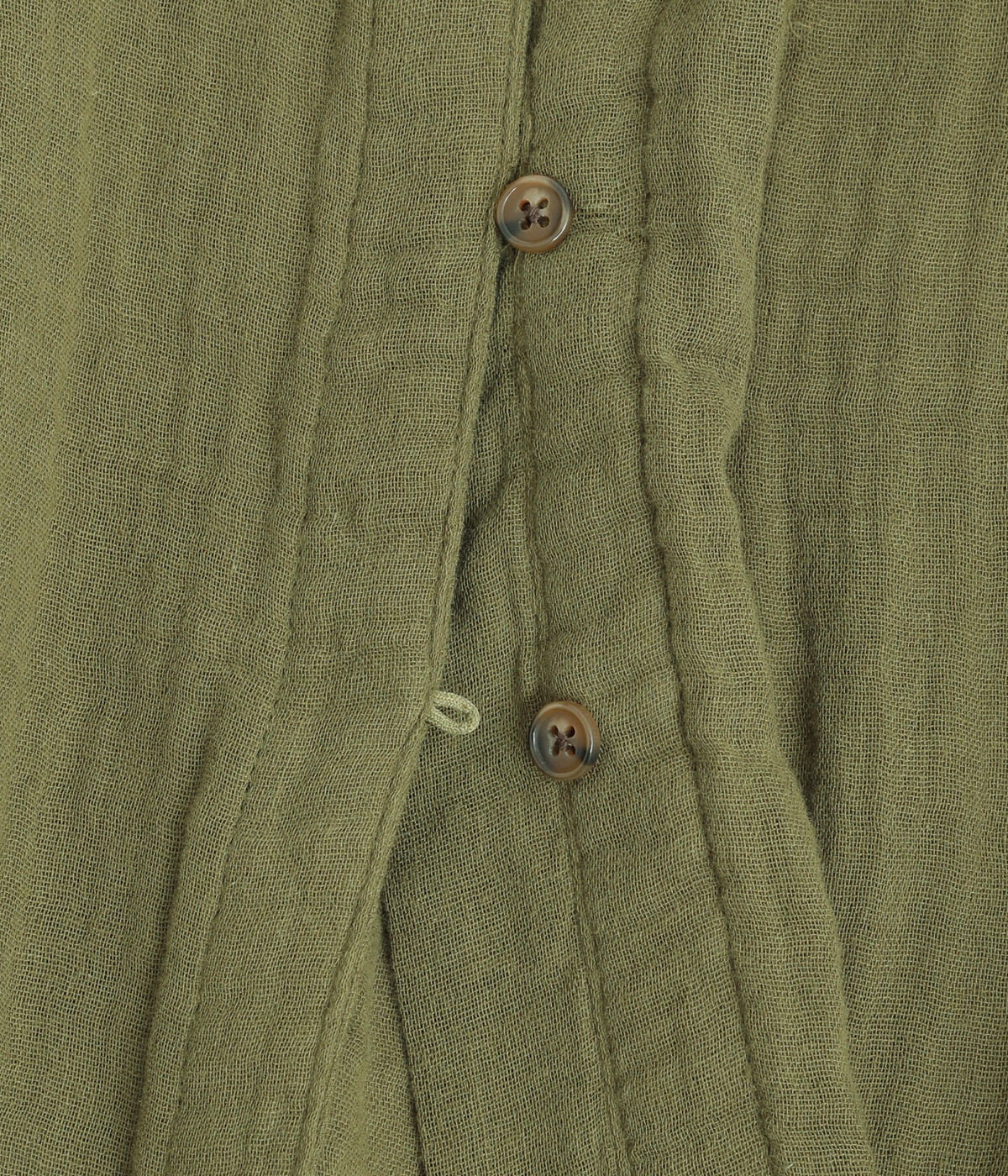 やわらかな肌触りが抜群の心地よさを誇るダブルガーゼコットン生地を使用しました。やさしい雰囲気を纏った表情が魅力的で、シワも気になりにくいのでふだん使いしやすい素材感です。