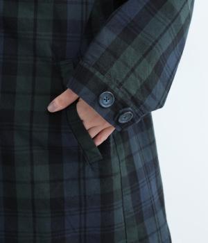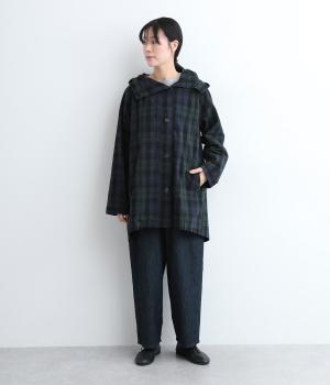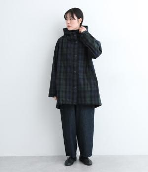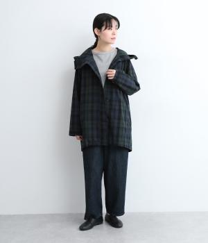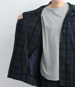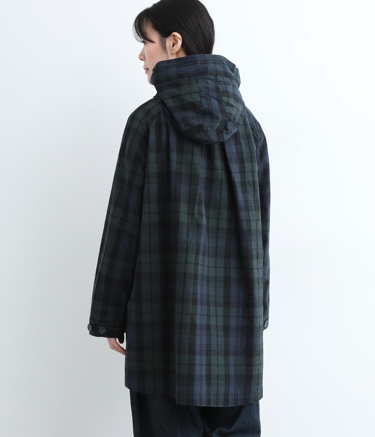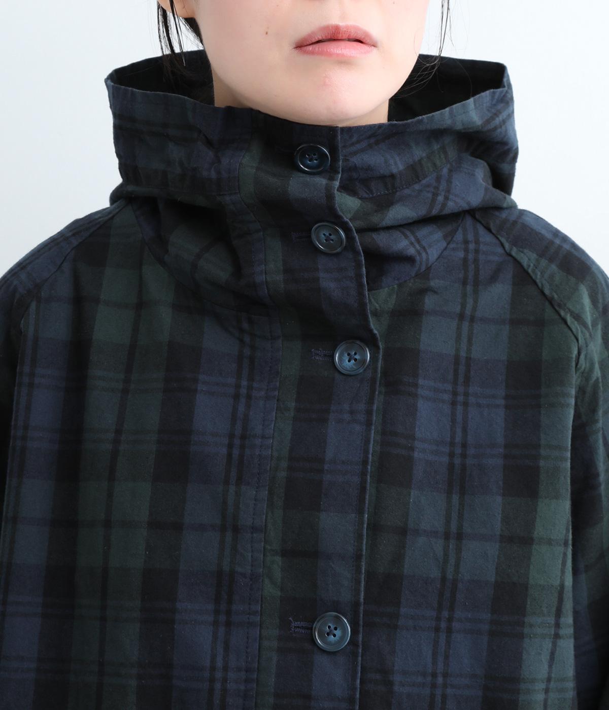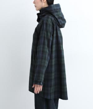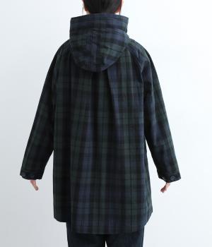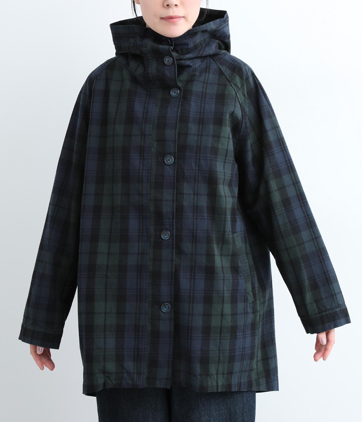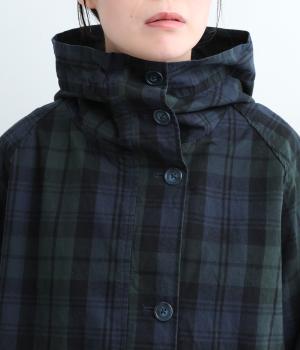 落ち着いた配色のブラックウォッチ柄が、トラッドな雰囲気を作りだすフードつきジャケットです。ラグランスリーブによって肩まわりが動かしやすく、すっきりとレイヤードスタイルがまとまります。