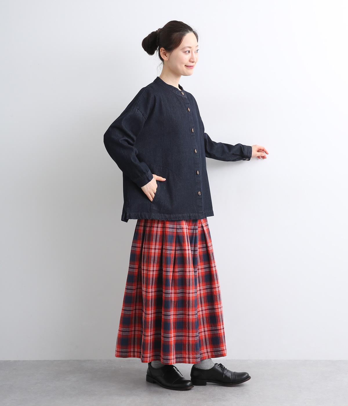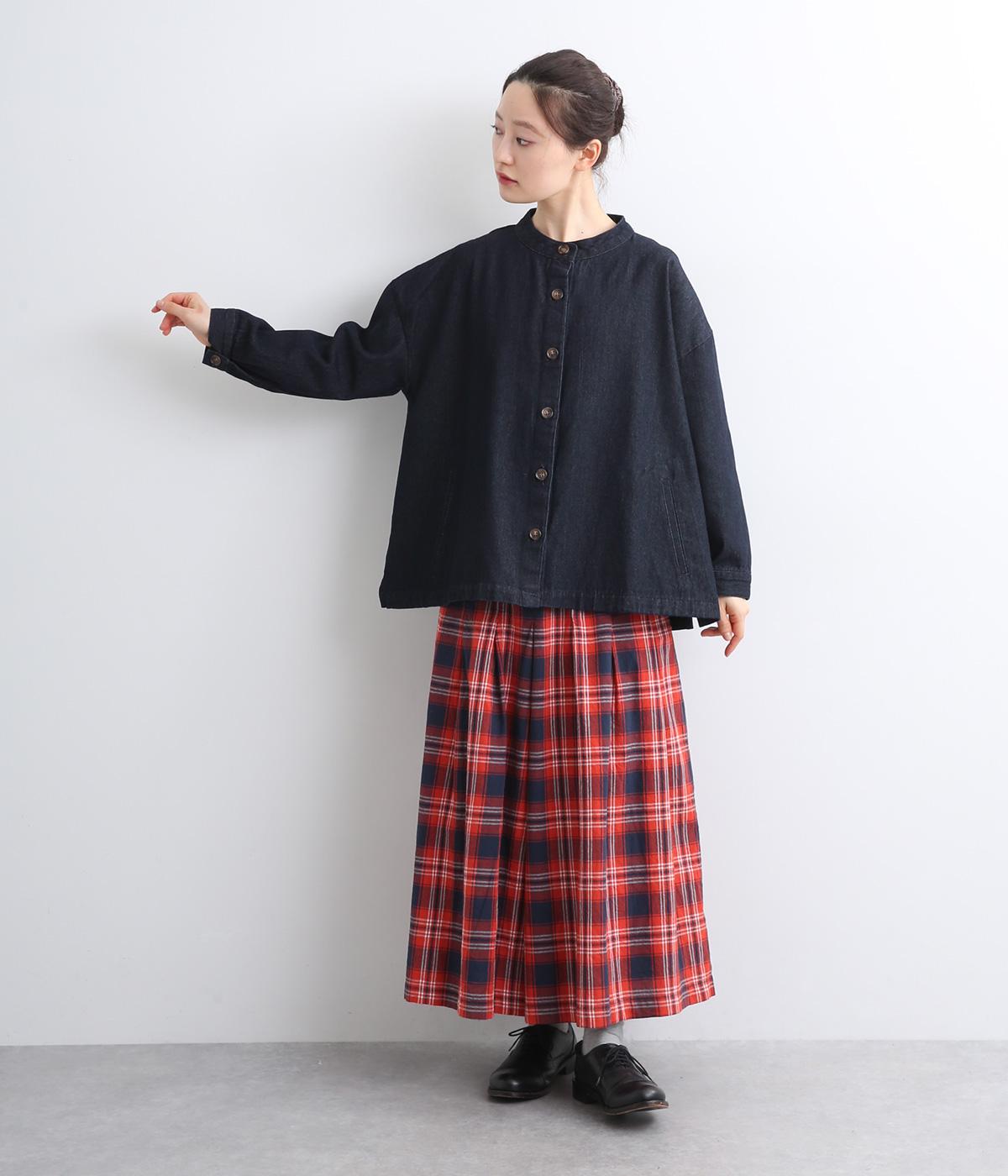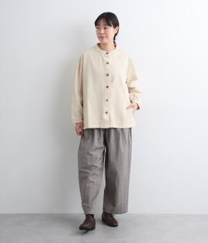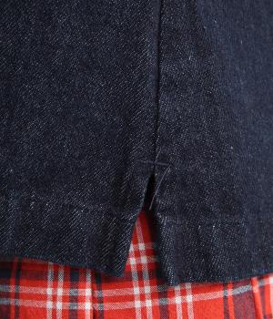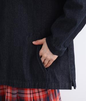 ほどよい厚みでしっかりとしたコットン混デニム地を使用。着るほどにやわらかくなじむ、ナチュラルな風合いも魅力です。