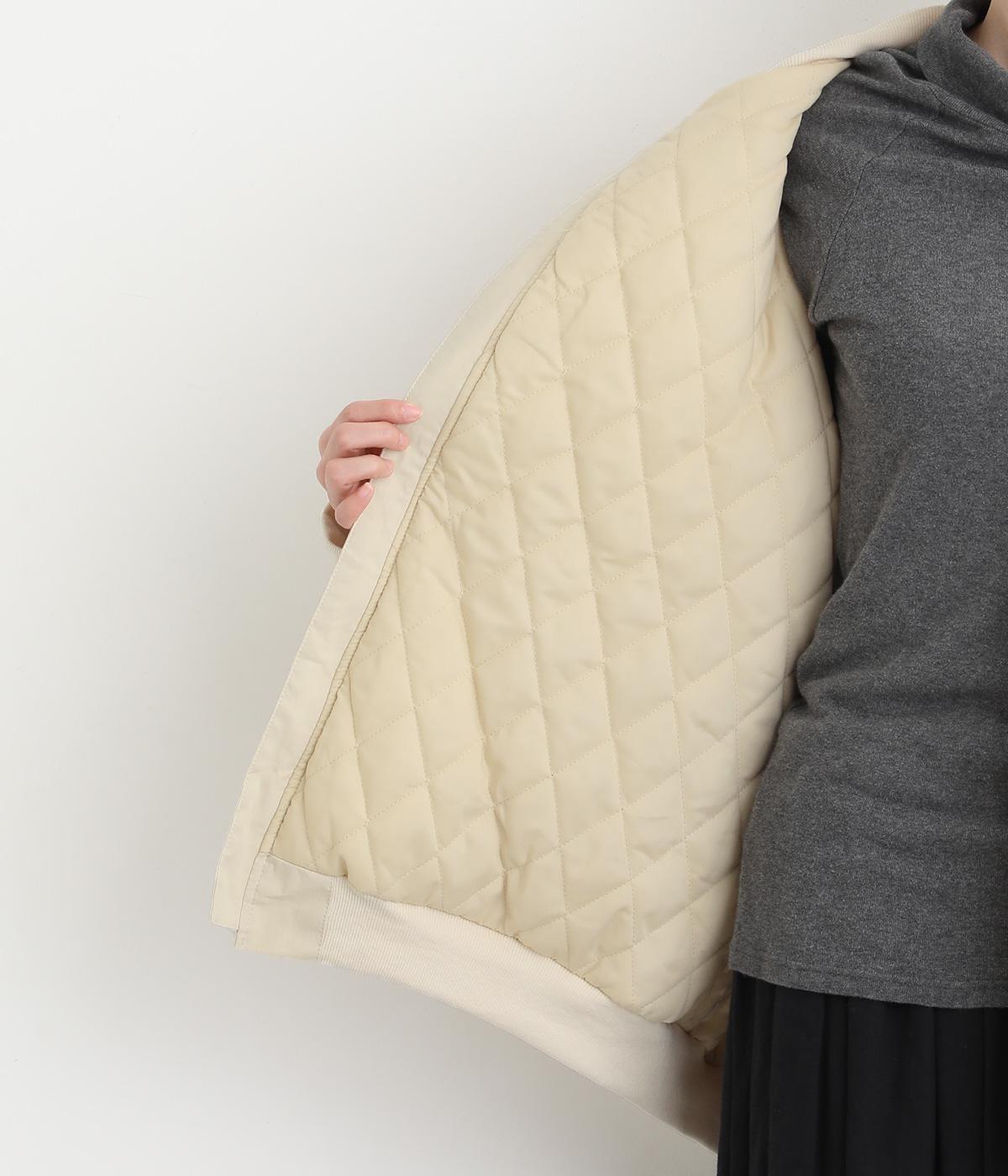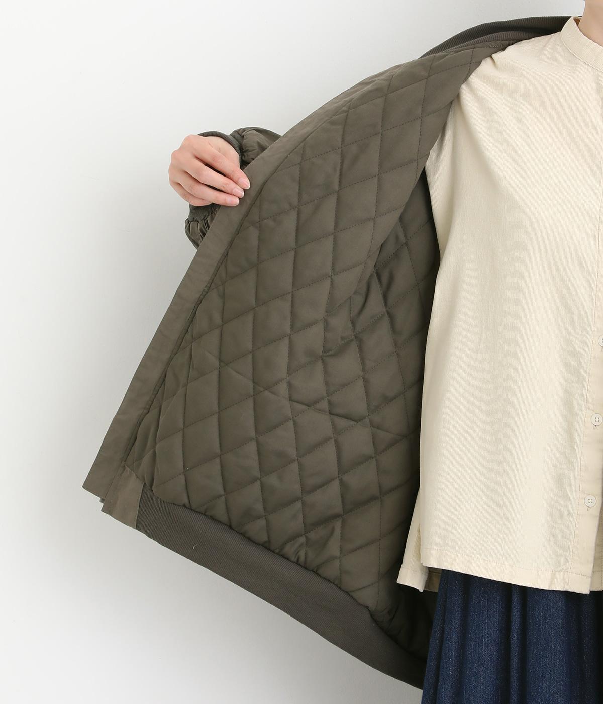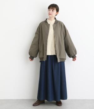 自然なシワ感でさらりとした手ざわりのコットン混生地です。裏地はダイヤ柄のキルティングであたたかな着心地。中綿入りでふんわりとしたボリュームながら750gと軽やかに仕立てました。