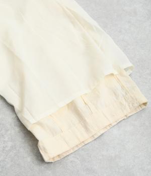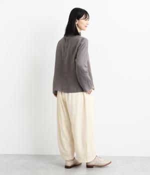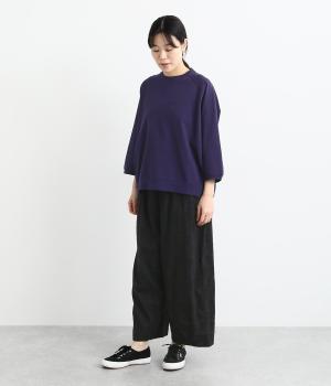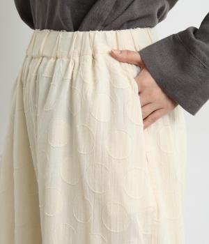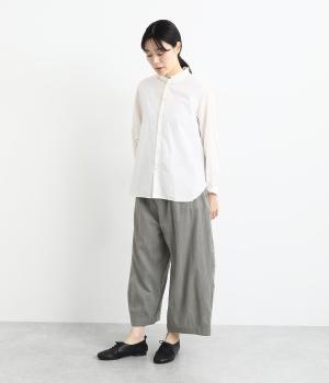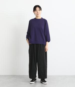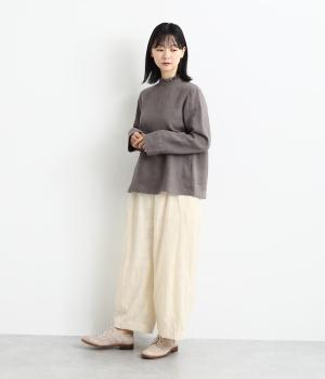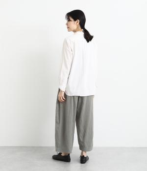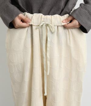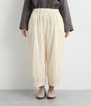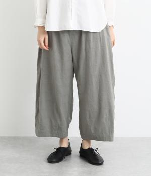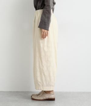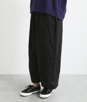 リラックス感たっぷりのワイドパンツ。裾にタックを施し、すっきりとしたコクーンシルエットに仕上げています。ウエストは総ゴム仕様で、内側のヒモで調整も可能。シンプルなトップスに合わせるだけでこなれ感のある装いが完成します。