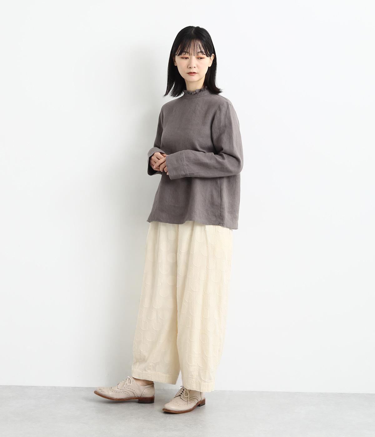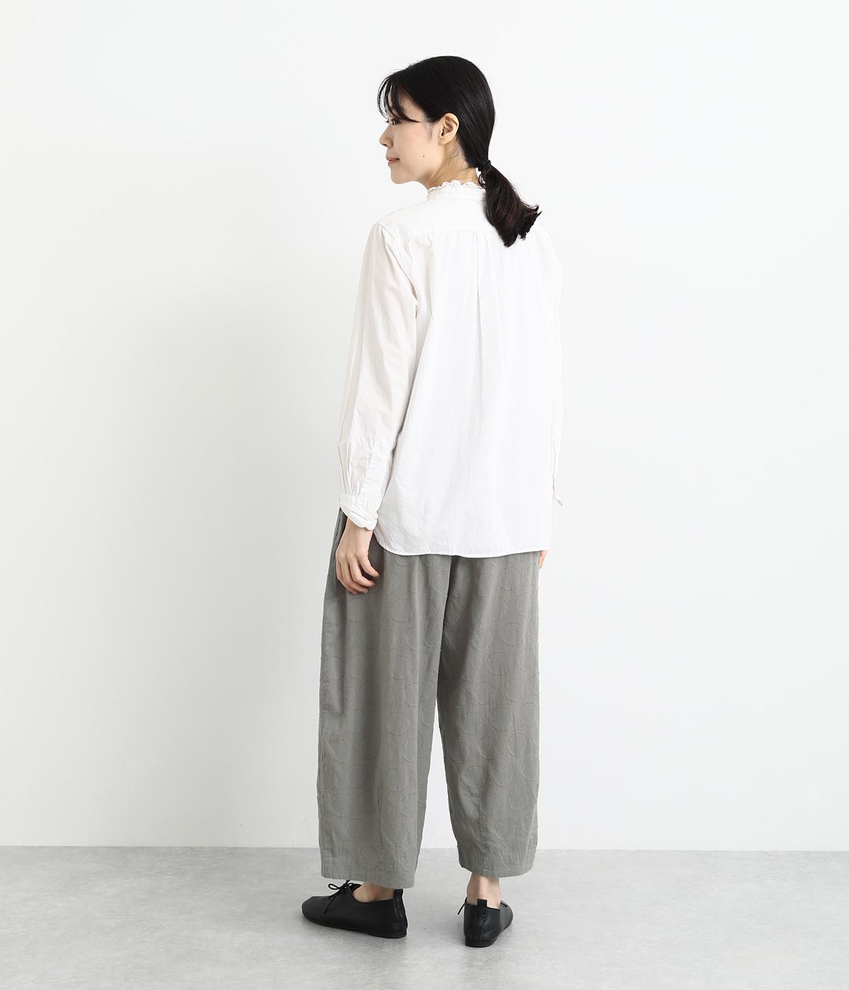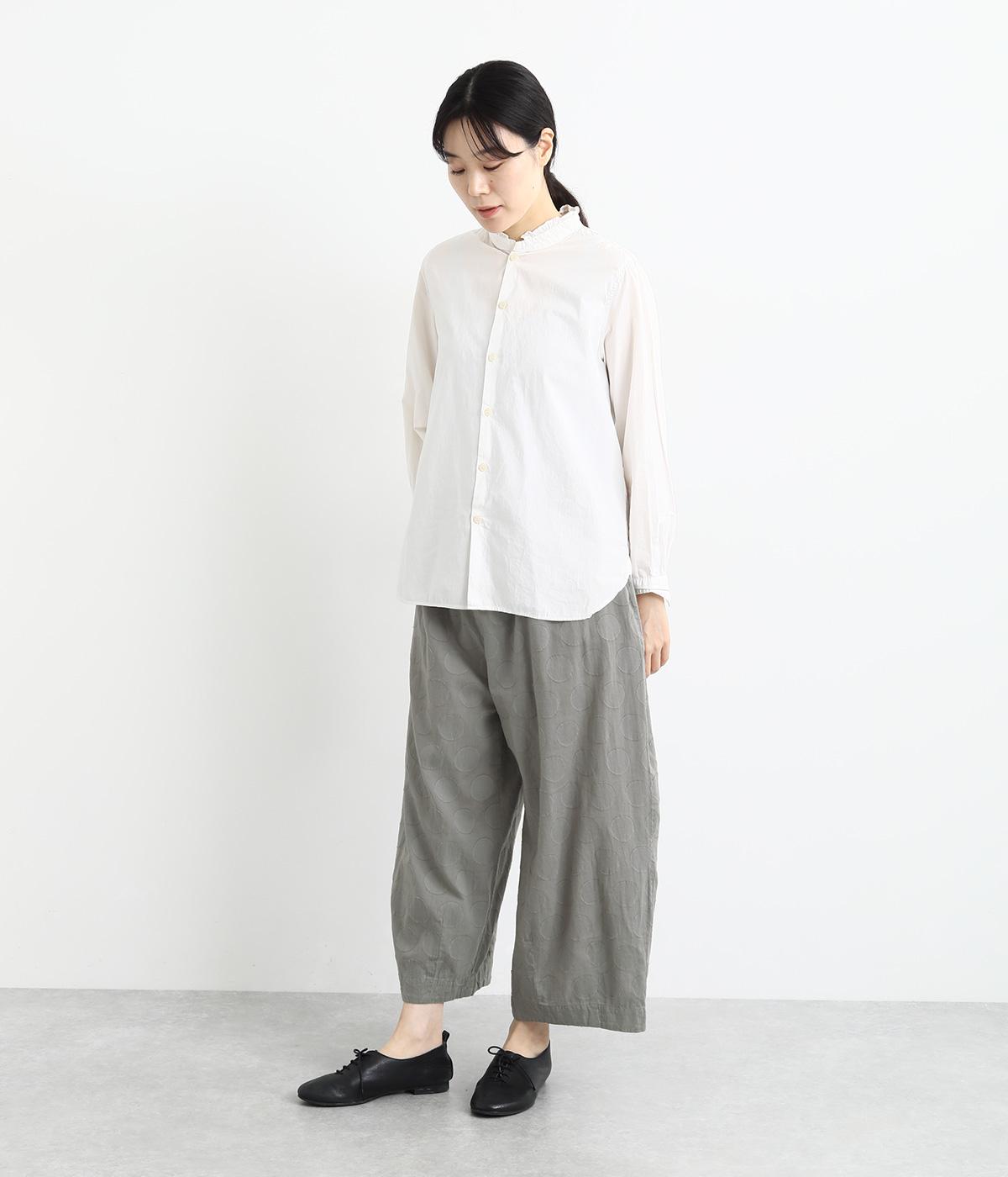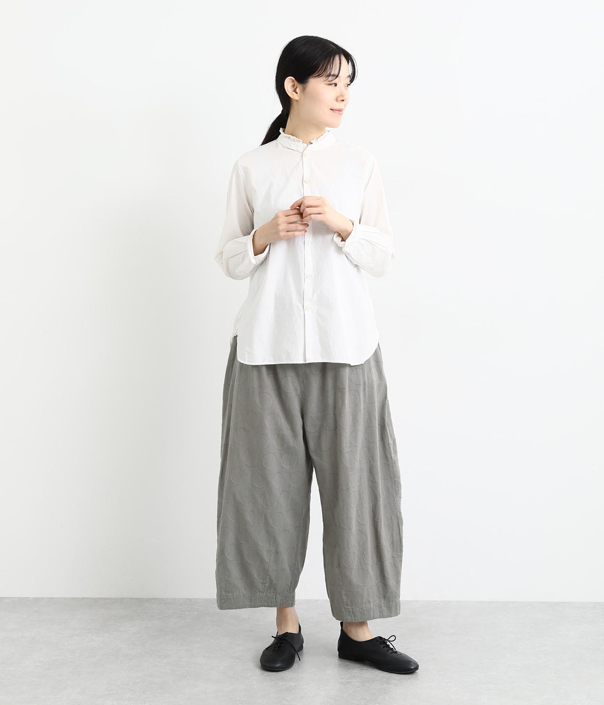 やや薄手でやわらかな風合いのコットン生地を使用。ドビー織りで表現されたドット柄はプリントほど主張しすぎず、着こなしにやさしくなじみます。