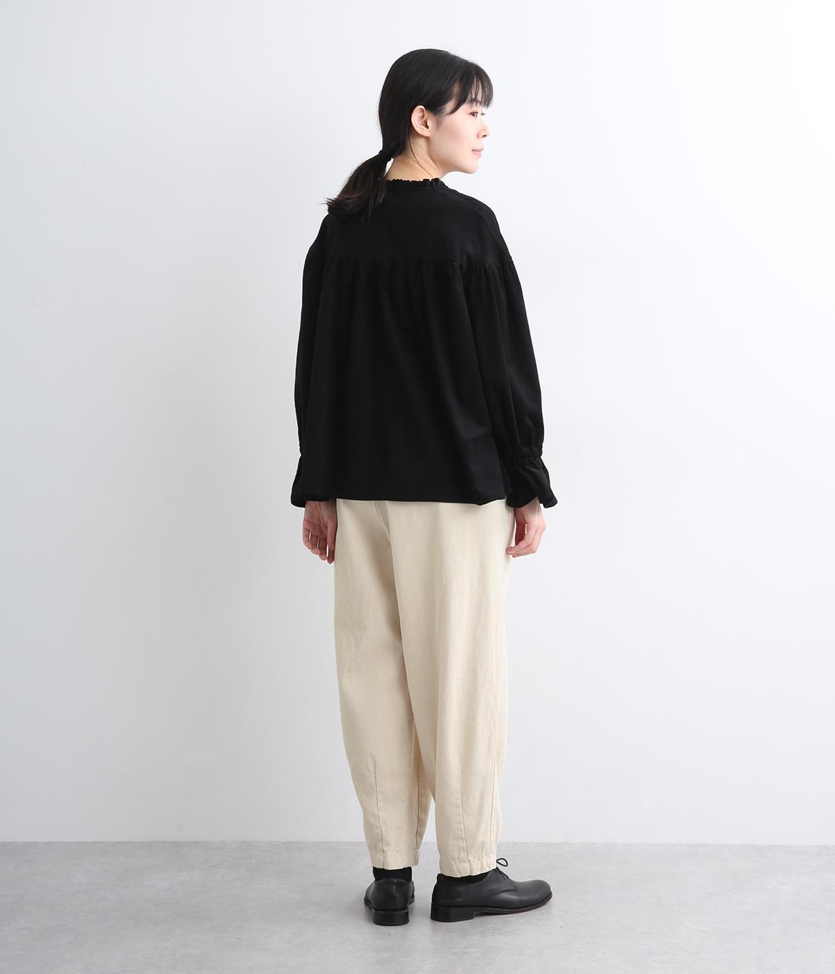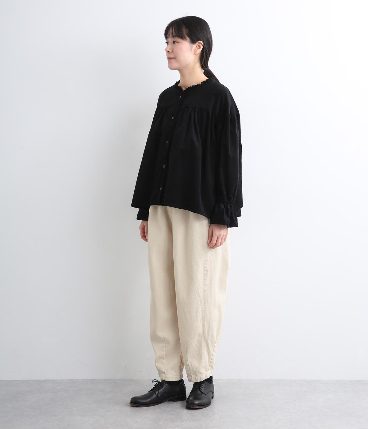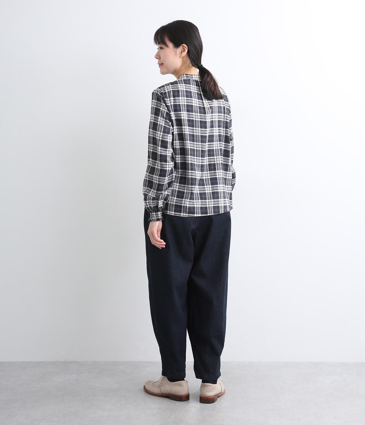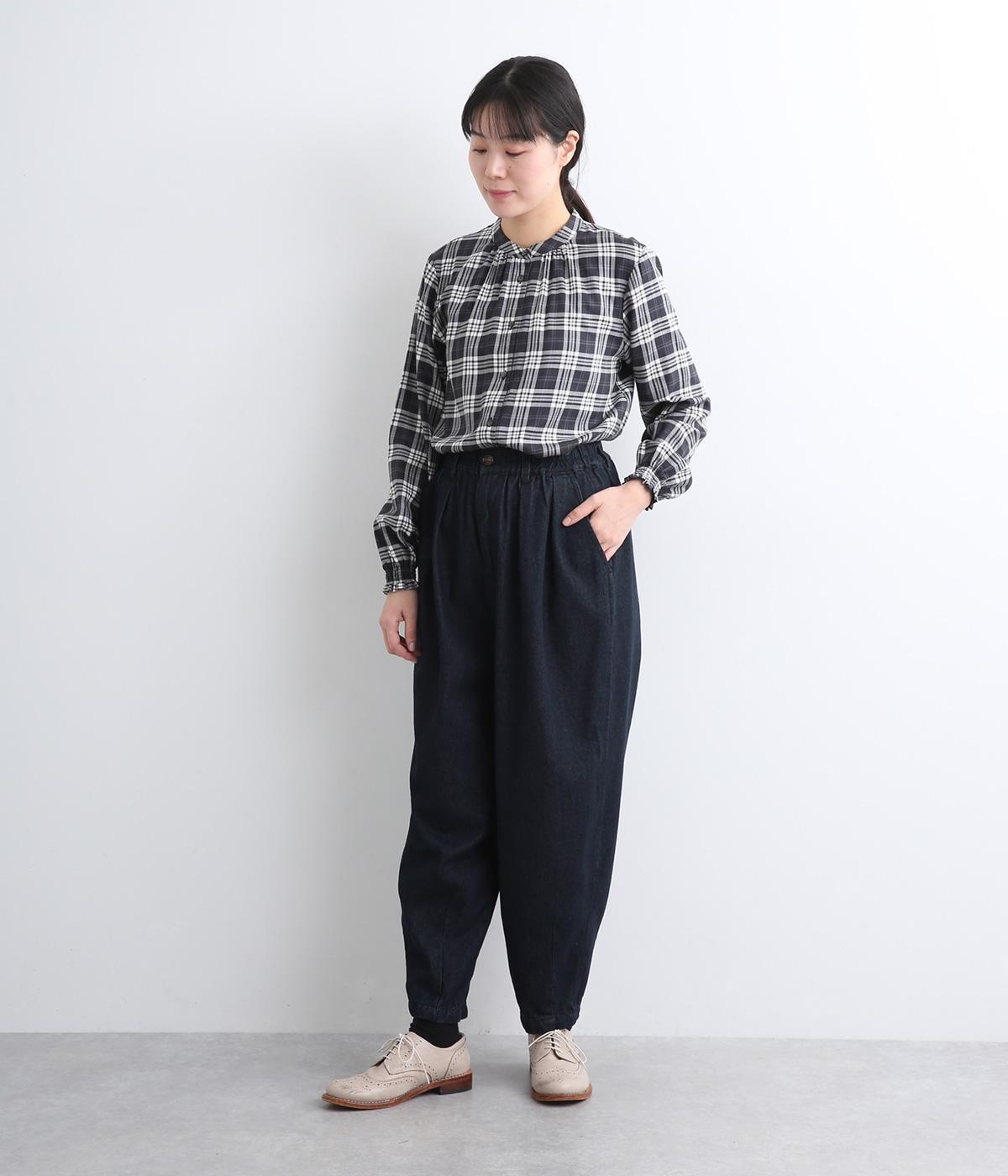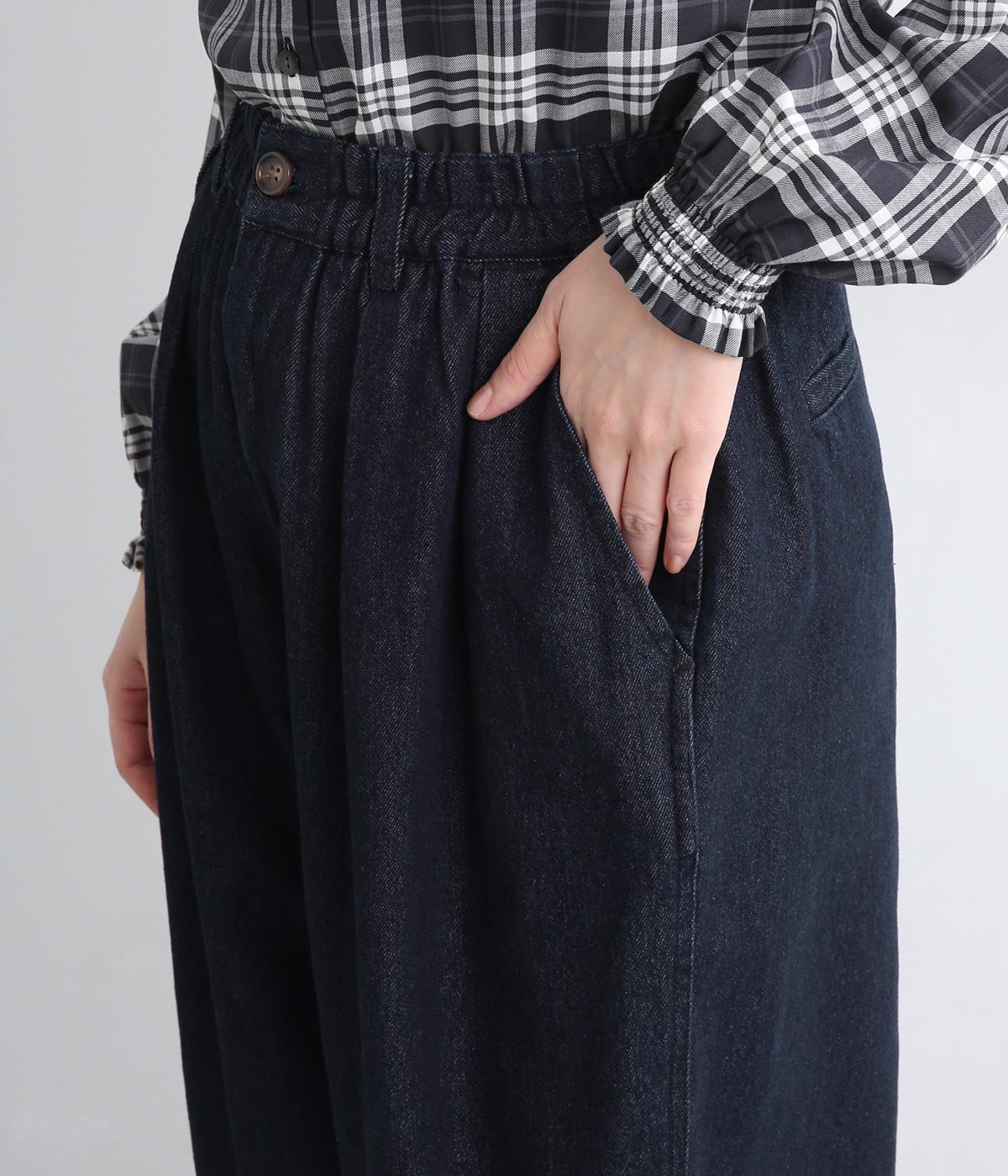 ほどよく肉厚な11オンスのコットン混デニム生地で仕立てました。しっかりとした生地感ながら、着るごとに柔らかく肌になじみます。