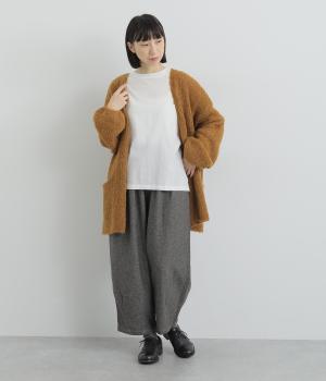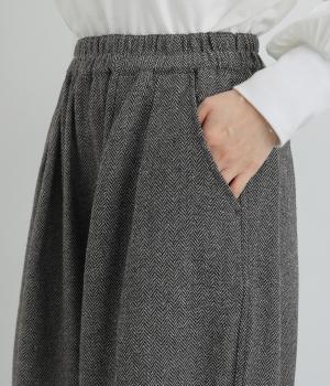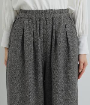 あたたかみのある起毛感が特徴の軽くて柔らかなヘリンボーン生地で仕立てています。イージーな着用感ながらも、特徴的な織り柄が上品なムードを演出。厚手すぎないので、秋口から長く着用しやすいのも魅力です。