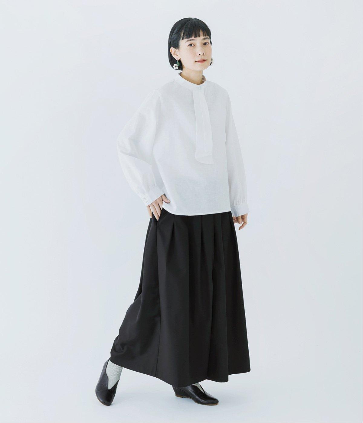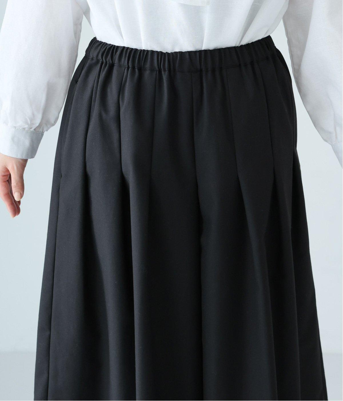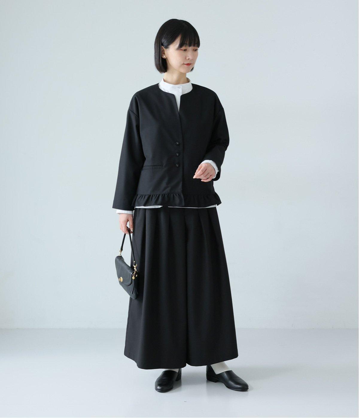 歩くたびに揺れる裾が、さりげなく印象的。サージ素材のしっかりとした生地感で、裏地がなくても安心して着用できます。