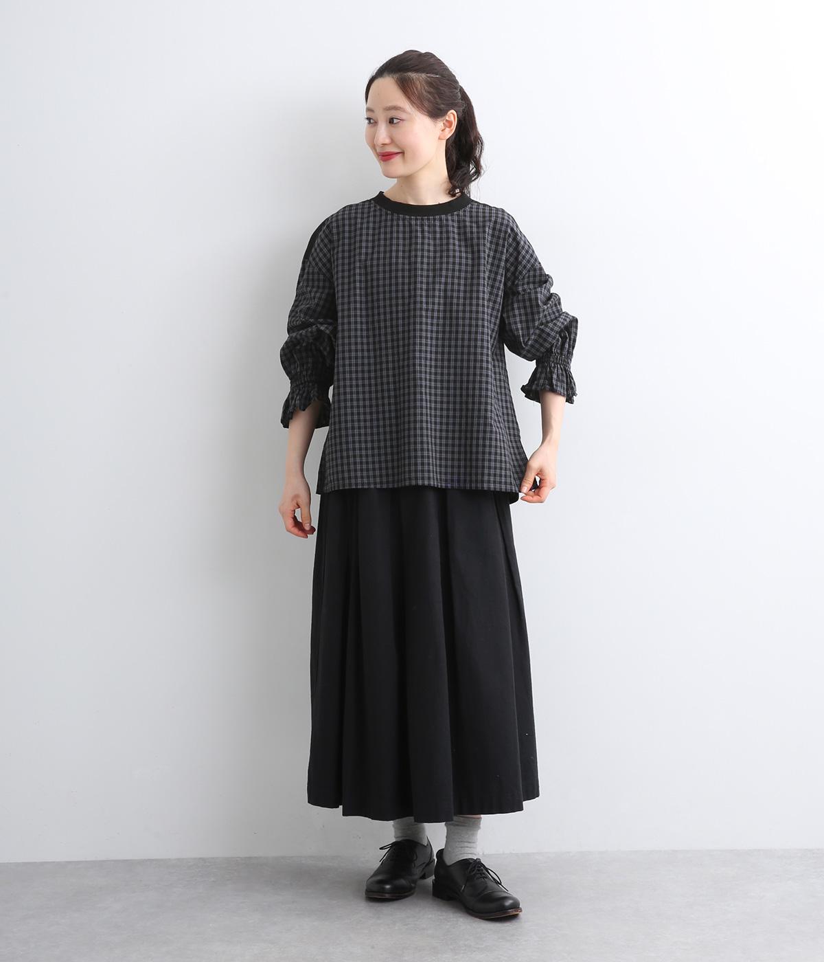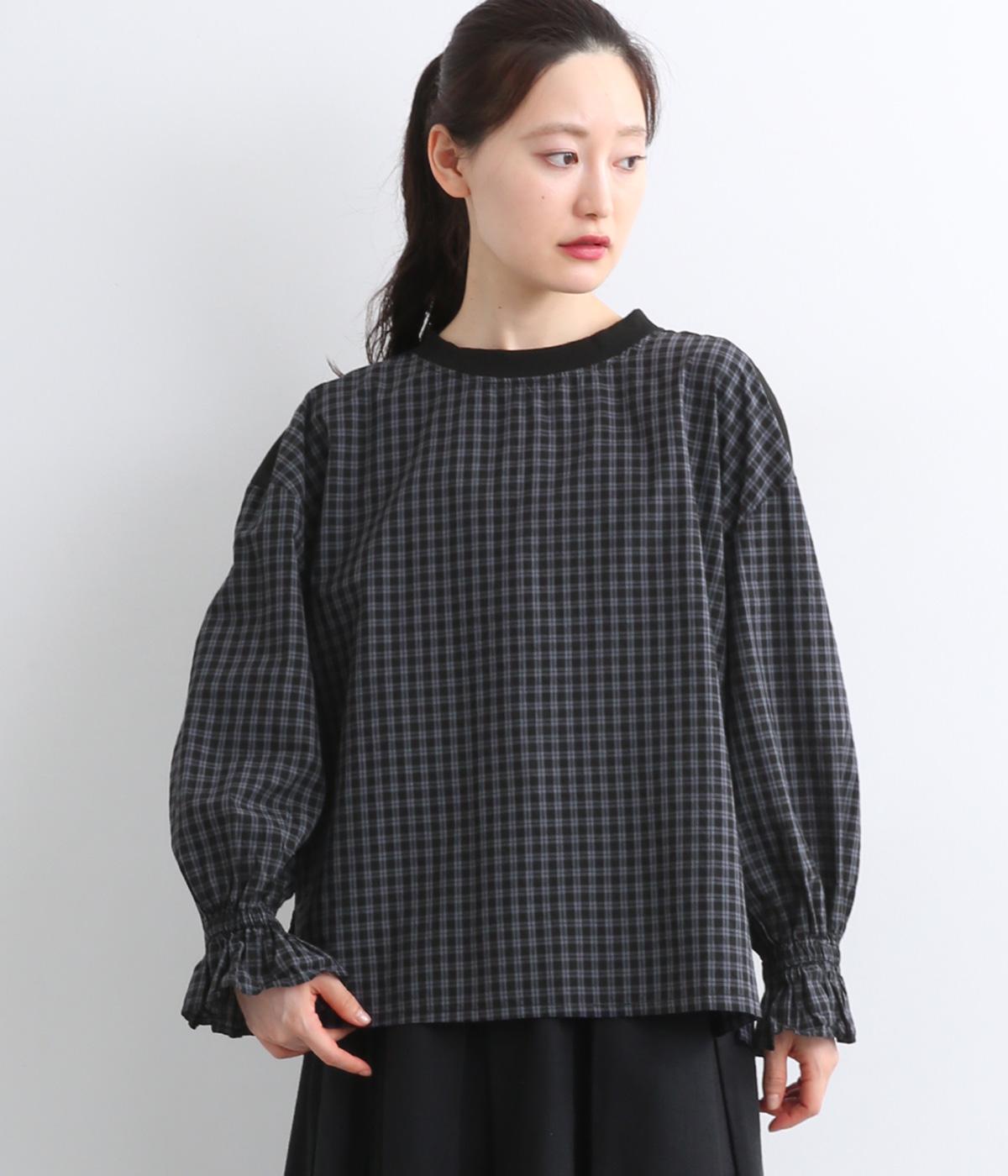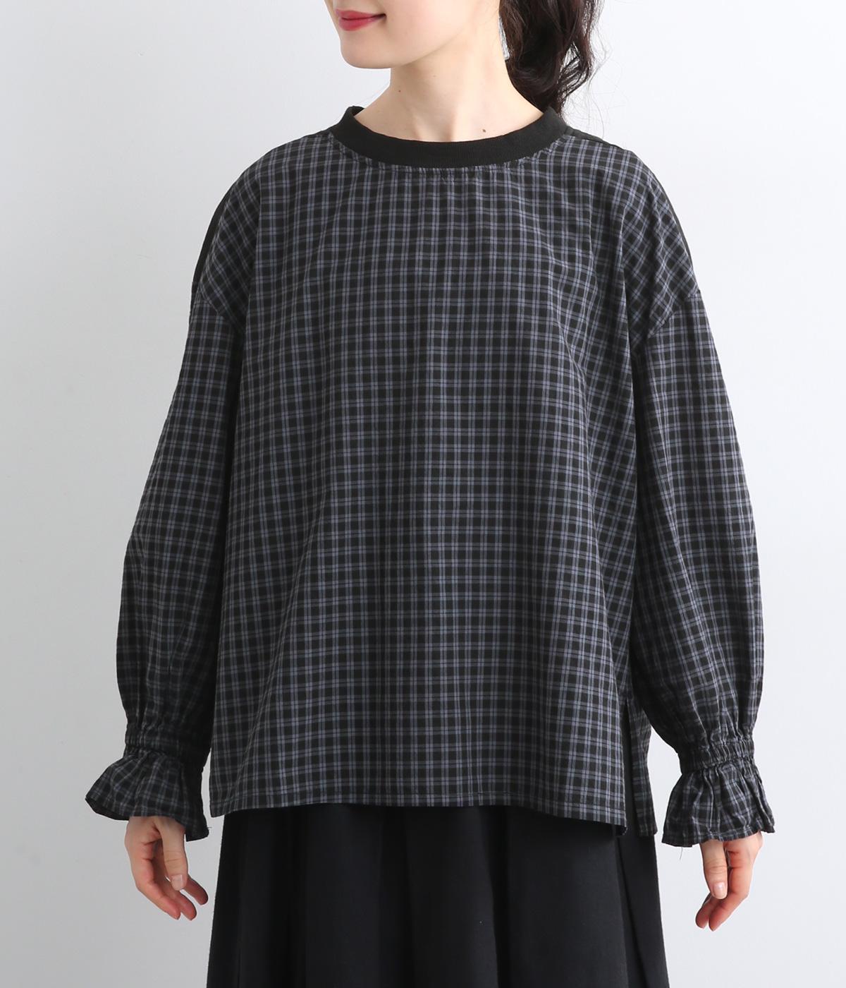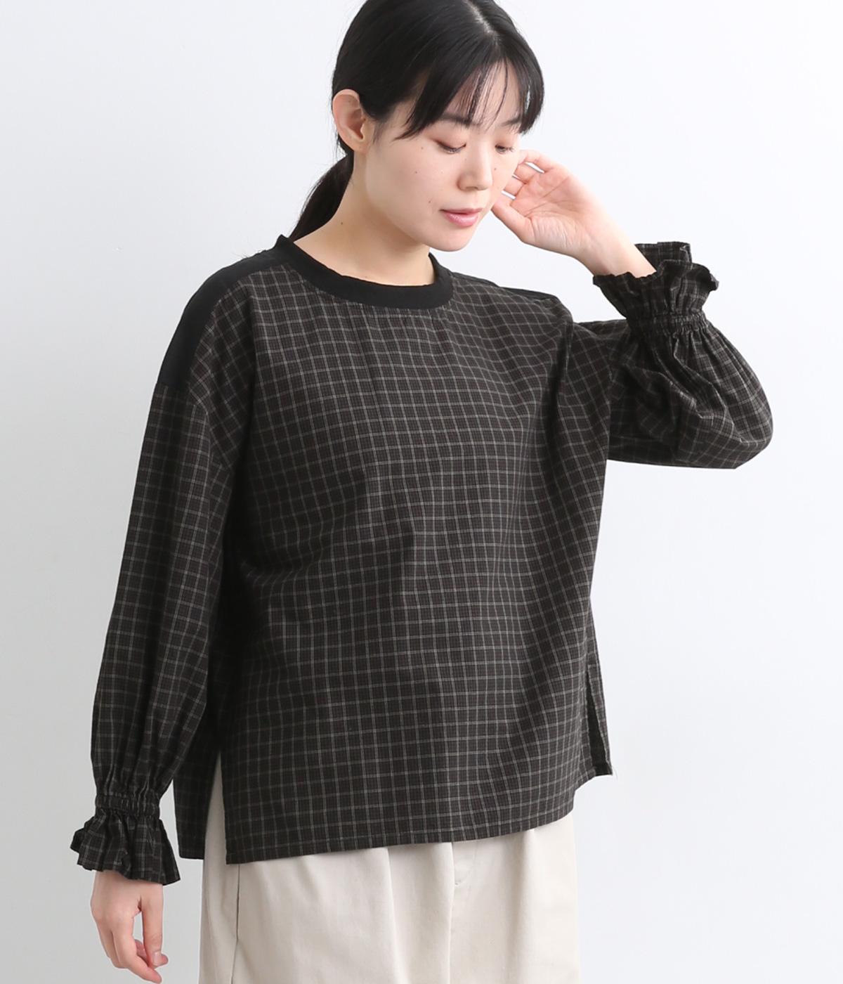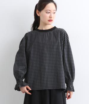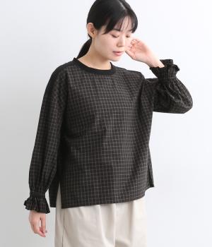 落ち着いたカラーリングのチェック柄が大人顔なプルオーバー。ワイドなシルエットとフリルの袖でさりげなく柔らかさ、女性らしさをプラス。両サイドの裾にはスリット入りで、抜け感のある着こなしが叶います。