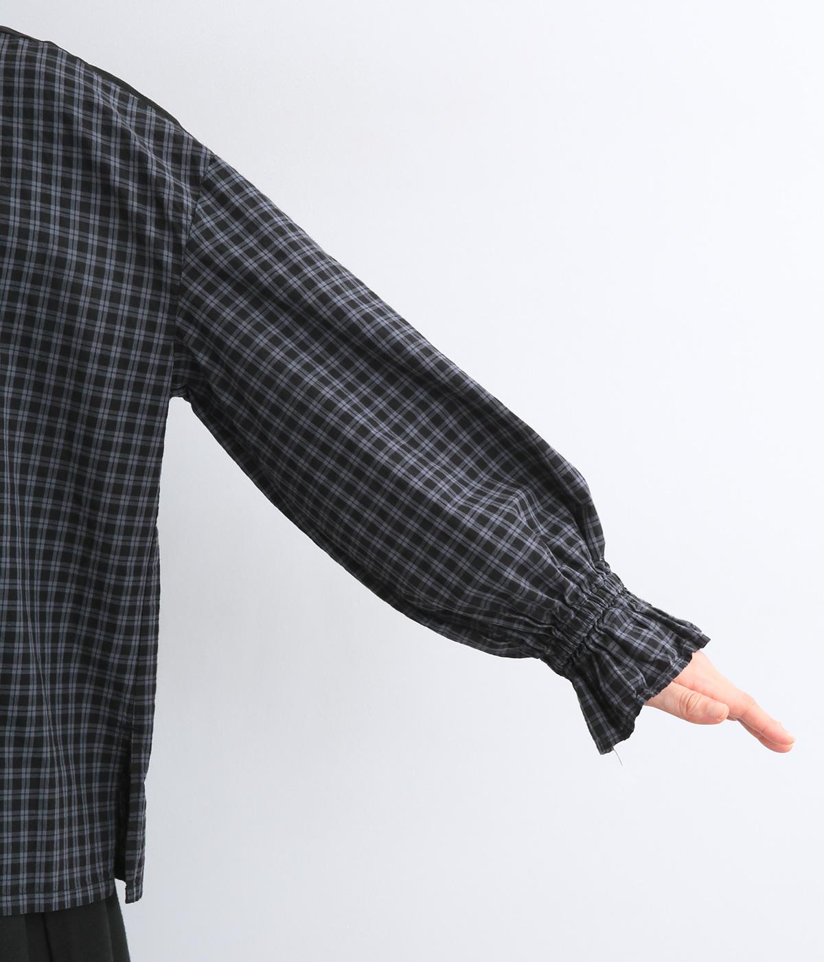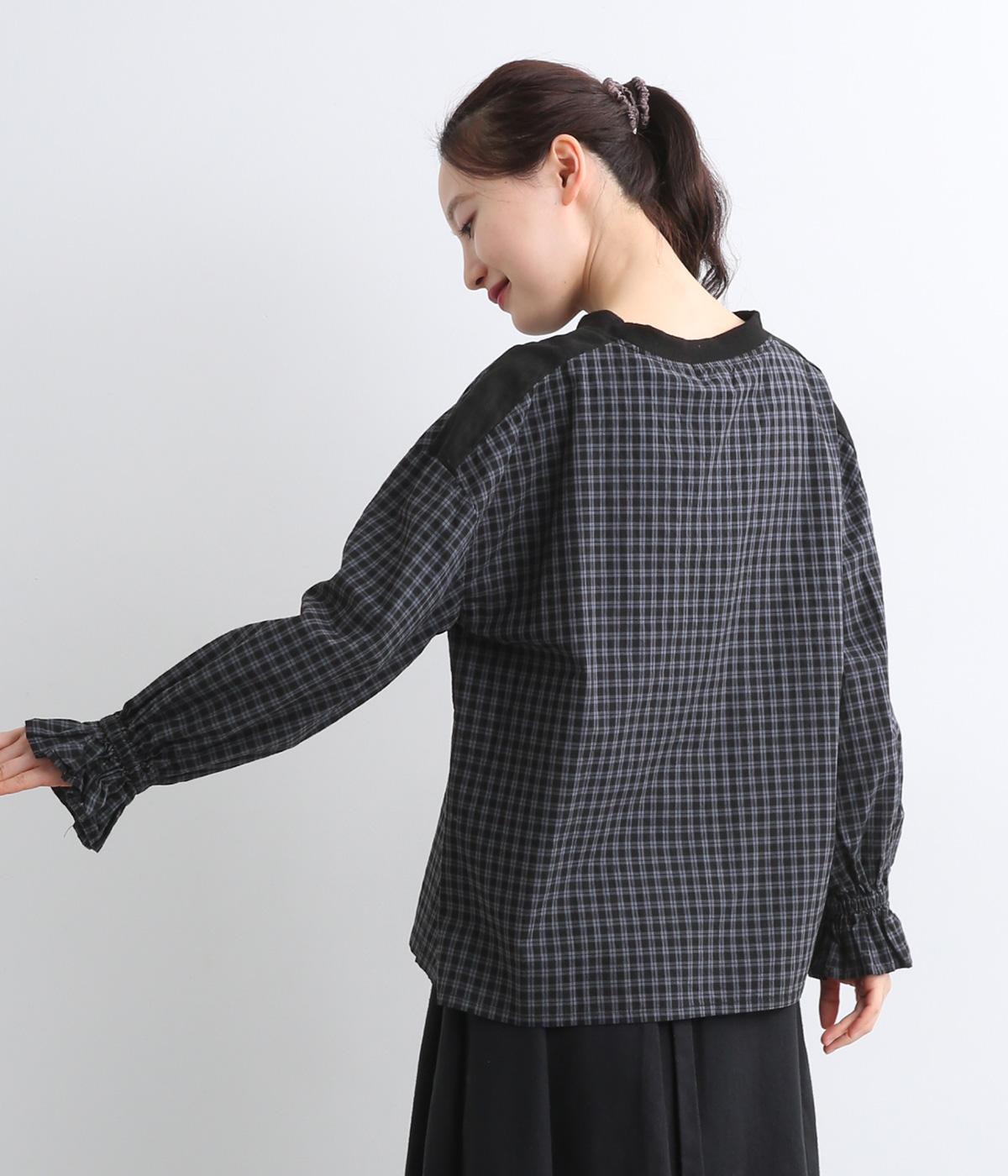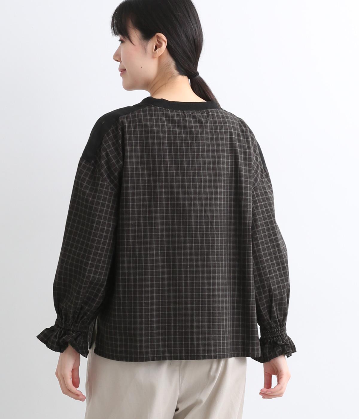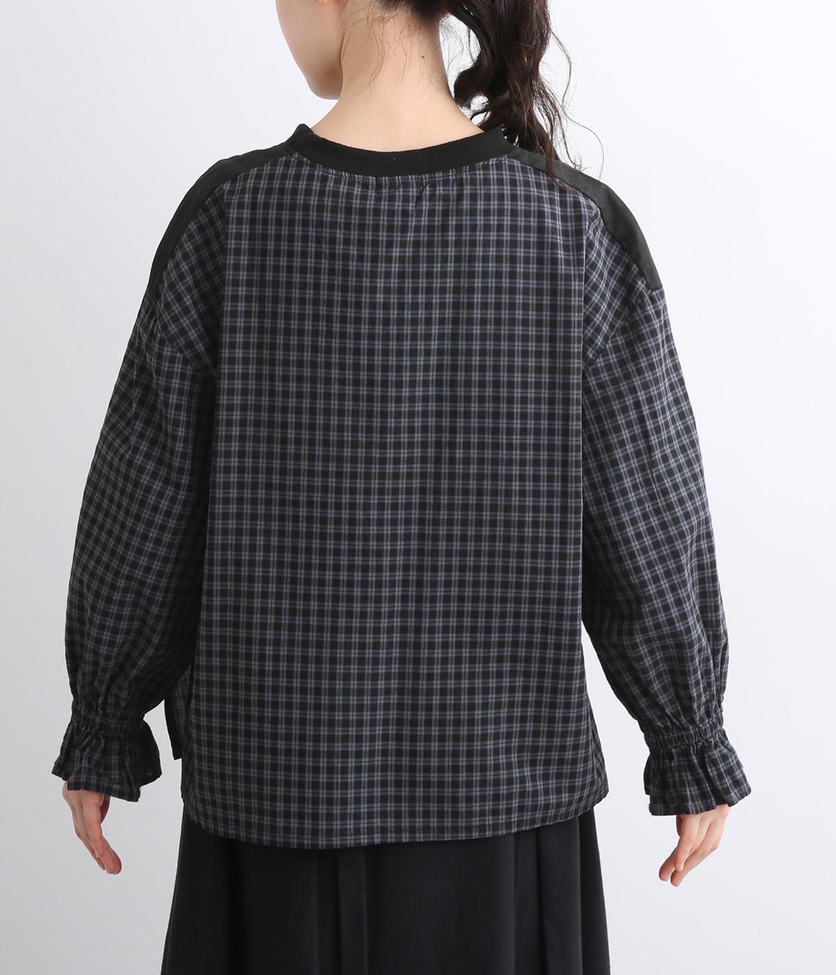 さらりとした肌触りで、快適に着られるコットンチェック生地。首もとはリブ、肩部分には無地リネン生地を切り替え、アクセントになっています。