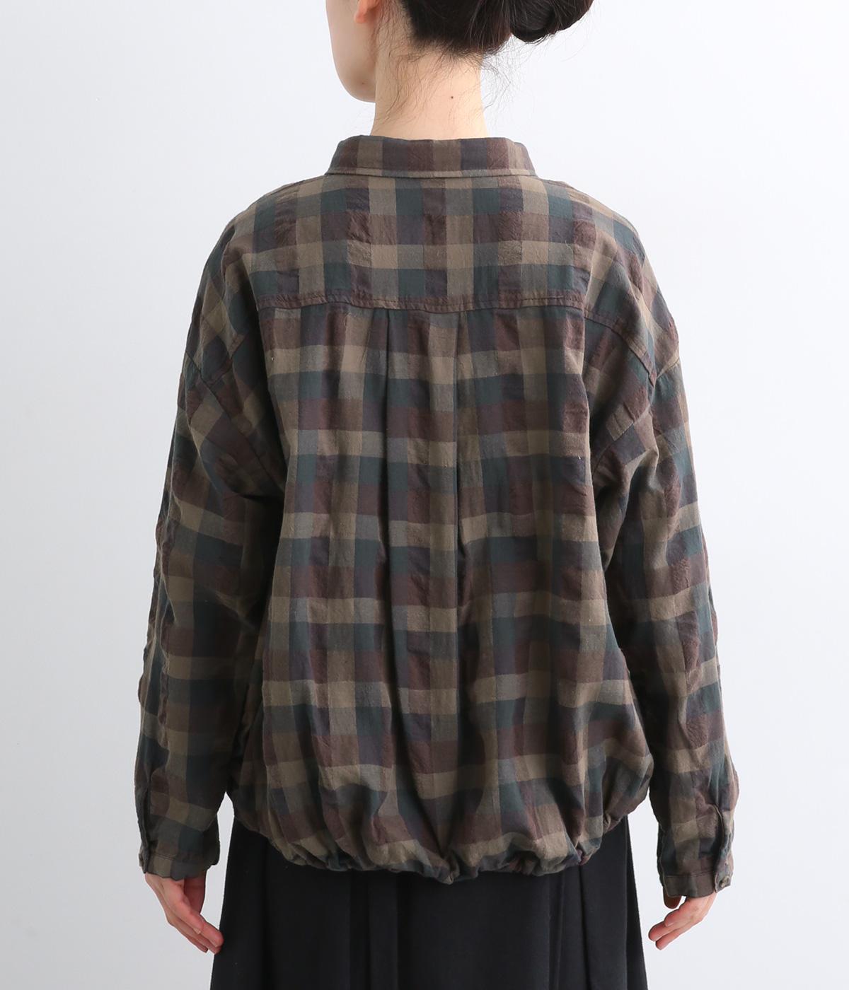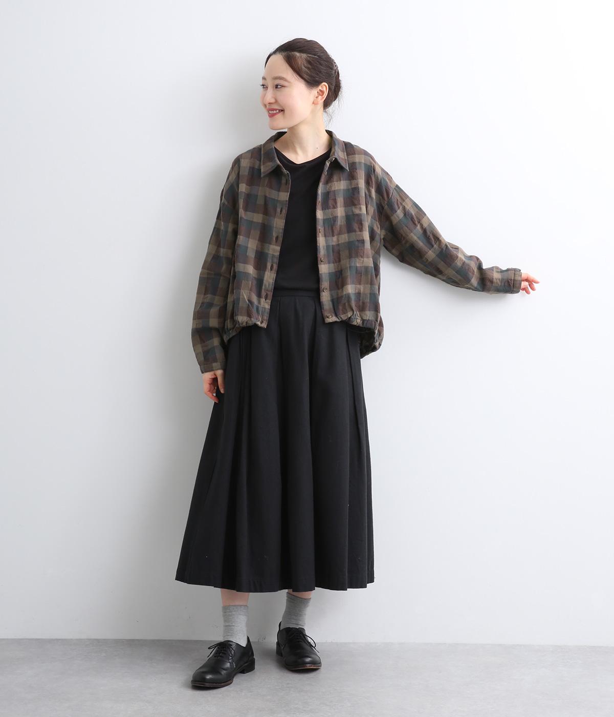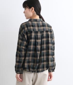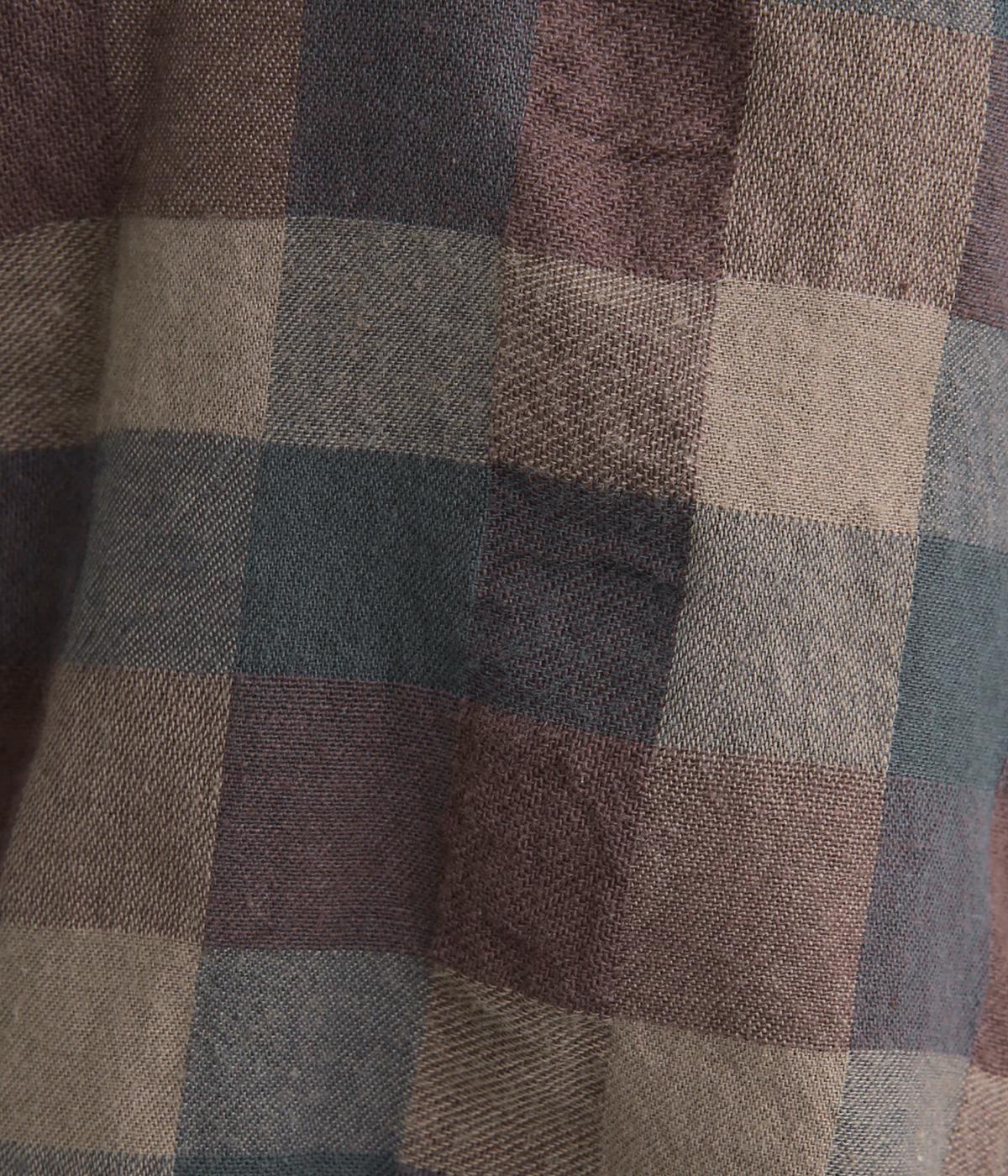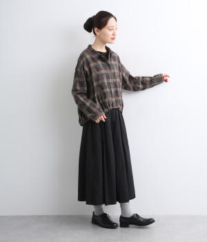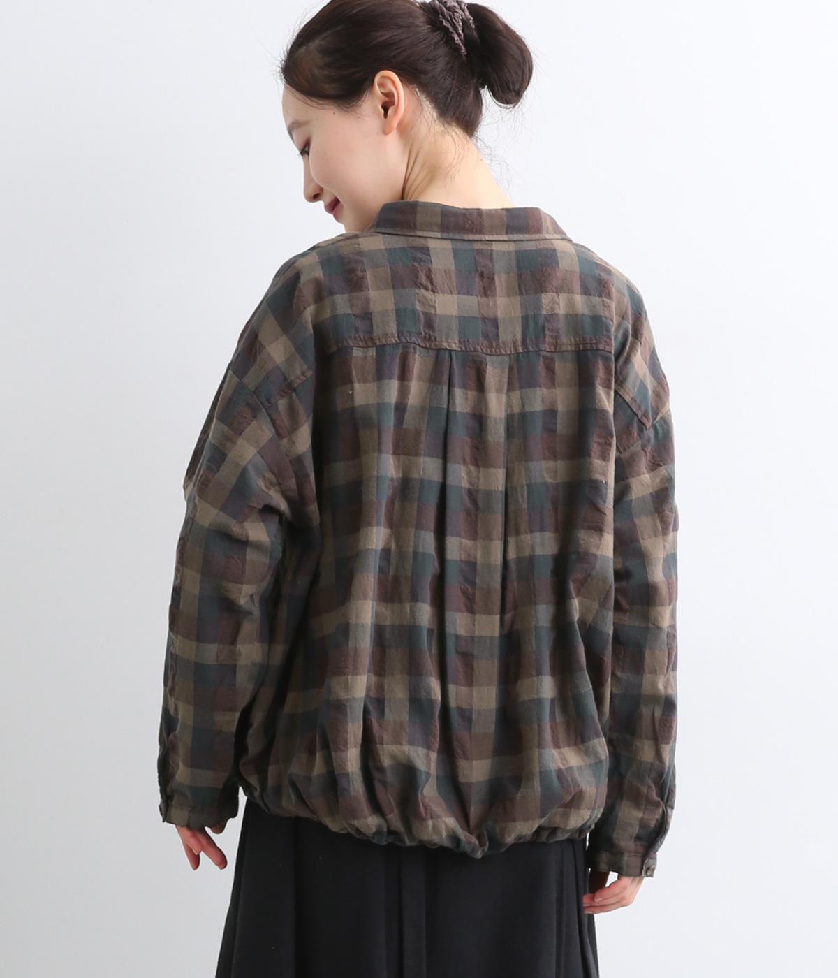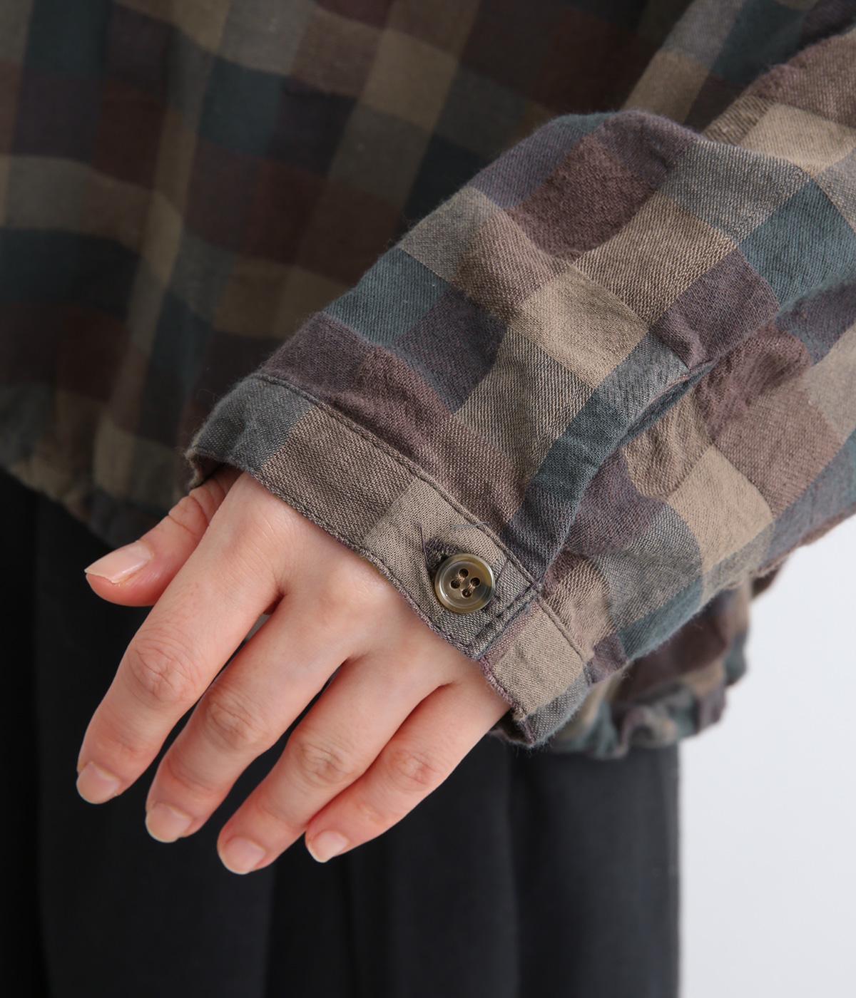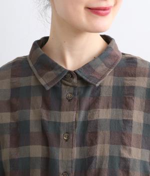 くすみがかったナチュラルな色合いのチェック柄。ふんわりライトな着心地のコットンリネン生地で、ロングシーズン着ていただけます。