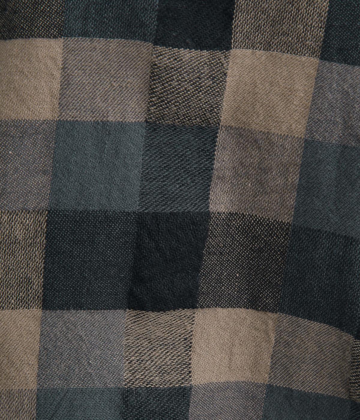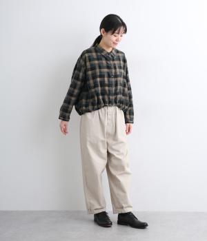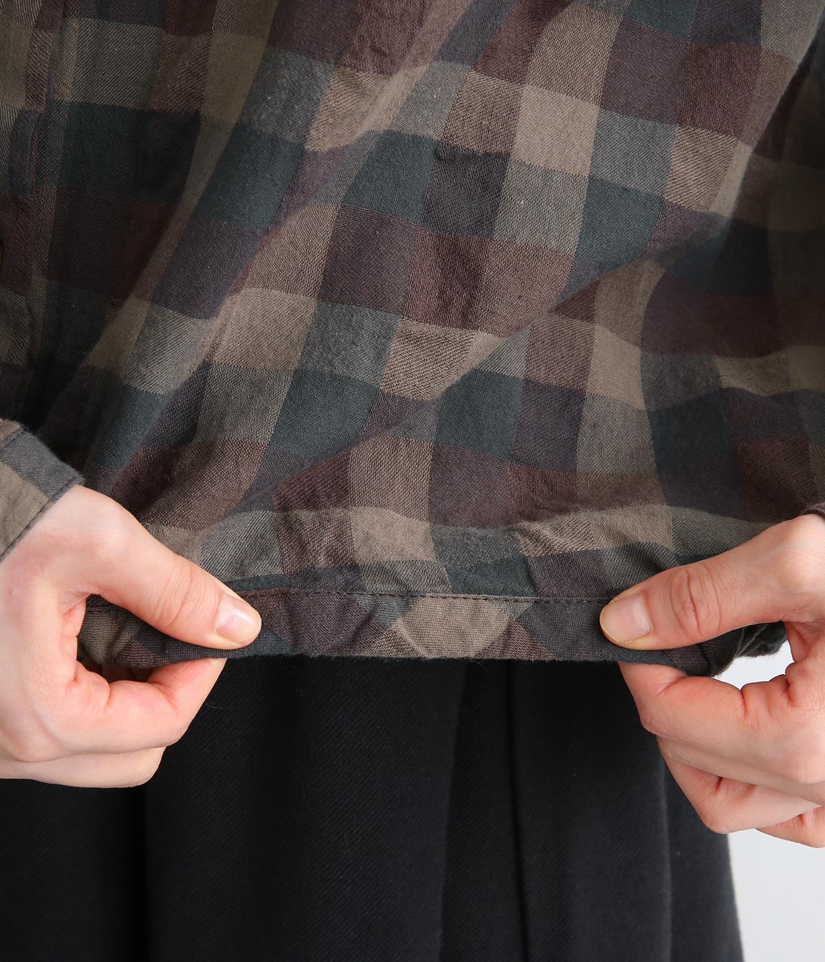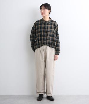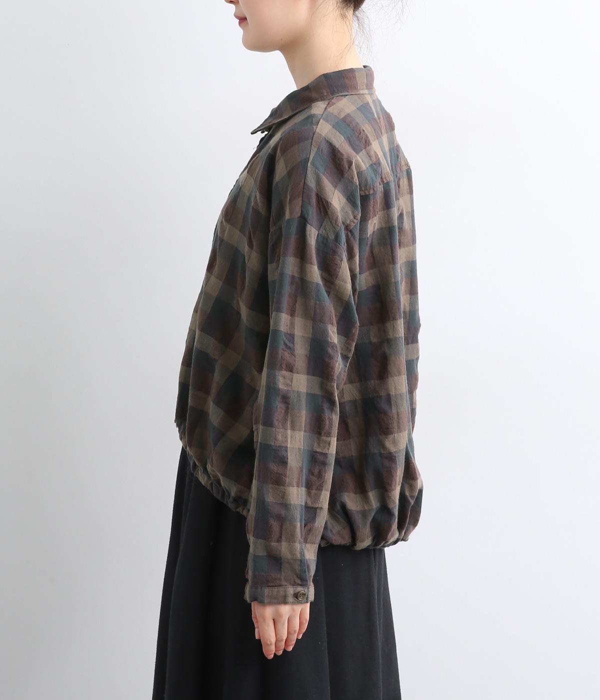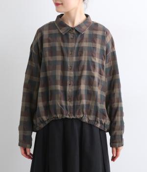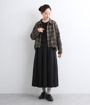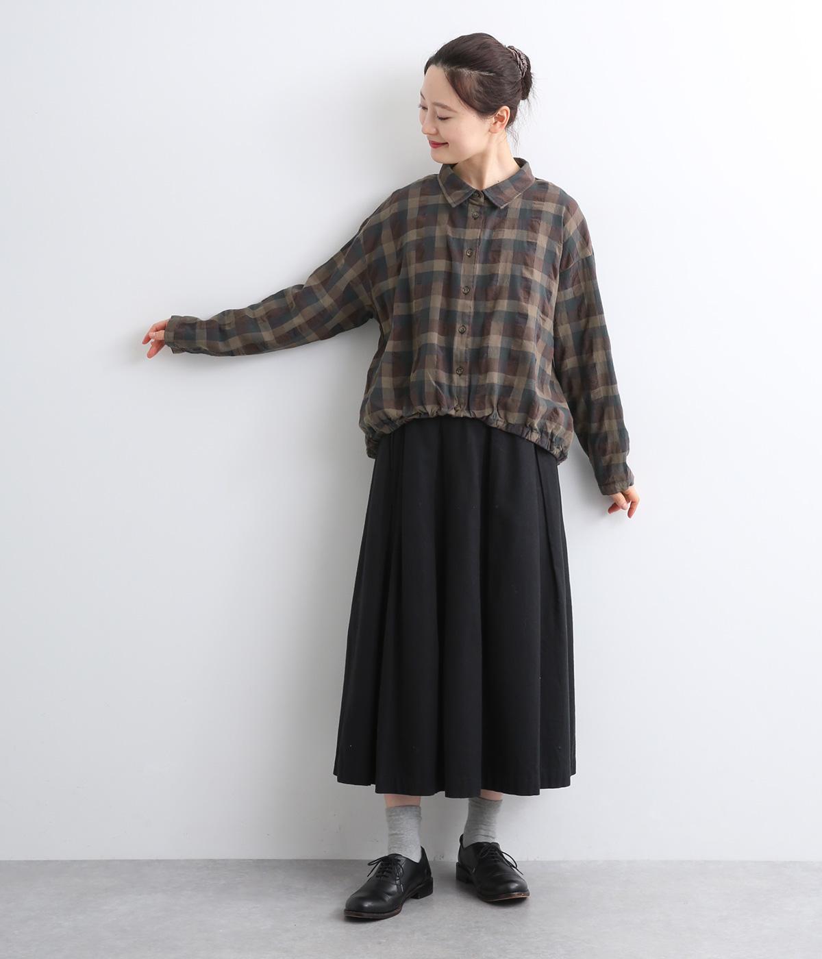 くすみがかったナチュラルな色合いのチェック柄。ふんわりライトな着心地のコットンリネン生地で、ロングシーズン着ていただけます。