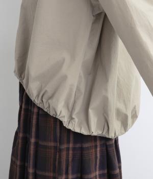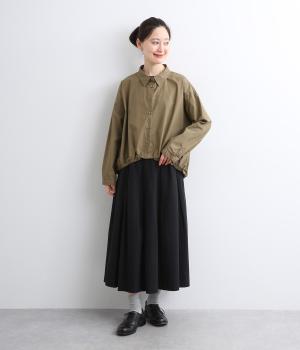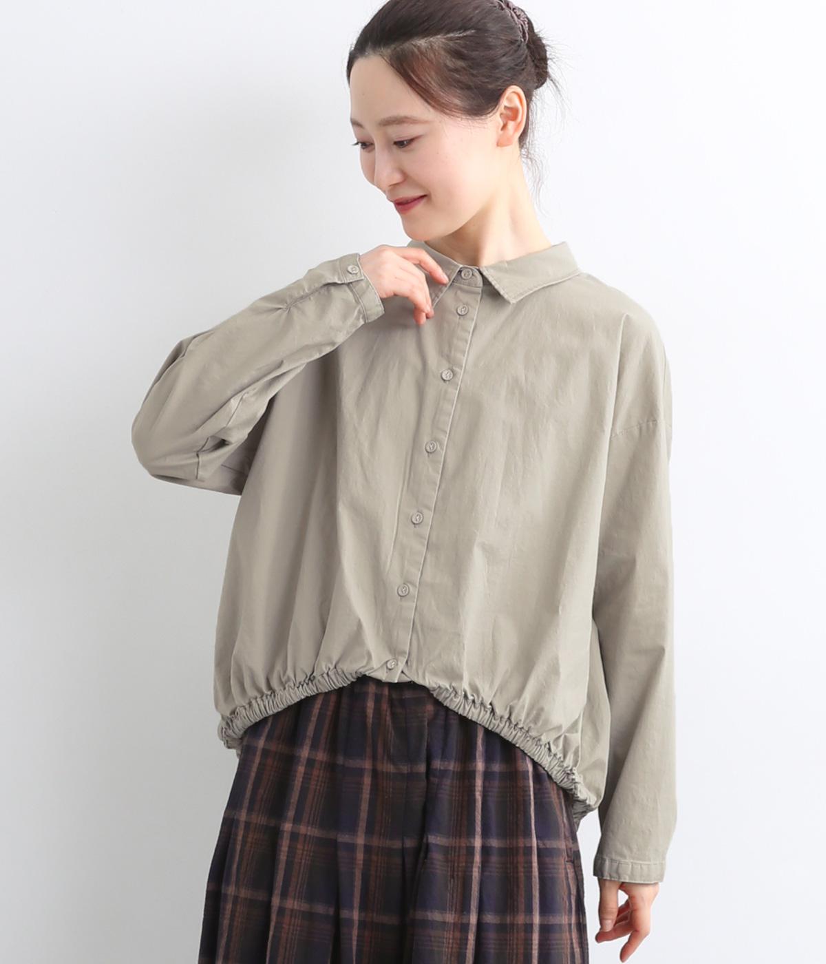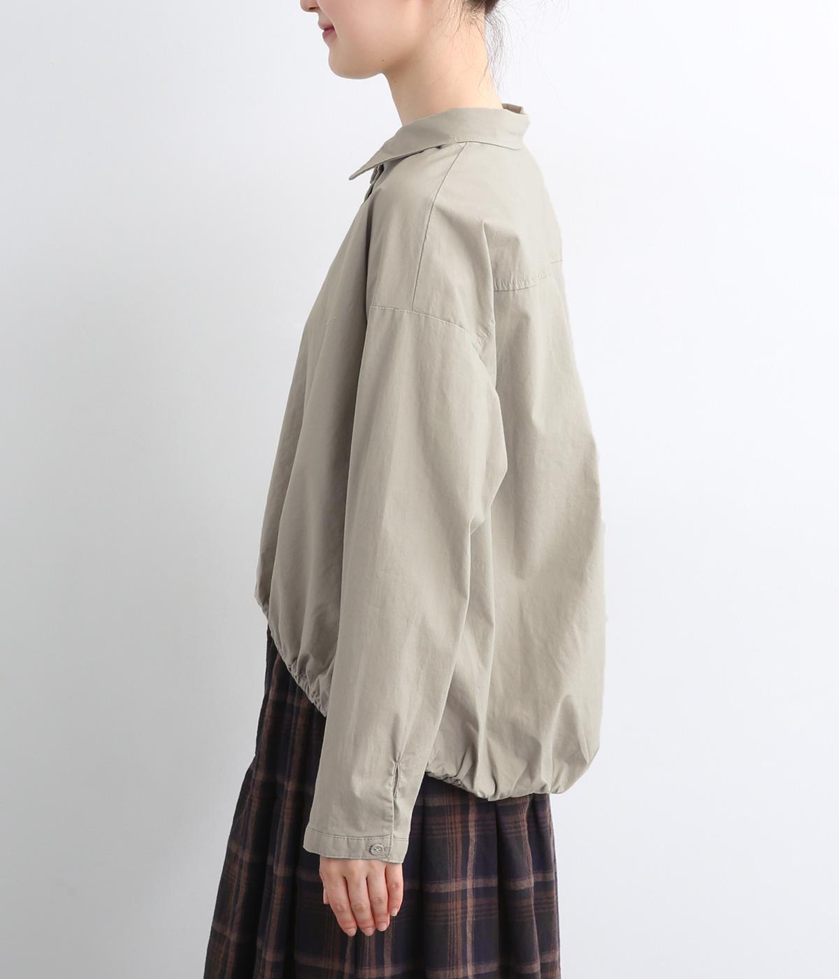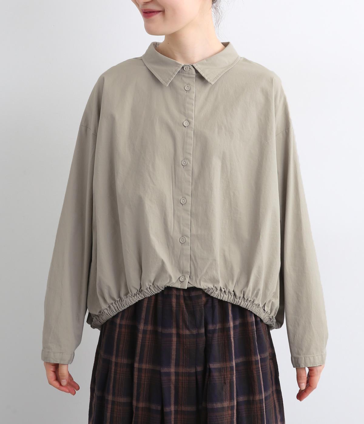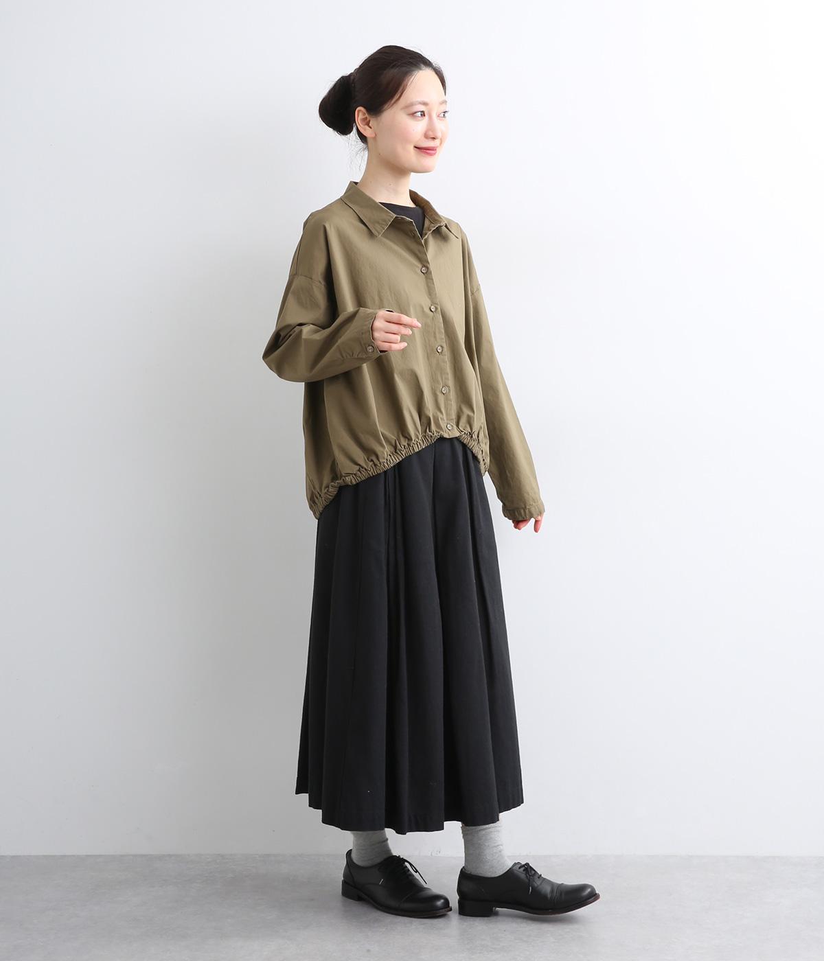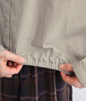 裾ゴム入りで、ぽわんと丸みあるシルエットが愛らしいシャツジャケット。ボタンは共布のくるみボタンになっており、ナチュラルさとクラフト感を演出しました。ほどよくコンパクトな丈感で、ボリュームのあるボトムとも好相性です。