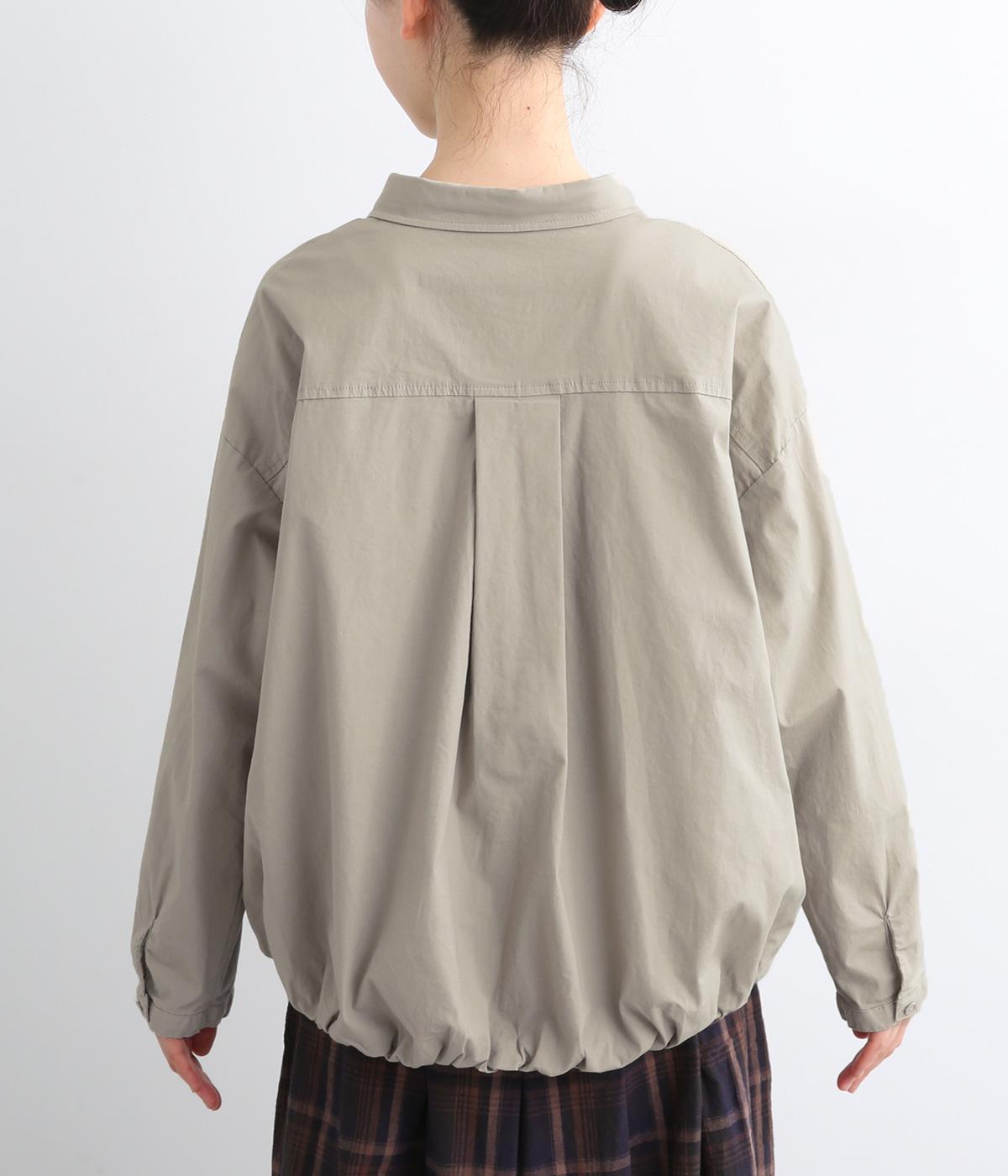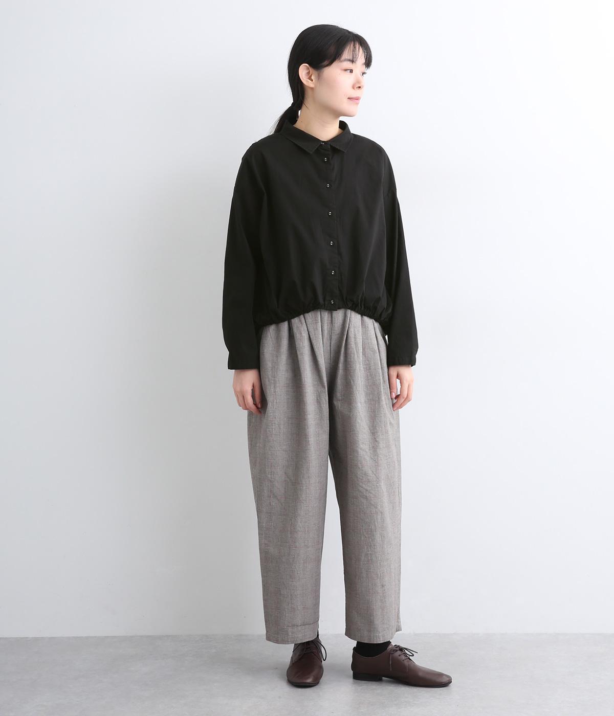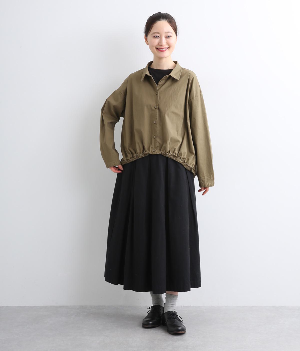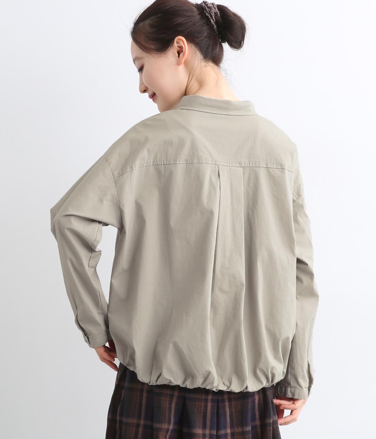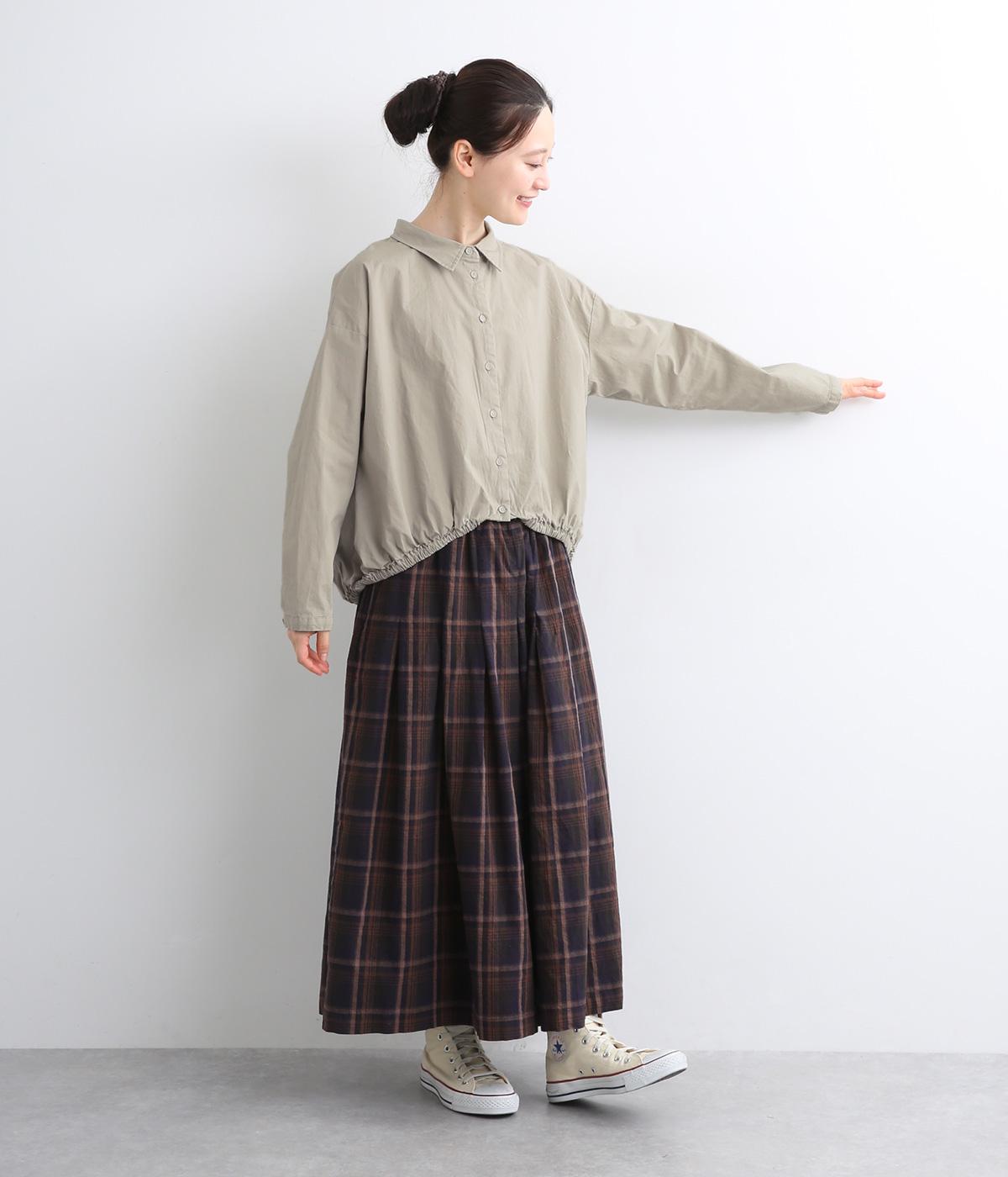 裾ゴム入りで、ぽわんと丸みあるシルエットが愛らしいシャツジャケット。ボタンは共布のくるみボタンになっており、ナチュラルさとクラフト感を演出しました。ほどよくコンパクトな丈感で、ボリュームのあるボトムとも好相性です。
