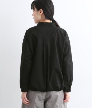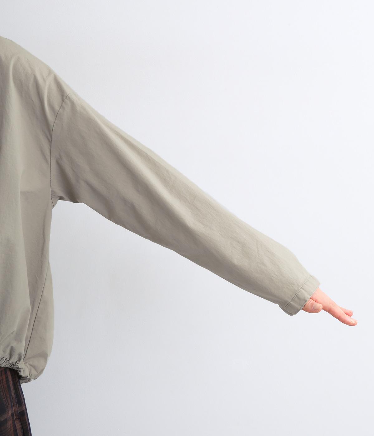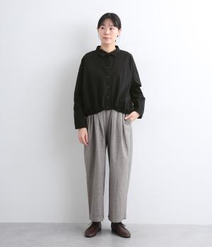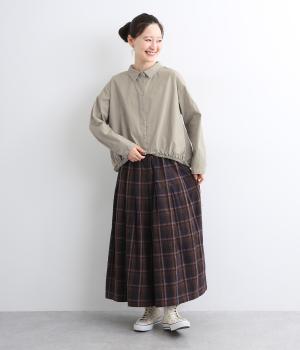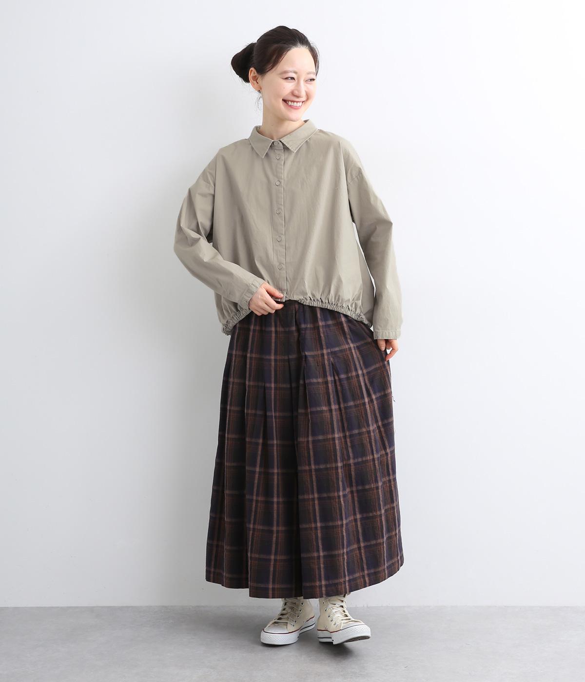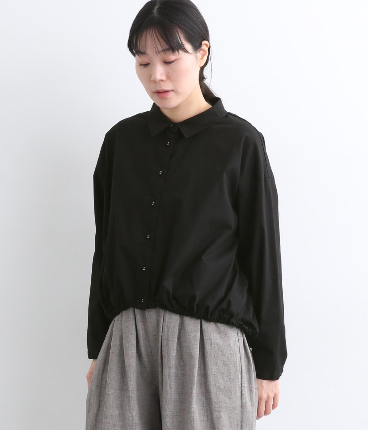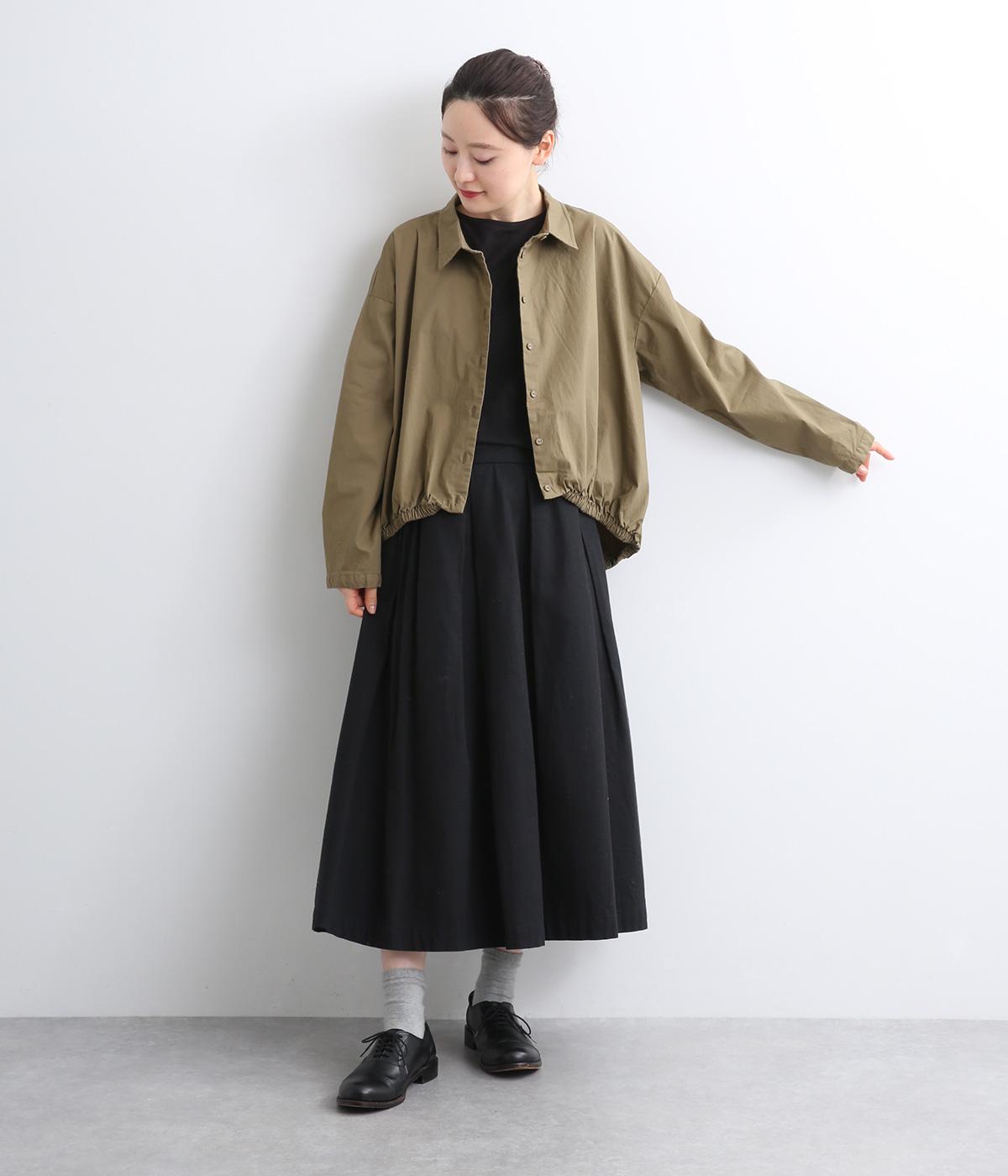 裾ゴム入りで、ぽわんと丸みあるシルエットが愛らしいシャツジャケット。ボタンは共布のくるみボタンになっており、ナチュラルさとクラフト感を演出しました。ほどよくコンパクトな丈感で、ボリュームのあるボトムとも好相性です。