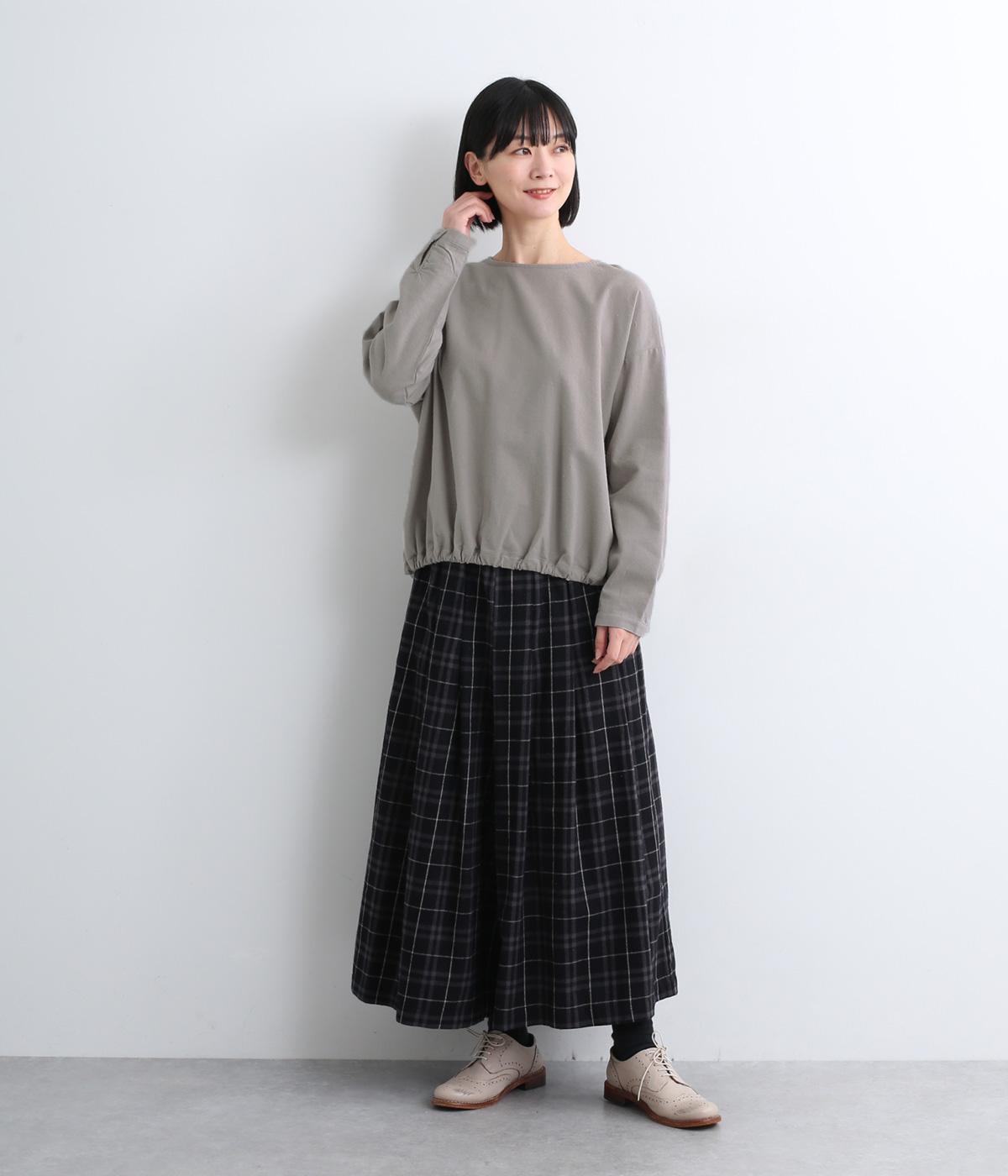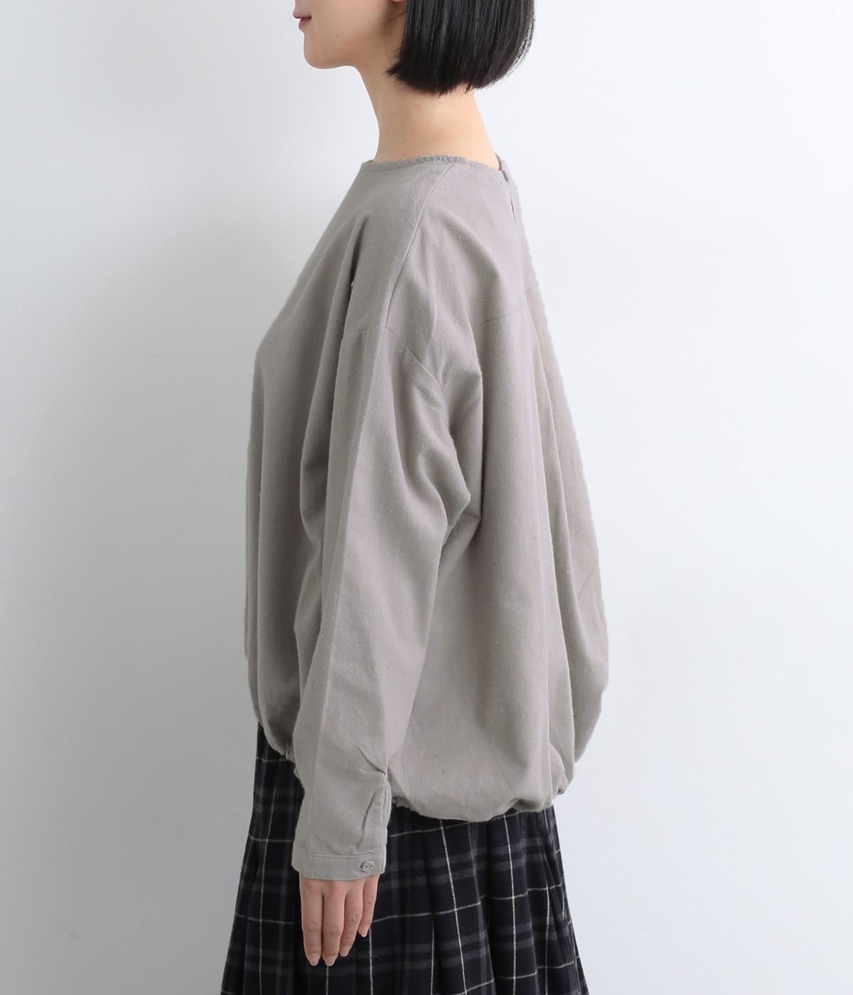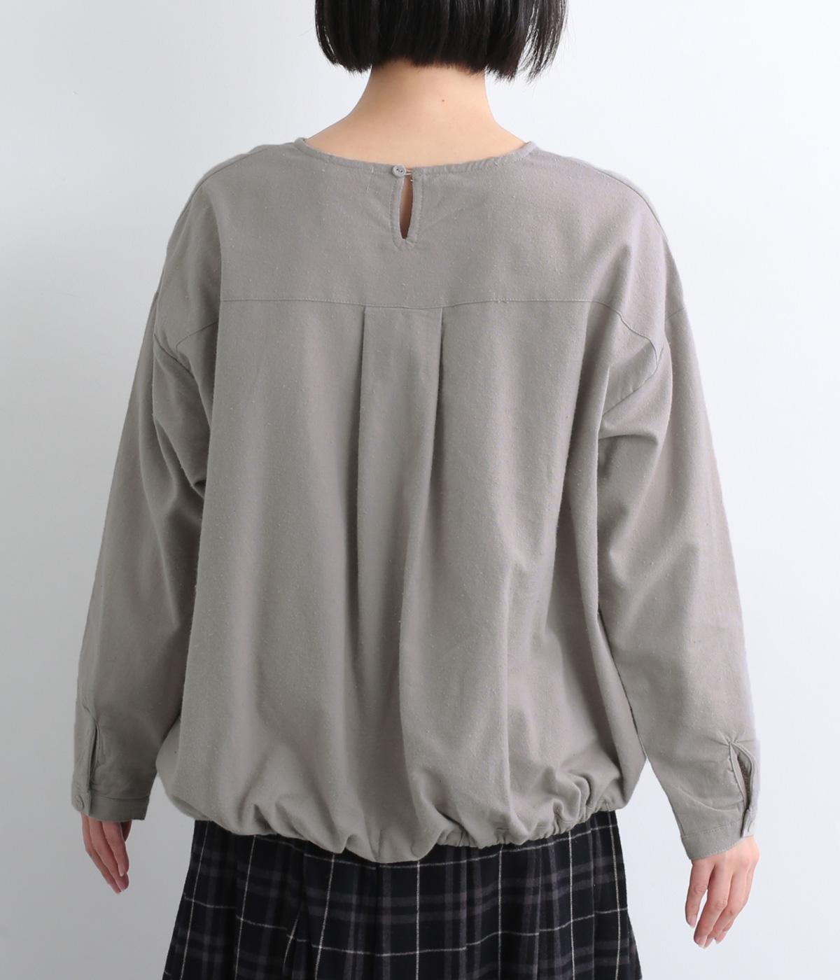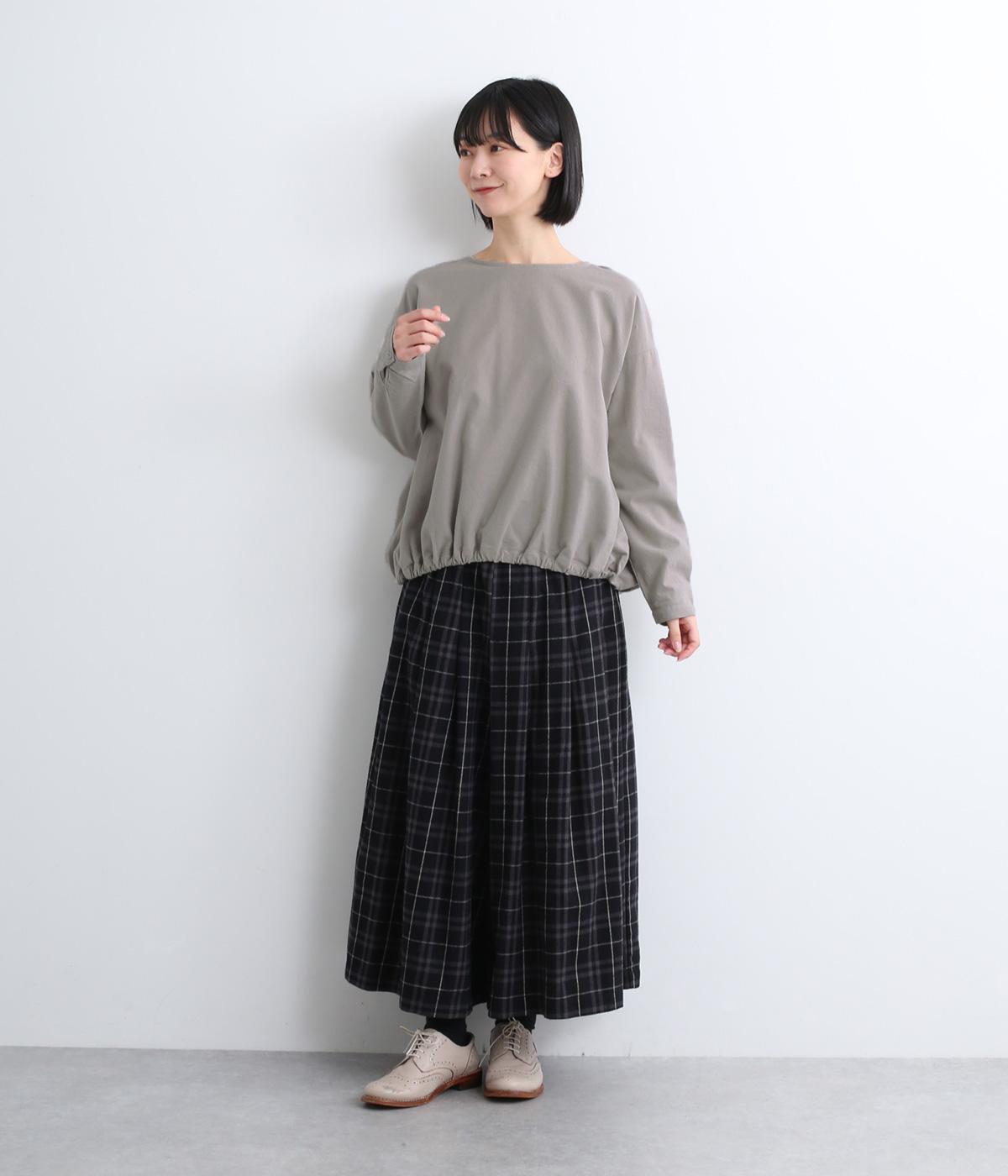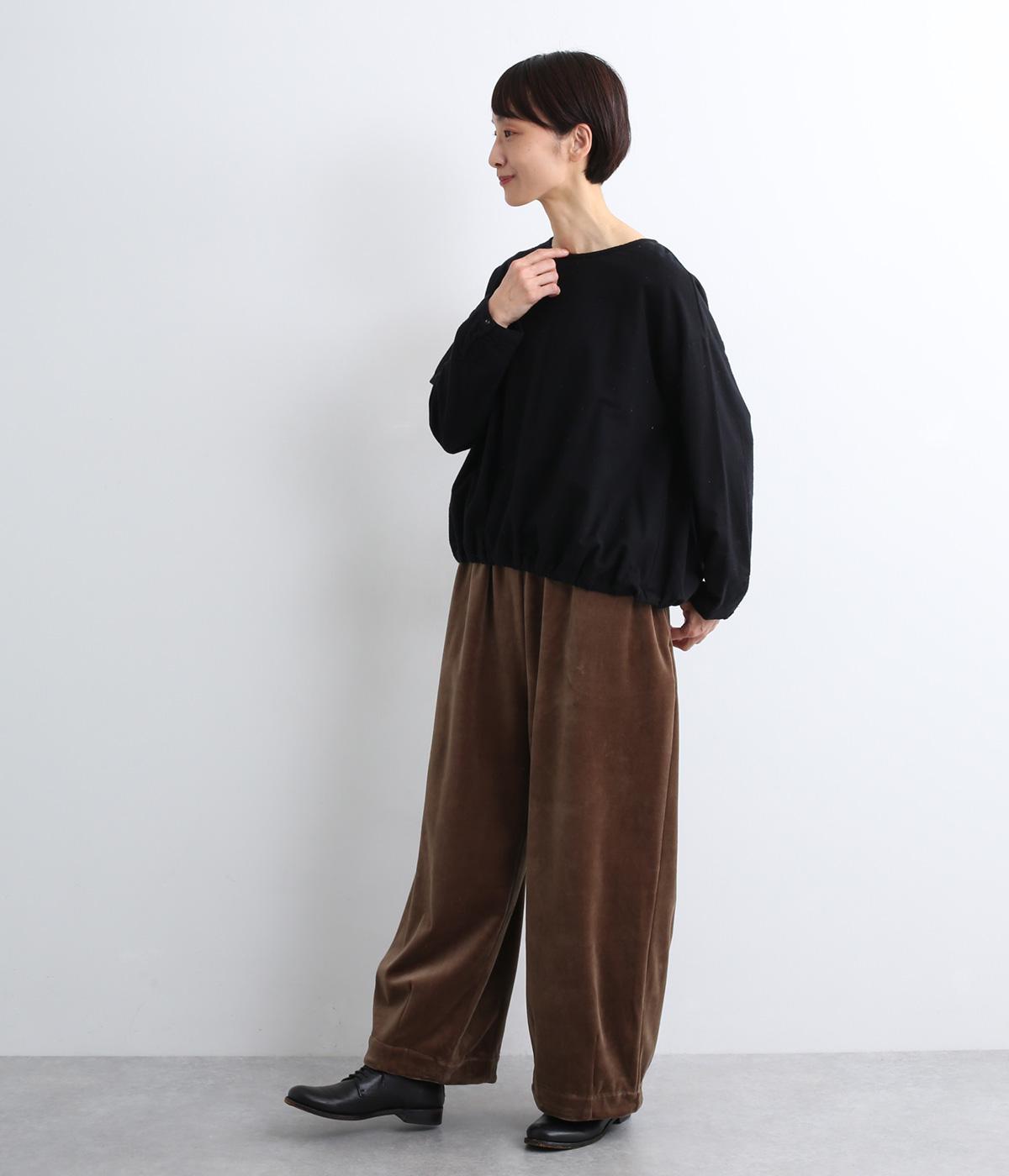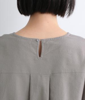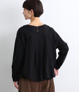 生地の持つやさしい風合いにマッチした、バルーンシルエットのプルオーバー。裾はゴムが入っているので、テクニック要らずでブラウジング風の着こなしが完成。後ろもタックを入れて心地よいゆとりを持たせました。