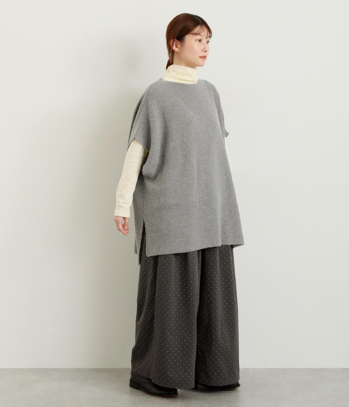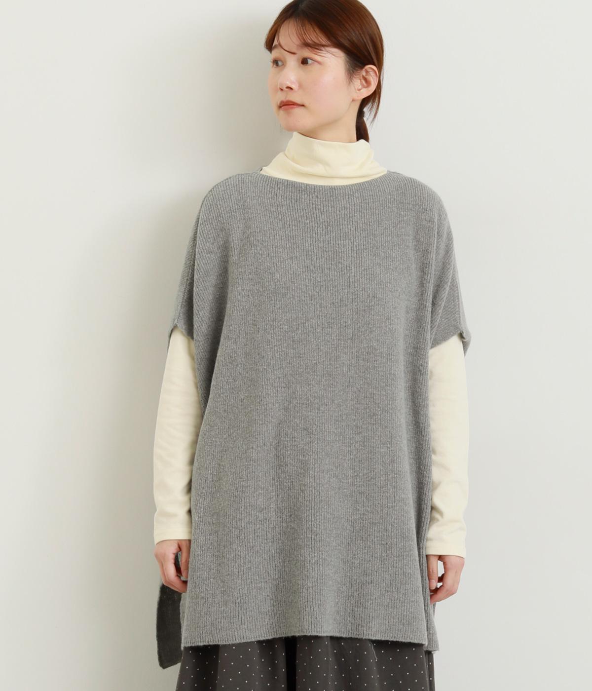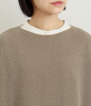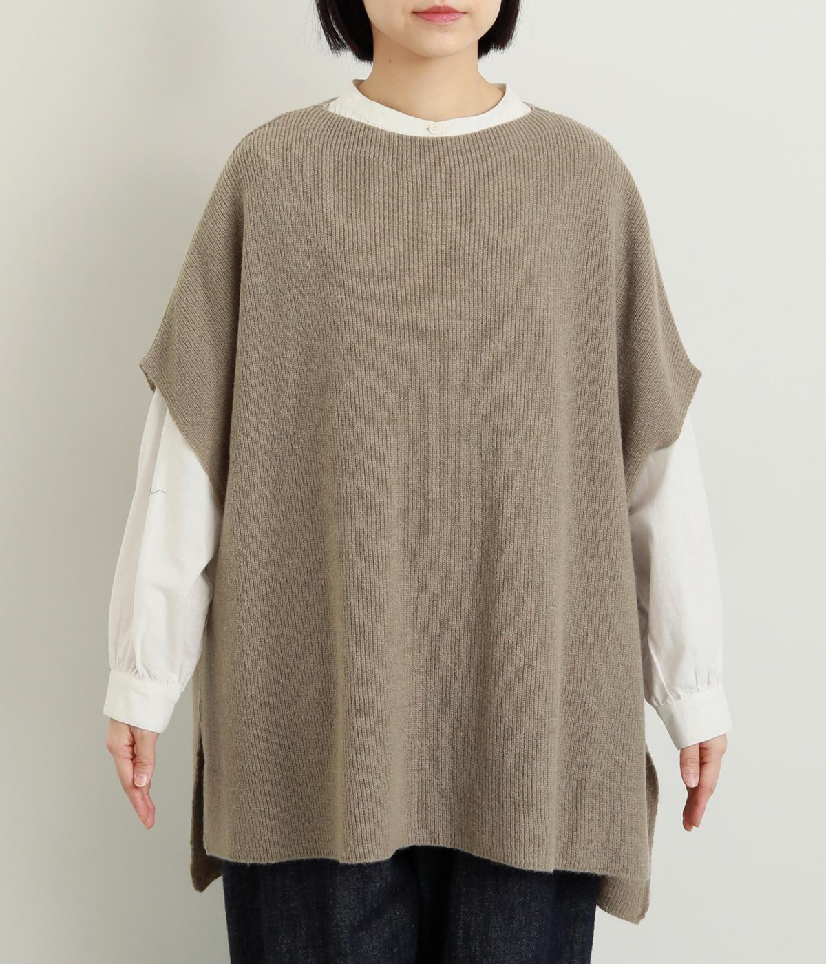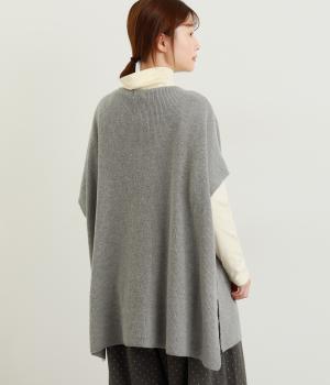ほどよいゆとりを持たせたワイドなかたちで、体のラインを拾いにくいデザインです。肩を落としたポンチョ風のシルエットが自然な丸みをつくり、女性らしい印象をつくります。サイドスリットが抜け感を演出し、カジュアルにもきれいめにも合わせやすい万能な一枚です。