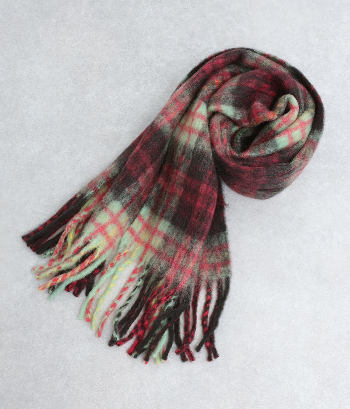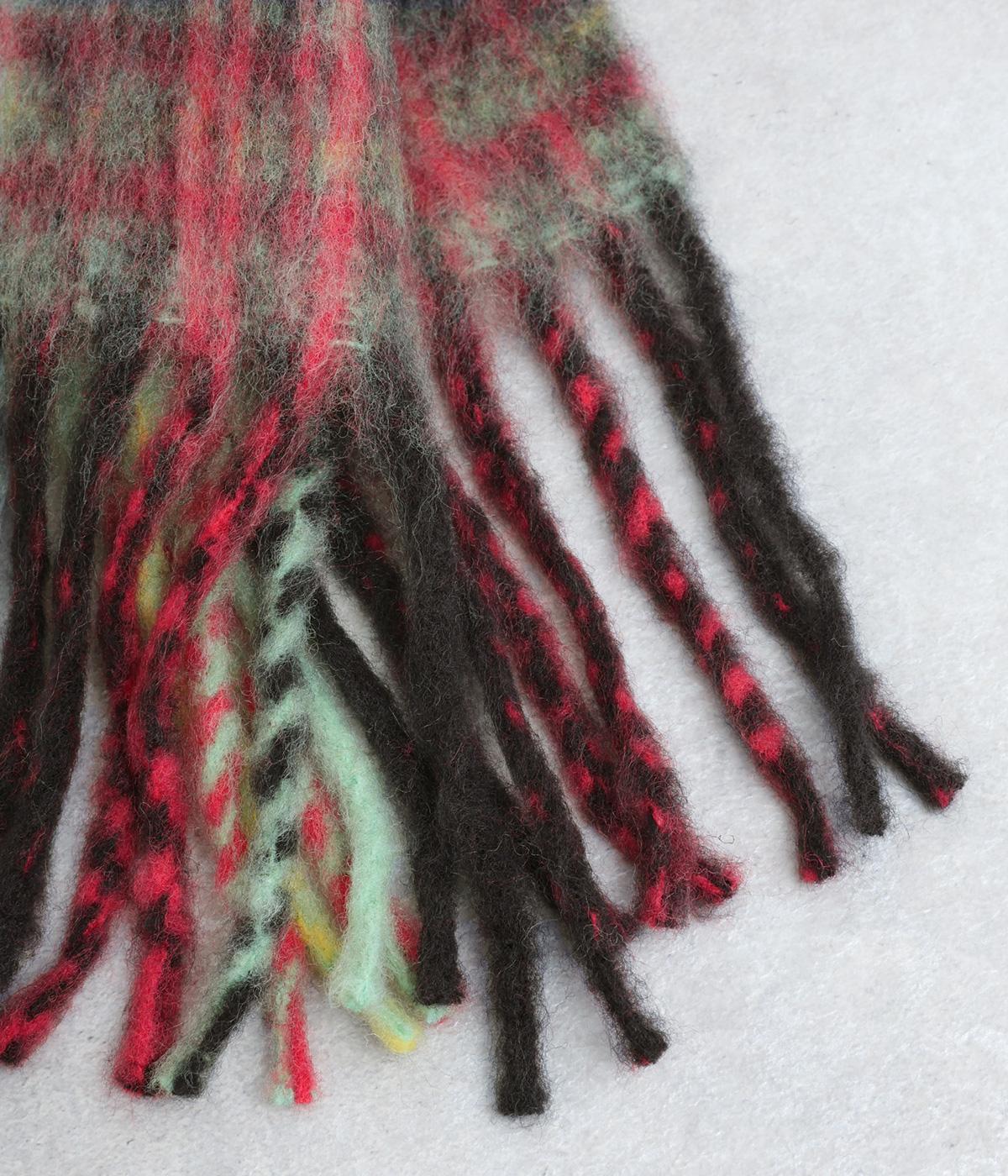 派手すぎず子どもっぽく見えない絶妙な配色が魅力のチェック柄マフラー。シックになりがちな秋冬スタイルをパッと華やかに彩ってくれます。首元に巻くのはもちろん、肩にさっと掛けるだけでもサマ見えする大判サイズが◎。長めのフリンジもおしゃれなアクセントです。