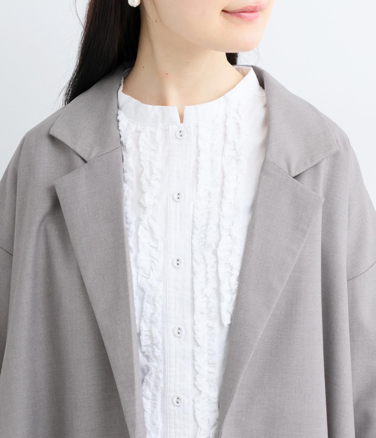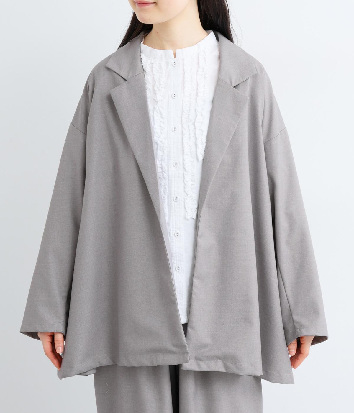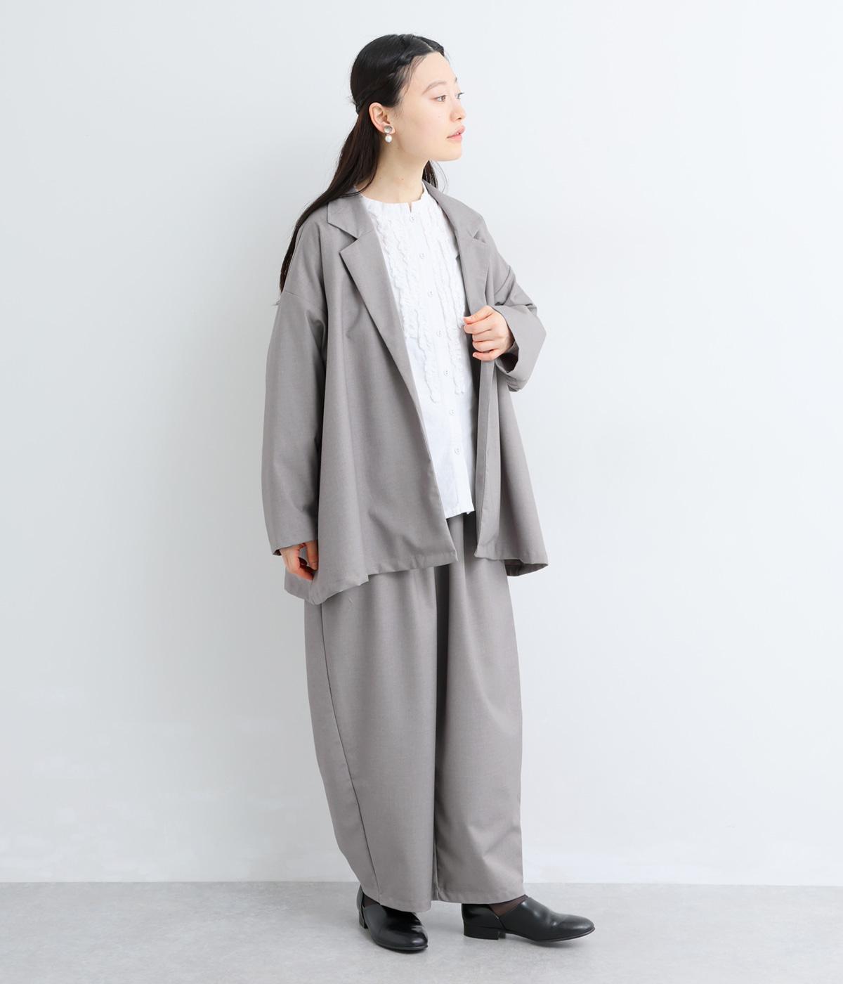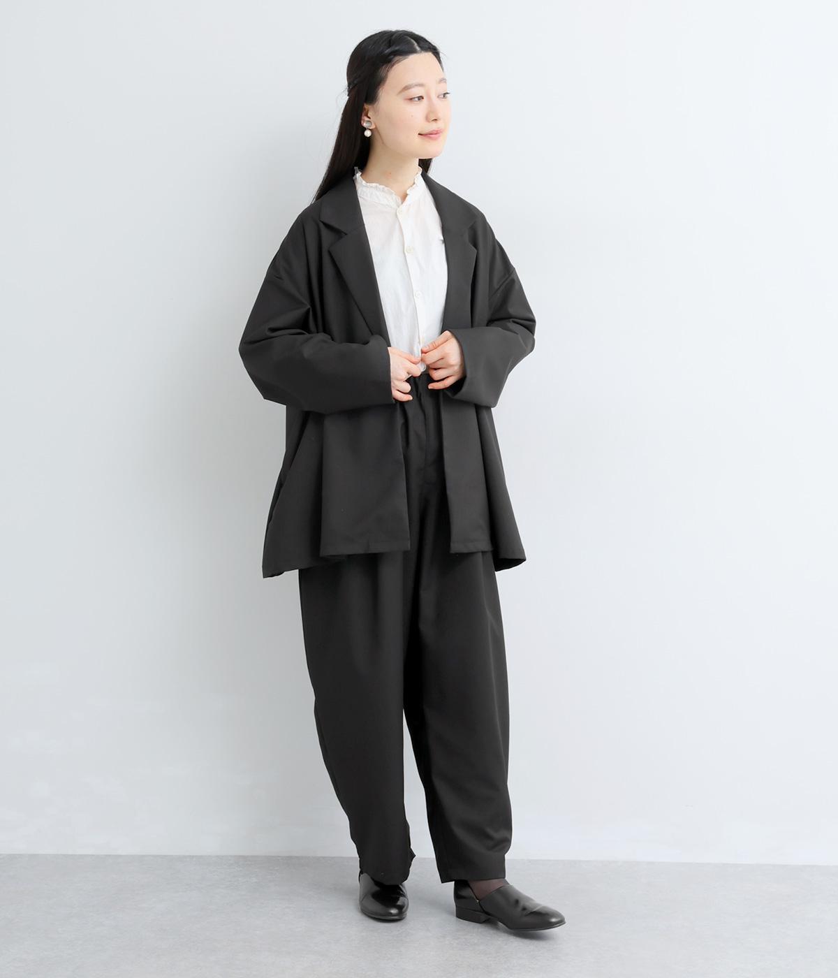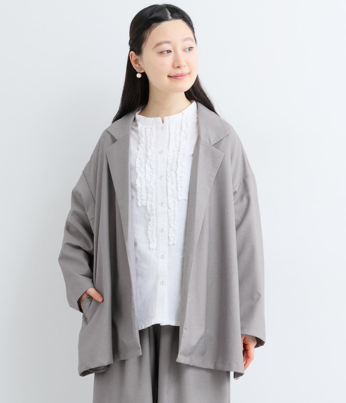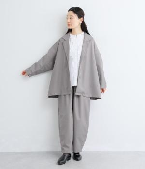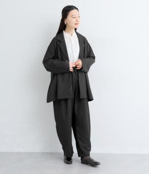 無駄をそぎ落としたボタンレス仕様が、洗練された印象を与えるオープンテーラード。ショールのように流れるラインが、女性らしいやわらかさを演出します。軽やかさと上品さを兼ね備え、さっと羽織るだけでサマになるのもうれしいポイント。およばれのシーンにもおすすめな一枚です。
