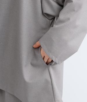 つるりとしたなめらかな表情と、ほのかなツヤが上品な印象を与えるTR素材で仕立てました。軽やかな着心地ながら、ほどよいハリ感があり、シルエットをきれいに保ちます。シワになりにくい素材なので、デイリーからフォーマルまで幅広いシーンで活躍します。