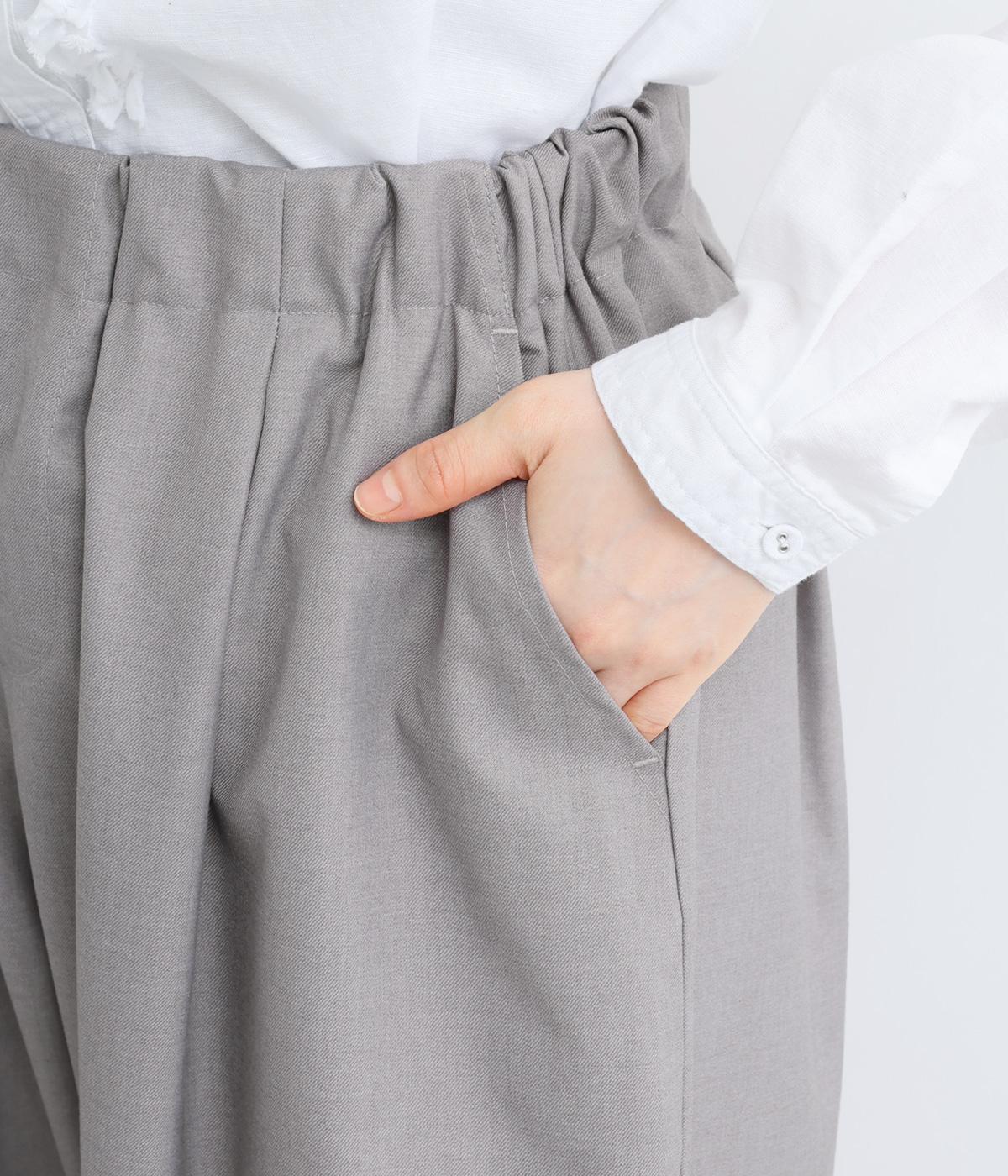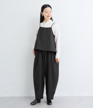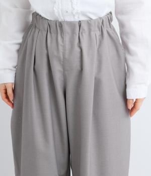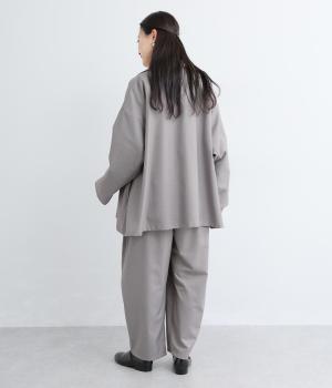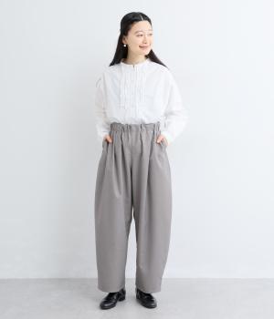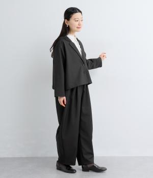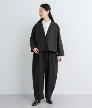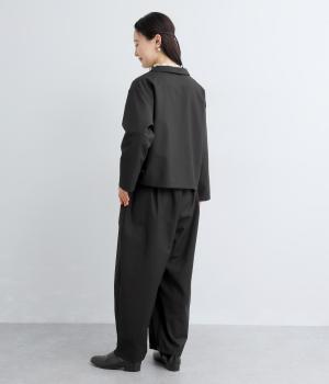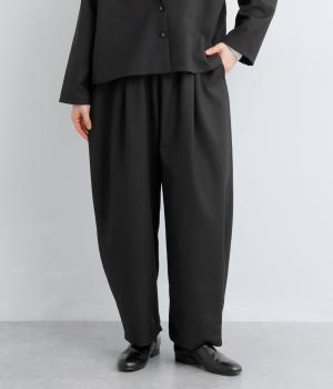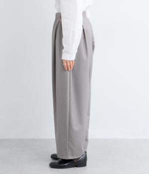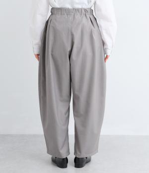 フロントからサイドへとつながるボックスタックが、自然な立体感を生み出すパンツです。腰まわりをゆったりつつみながら、裾に向かってゆるやかに細くなるテーパードシルエットが、全体を上品にまとめ、きちんと感とリラックス感を両立。およばれのシーンにもおすすめな一枚です。