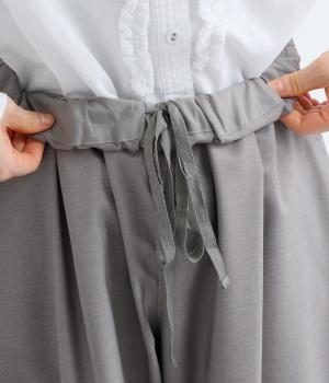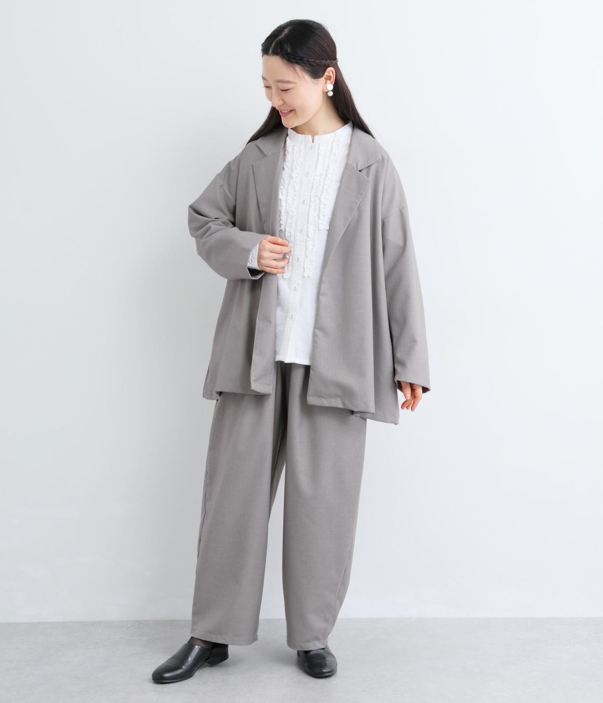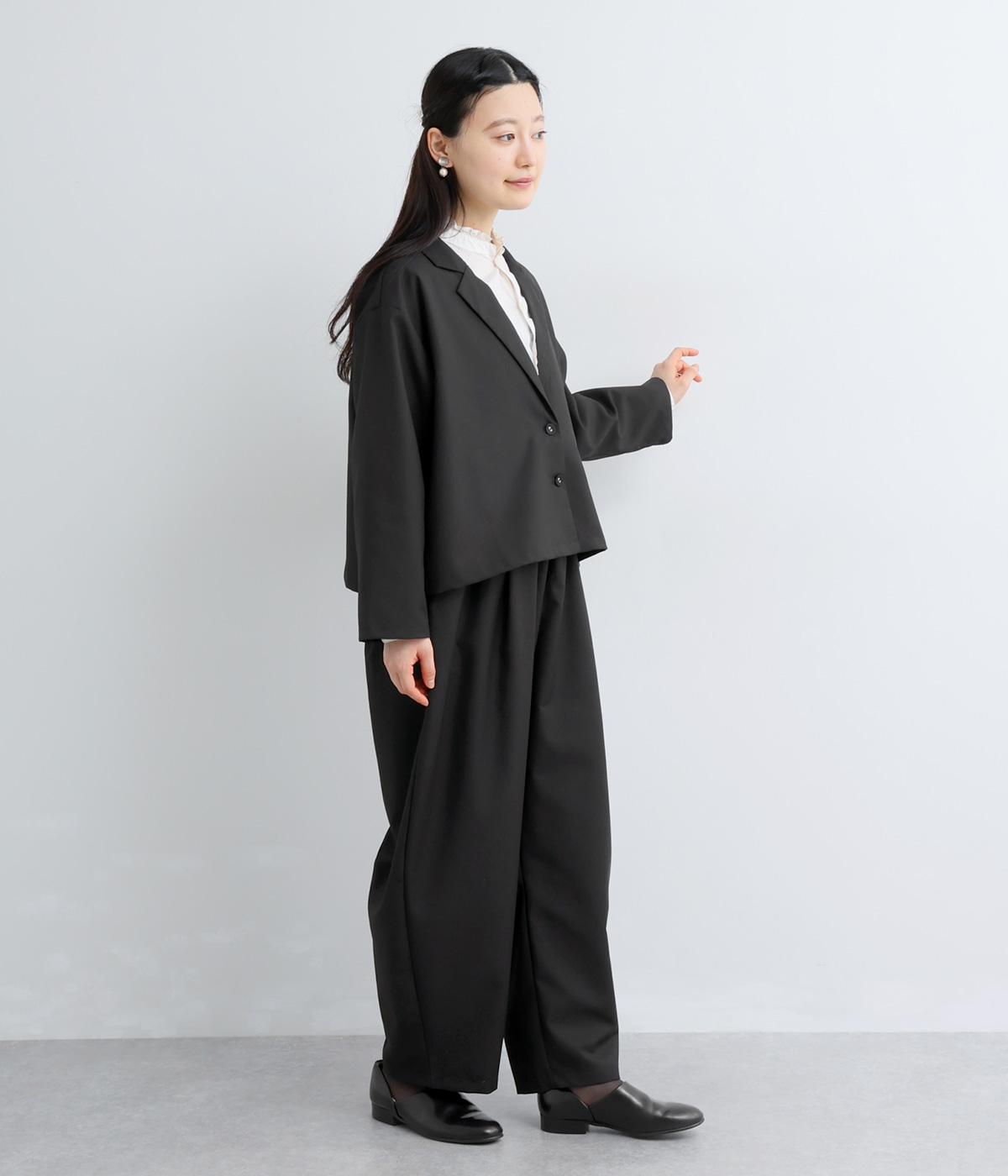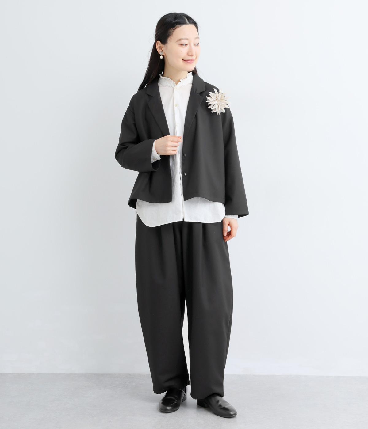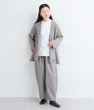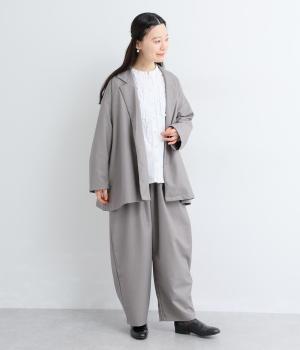 つるりとしたなめらかな表情と、ほのかなツヤが上品な印象を与えるTR素材で仕立てました。軽やかな着心地ながら、ほどよいハリ感があり、シルエットをきれいに保ちます。シワになりにくい素材なので、デイリーからフォーマルまで幅広いシーンで活躍します。